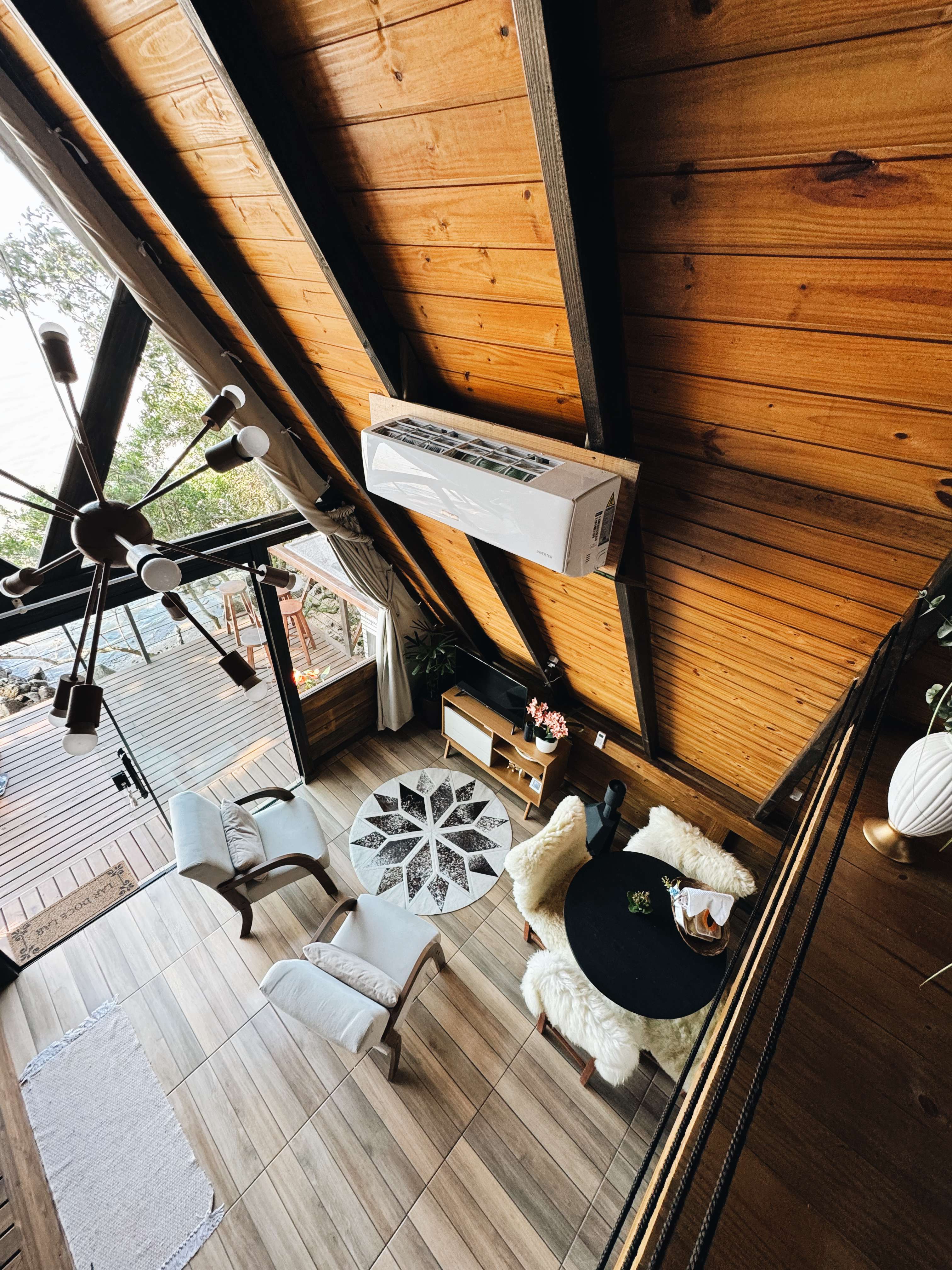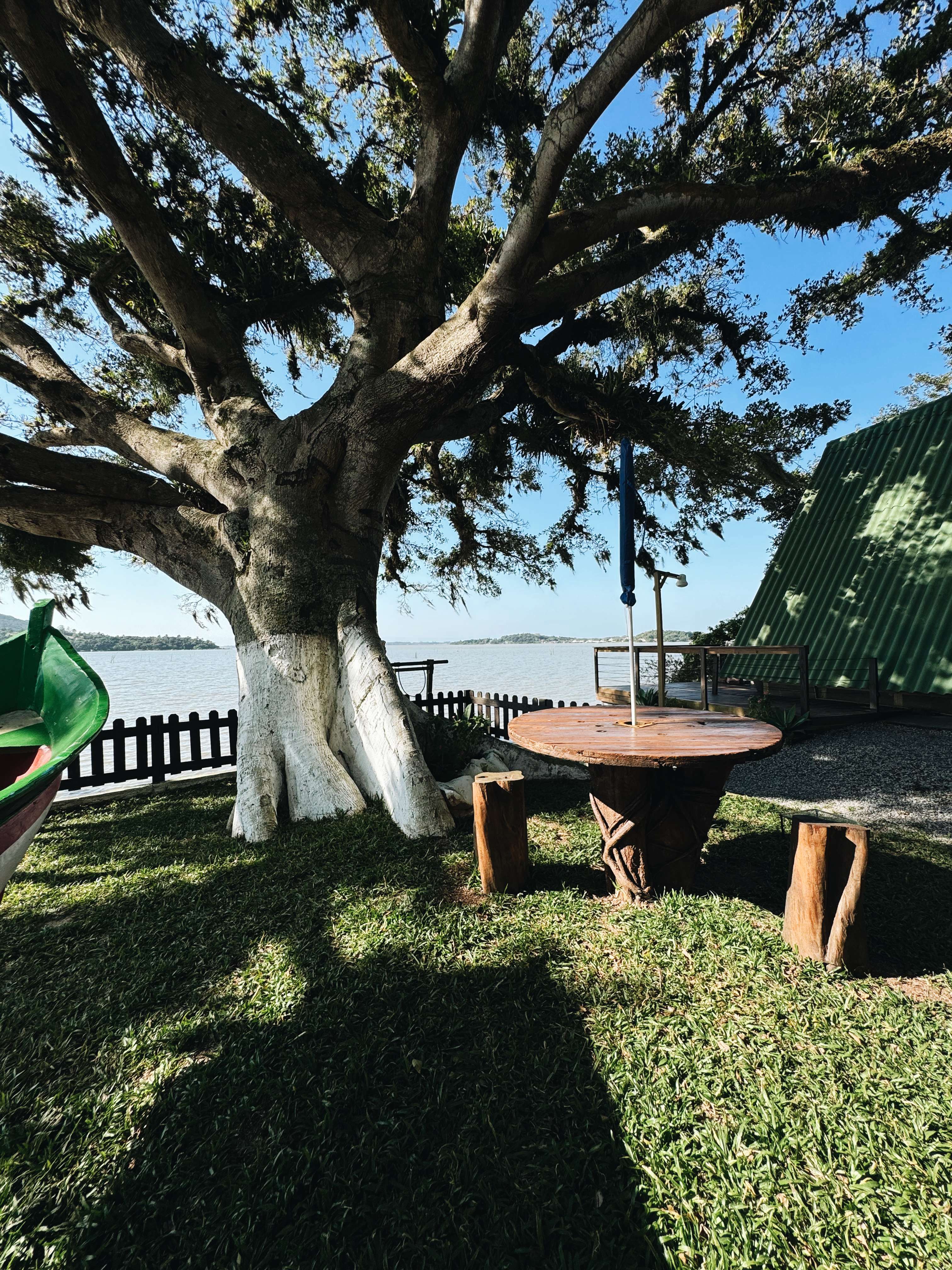 O Chalé A-frame da Lagoa é um refúgio acolhedor, projetado para oferecer momentos únicos e inesquecíveis. Localizado às margens da Lagoa de Imaruí, o chalé proporciona uma vista deslumbrante, sendo um local ideal para desfrutar de atividades como jet ski, caiaque e stand-up paddle. Com capacidade para até 4 pessoas, o chalé conta com uma cozinha completa, mini adega, frigobar, lareira ecológica e hidromassagem, proporcionando conforto e relaxamento. Um café da manhã artesanal, preparado com carinho, é servido para tornar a estadia ainda mais especial.