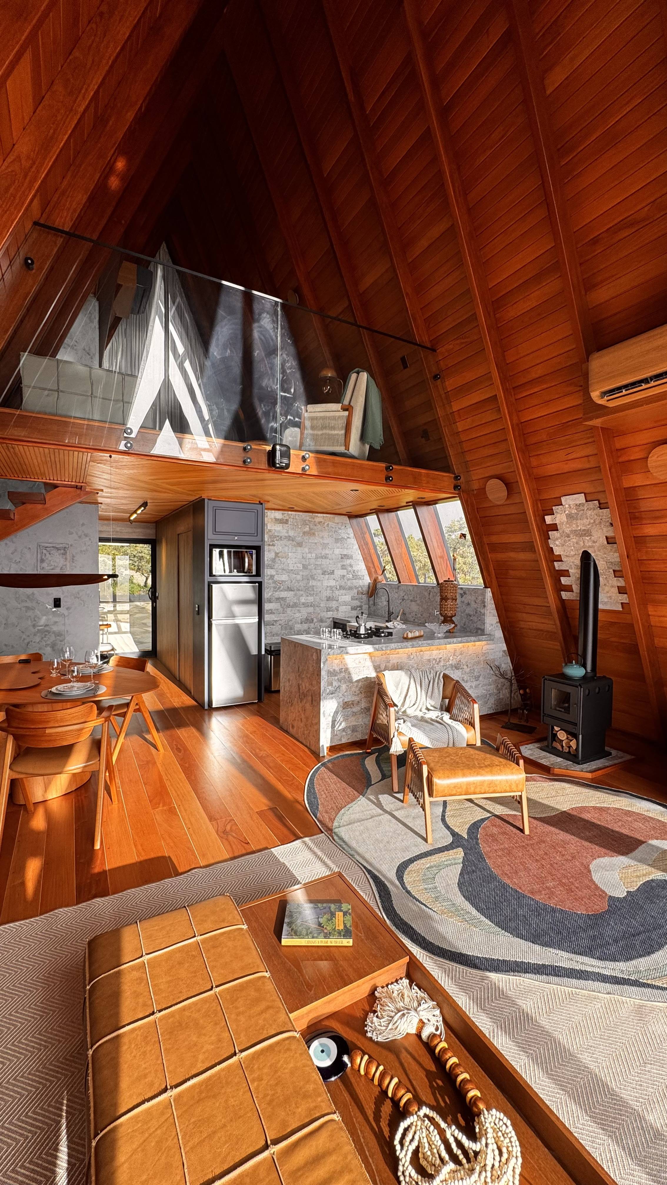 A acomodação conta com piscina e sauna, criando momentos ideais de descanso e bem-estar em qualquer horário do dia. A proposta é proporcionar uma estadia marcante, com atmosfera intimista, silêncio e contato direto com a paisagem natural da região.