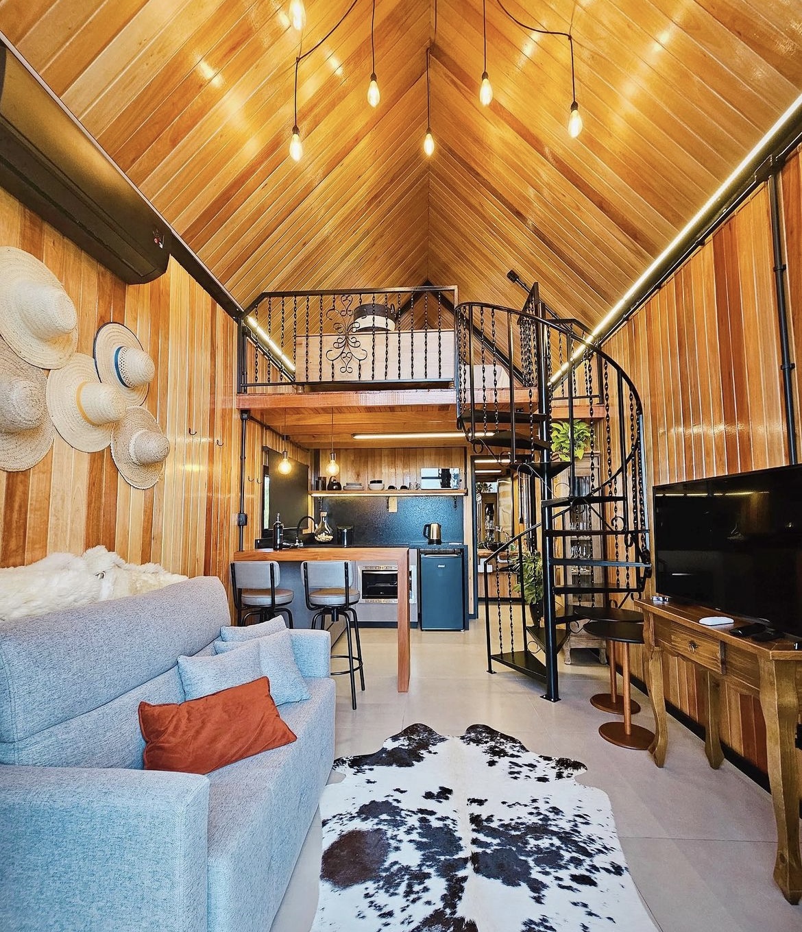 Ao lado do Vale dos Vinhedos e com vistas deslumbrantes das parreiras de uva, este refúgio proporciona uma experiência única. Combinando estilo moderno e único, oferece conforto e tranquilidade. Ideal para casais em busca de romance ou amantes do vinho em busca de uma escapada relaxante. Descubra o sabor dos vinhos locais e explore as vinícolas próximas. Possui cozinha completa, TV 42'' smart + Btv, internet 500 MB, ar condicionado, lareira e lenha, cama Queen + toalhas e roupas de cama. Na parte externa, conta com fogo chão com uma vista magnífica para a cidade de Bento Gonçalves. Nas Alta Vista cabanas, os hóspedes podem ficar totalmente à vontade para desfrutar da comodidade das cabanas e parte externa como pátio e fogo de chão, curtindo uma vista incrível.