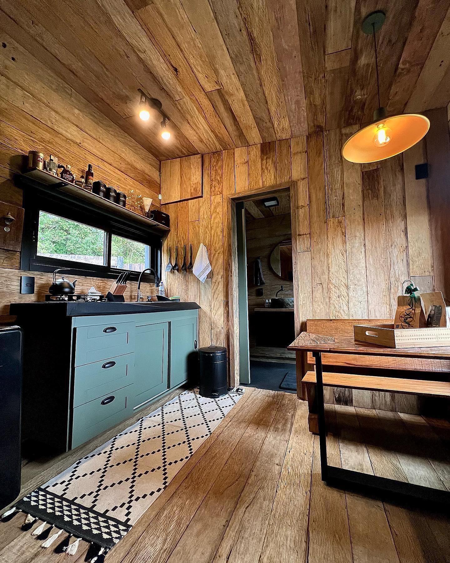 Uma Tinyhouse sustentável, totalmente equipada, trazendo luxo e aconchego na hospedagem em meio à montanha.