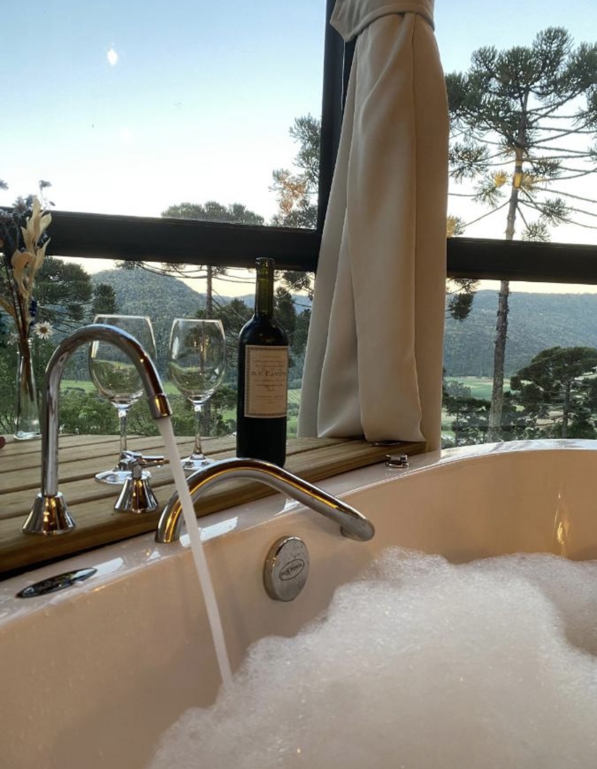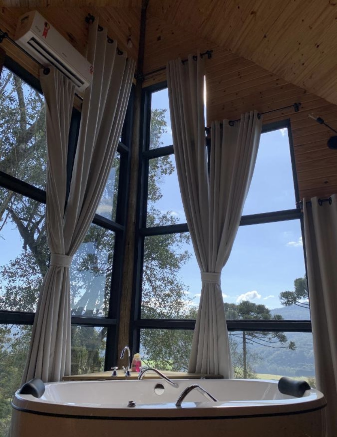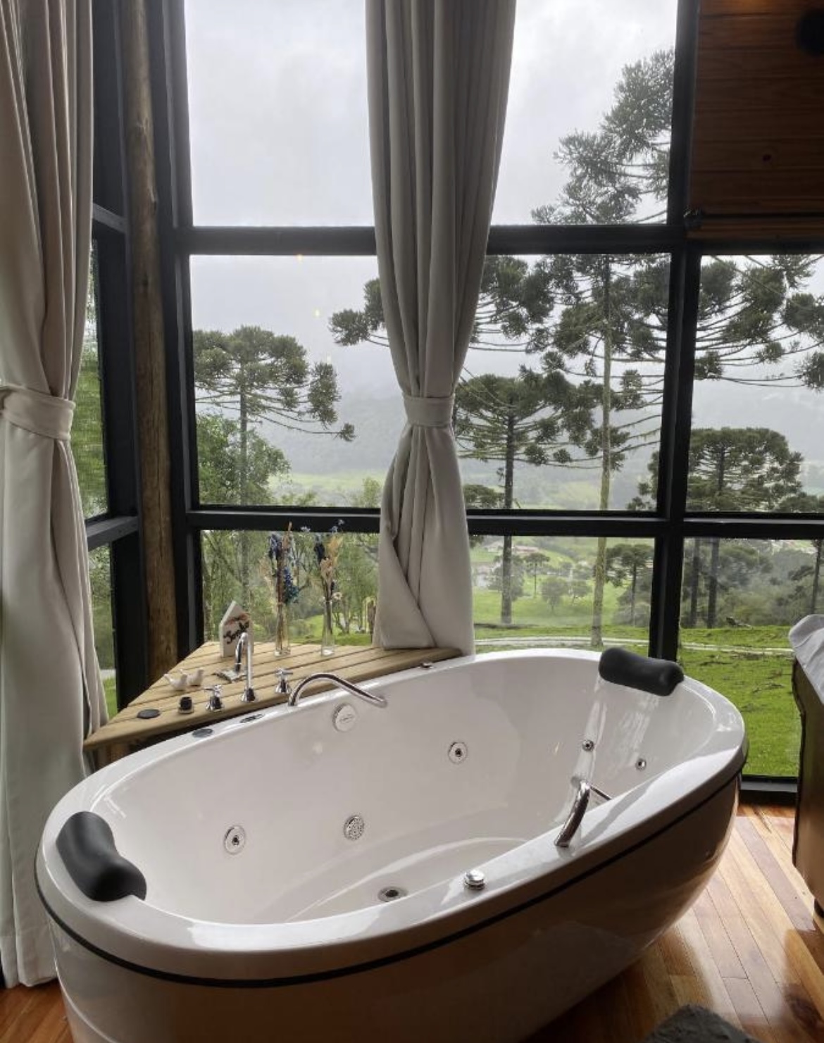 Uma cabana romântica para casal, com vista incrível do alto da montanha, com aquele “mar” de nuvens (dependendo do clima), bosque de araucárias em frente, banheira de hidromassagem para dois com vista pro nascer e por do sol, cama casal muito confortável no mezanino, cobertas quentinhas, cortinas em todas as janelas, roupões, chinelos, sofá gostoso pra relaxar, TV com Netflix,
