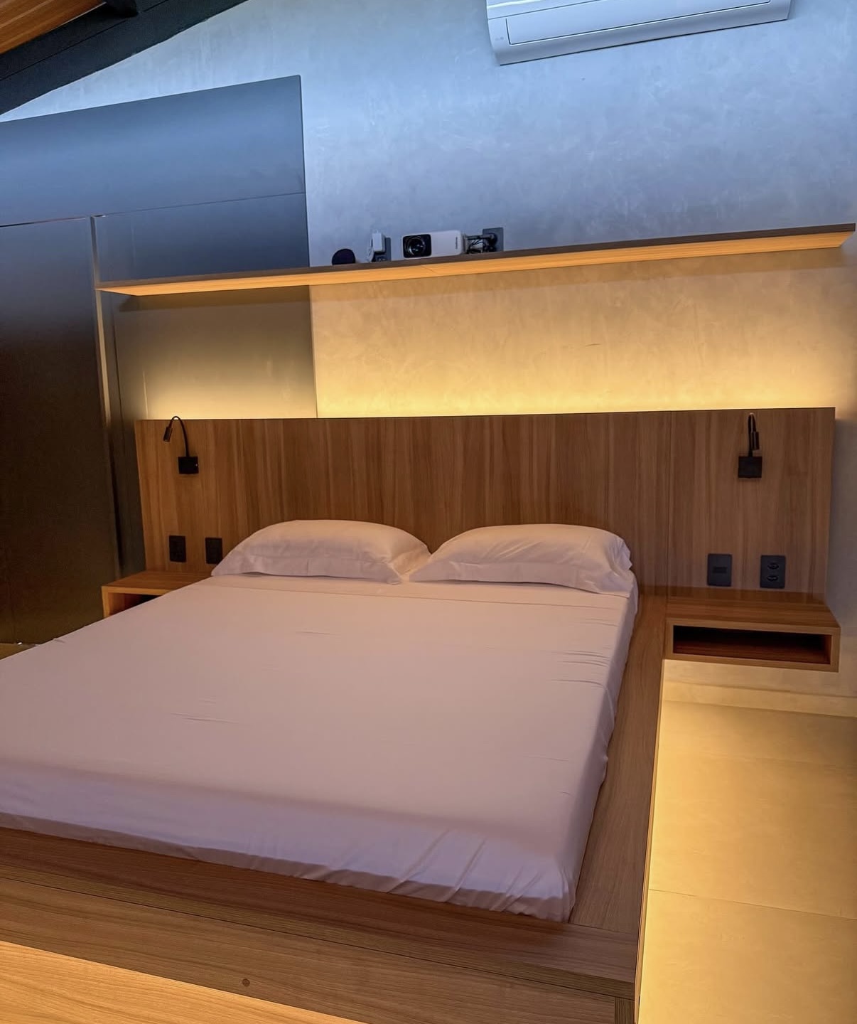 Projetado com atenção aos detalhes, o ambiente reúne conforto, praticidade e charme em um só conceito. A estrutura favorece a vivência do nascer e do pôr do sol, do canto dos pássaros e de noites estreladas. Um convite para desacelerar, respirar e viver o agora com intensidade e leveza.