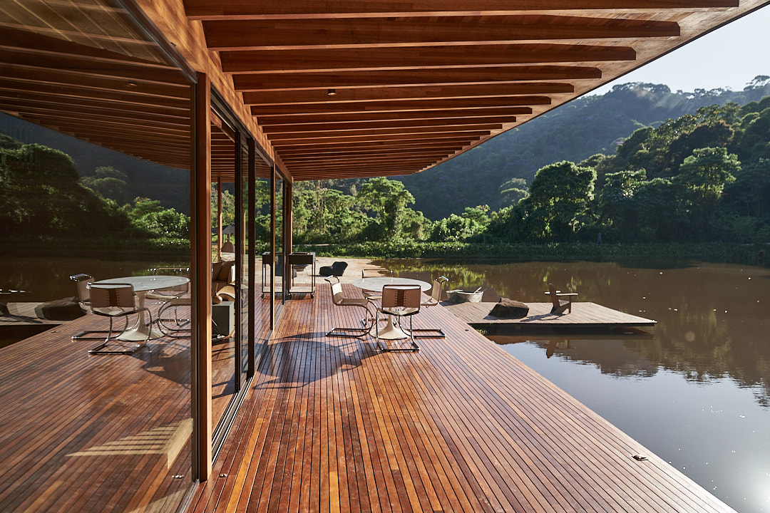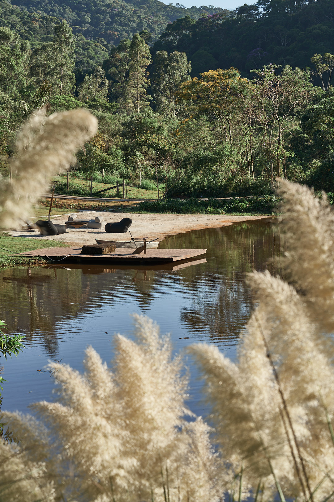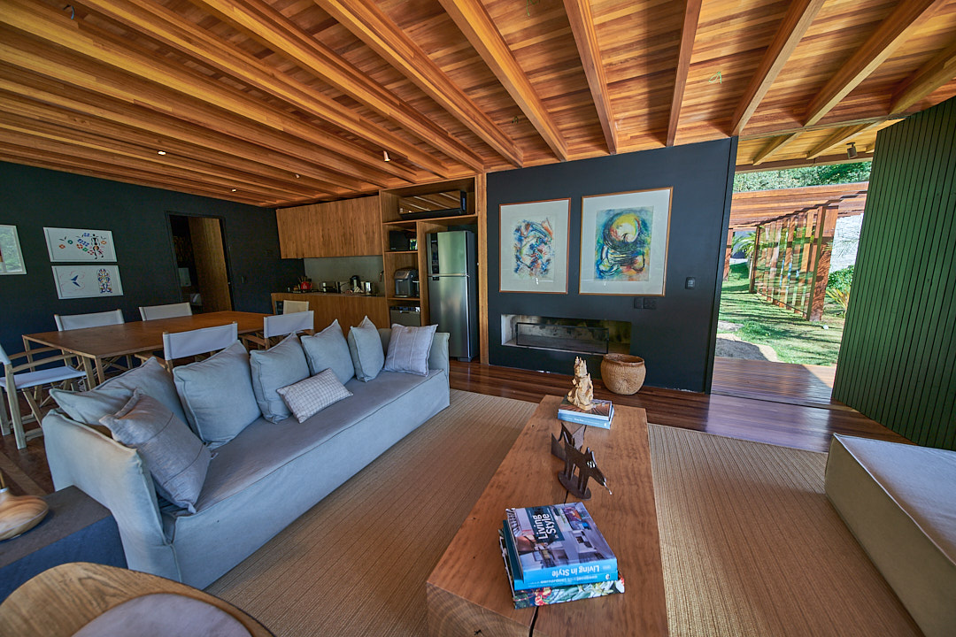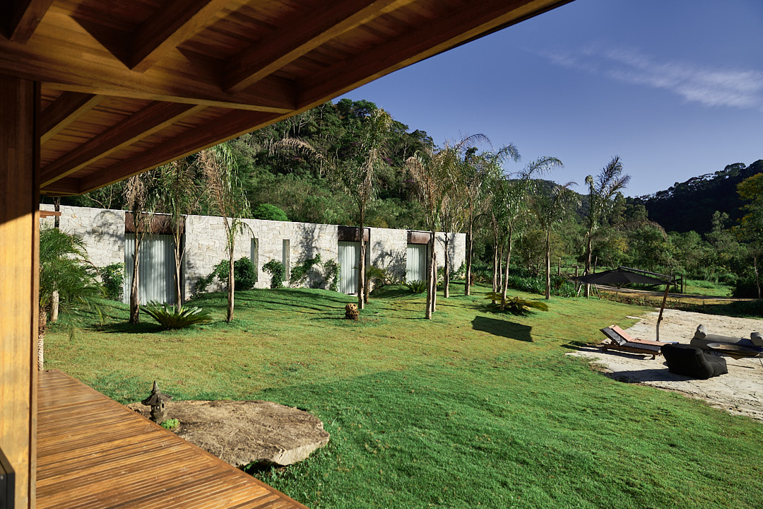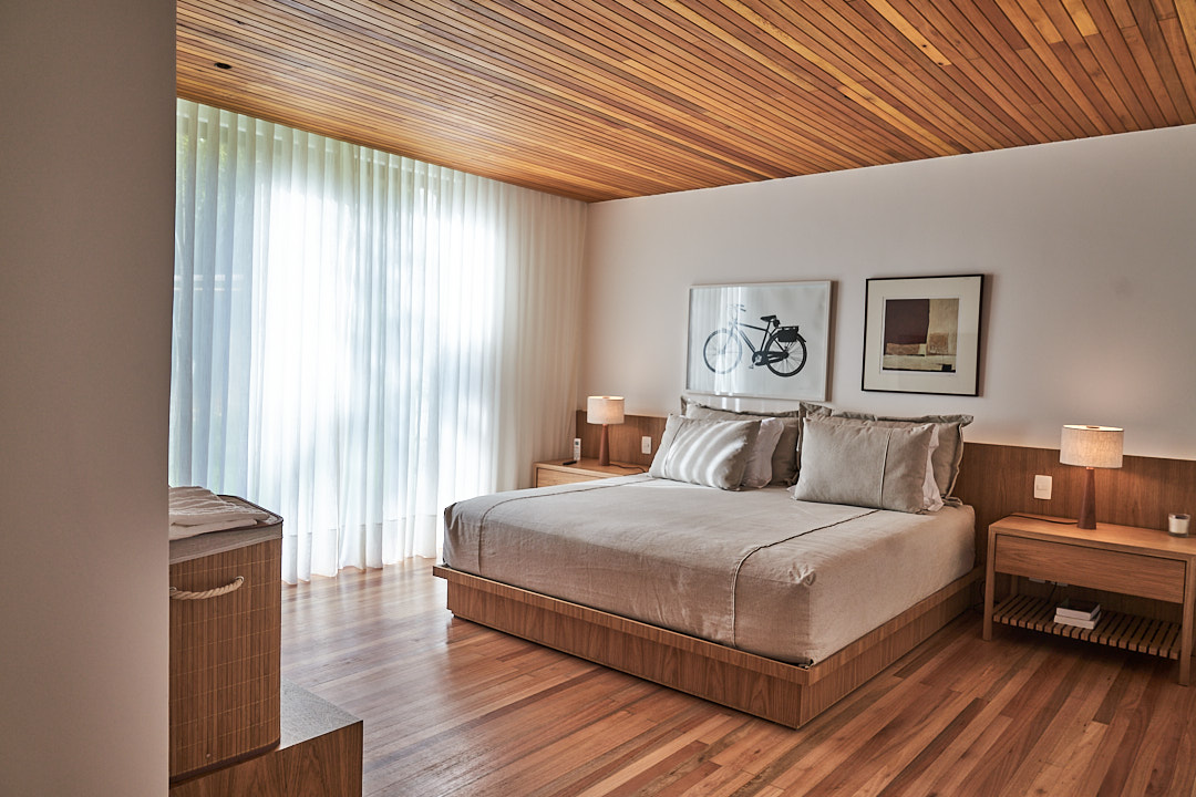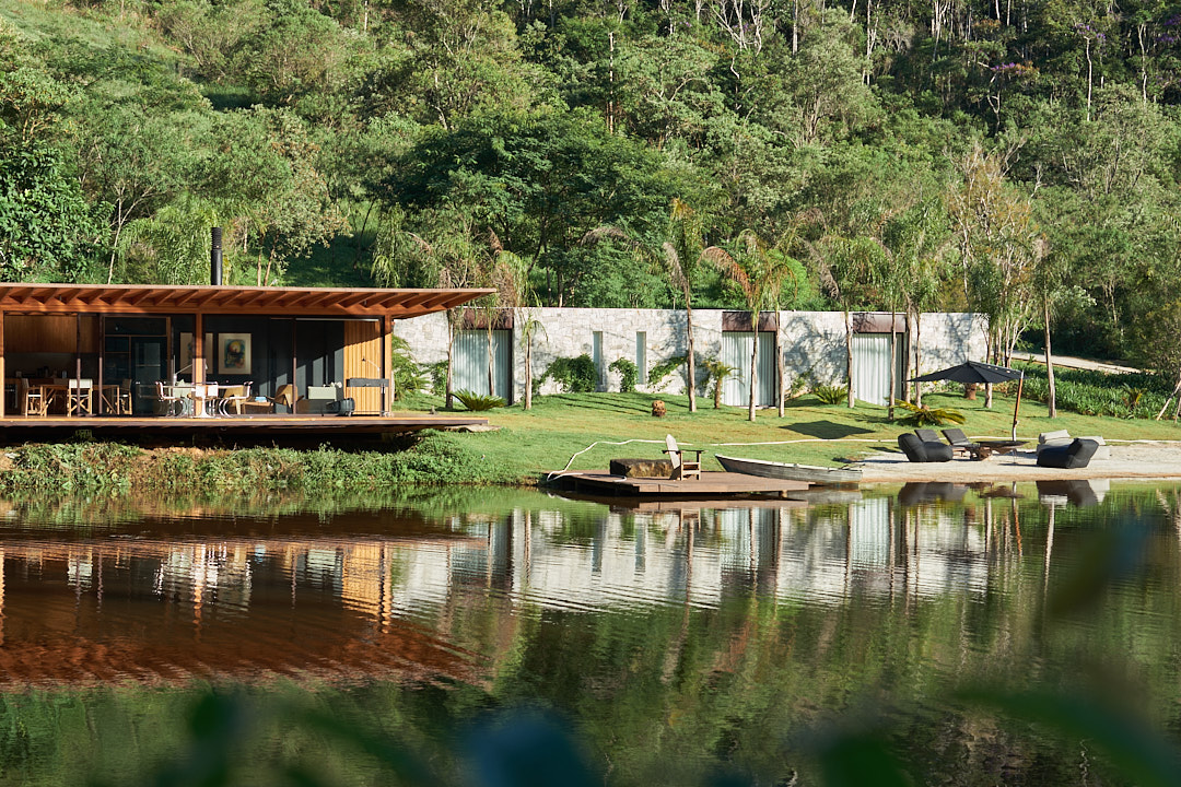 Reinaugurado com uma ampliação encantadora, o bangalô agora conta com 3 suítes confortáveis, todas com vista para o jardim e o lago. Capaz de acomodar até 6 adultos, combina conforto com elementos naturais, promovendo momentos de descanso e conexão com a natureza. As suítes oferecem camas king size, possibilidade de colchão extra para crianças ou adolescentes até 16 anos, smart TVs, roupas de cama Trousseau e armários de palha. Os banheiros incluem secador de cabelo, itens básicos de higiene e toalhas da mesma marca. A área social, localizada sobre o lago, possui salas integradas de estar com lareira, jantar e uma cozinha totalmente equipada com cooktop, forno elétrico, micro-ondas, lava-louças, máquina de gelo, torradeira, sanduicheira Tramontina e cafeteira Nespresso. Uma pérgula conecta o bangalô às suítes, utilizando elementos de madeira e pedra que integram o espaço ao ambiente natural. No exterior, espreguiçadeiras e sofás à beira do lago criam um ambiente aconchegante, complementado pelo tacho de cobre, ideal para noites mais frias. Para lazer, o espaço inclui uma quadra de beach tennis, trilhas para caminhadas, passeios de bicicleta e cavalos. A sauna seca envidraçada oferece uma vista privilegiada para o lago.