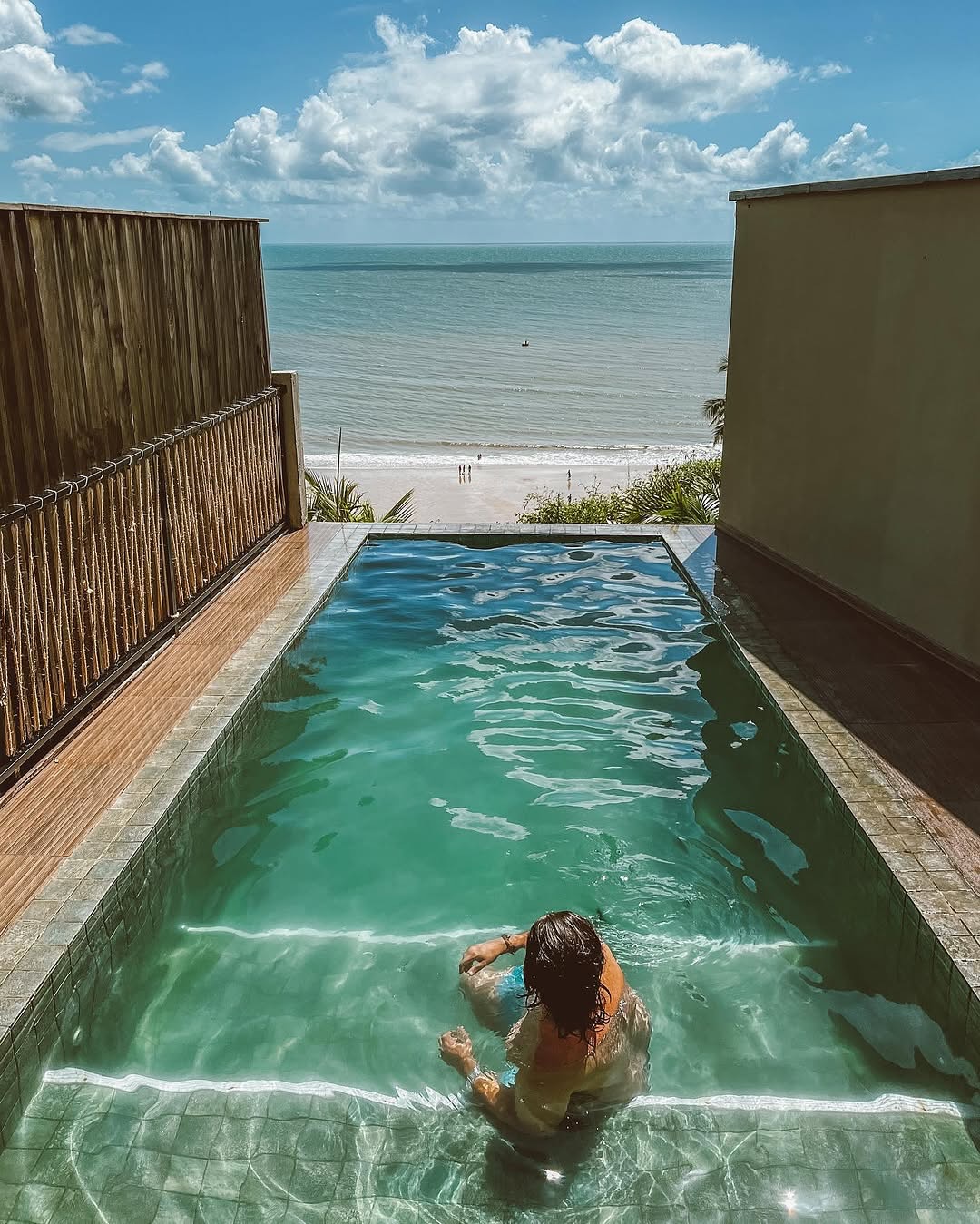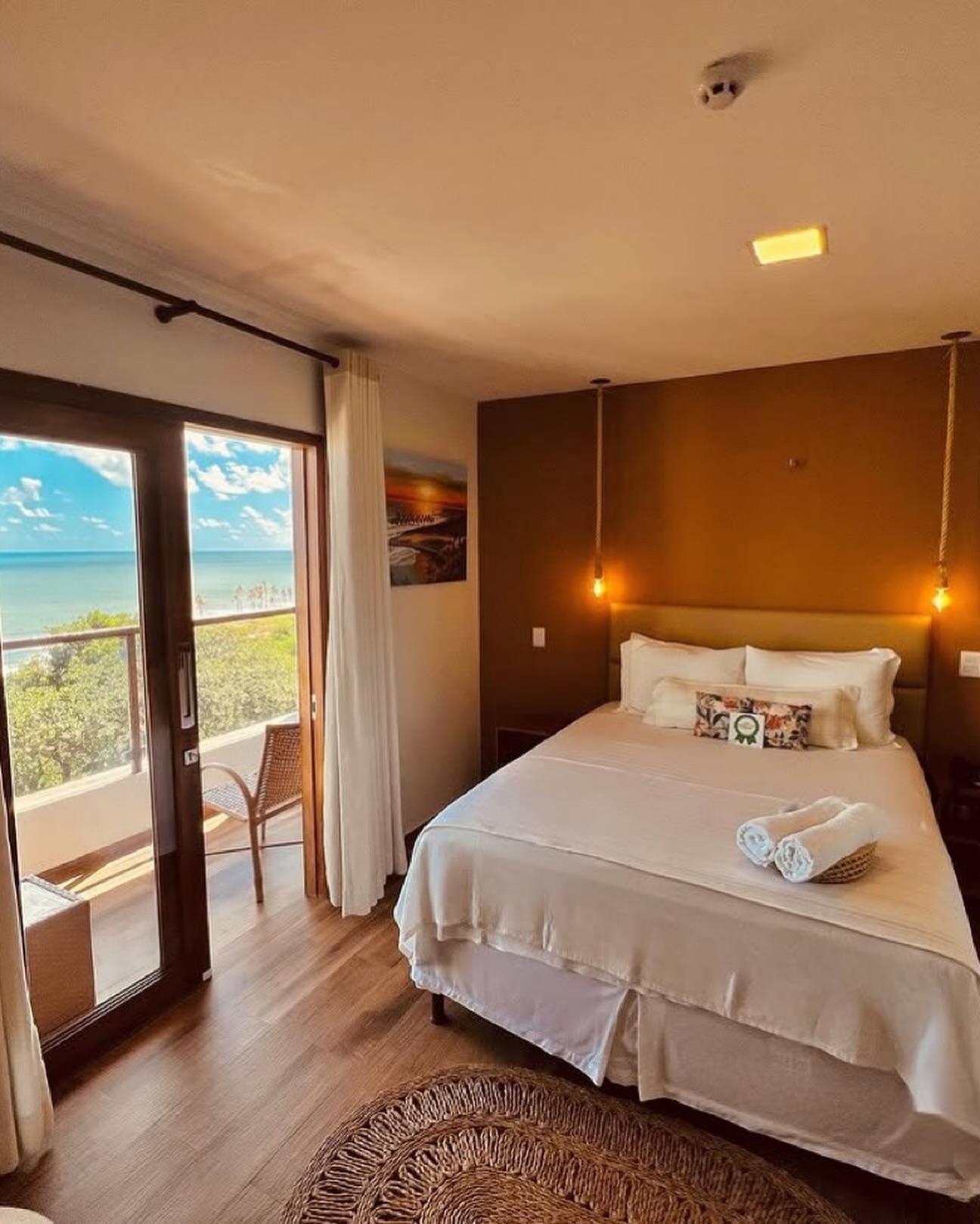 As suítes oferecem o melhor da decoração moderna com o toque rústico e acolhedor da região, criando um ambiente único para a estadia. Aproveite momentos de relaxamento na piscina de borda infinita, aprecie drinks exclusivos no lounge bar e desfrute de um spa com hidromassagem, tudo isso a apenas 5 minutos a pé da praia.