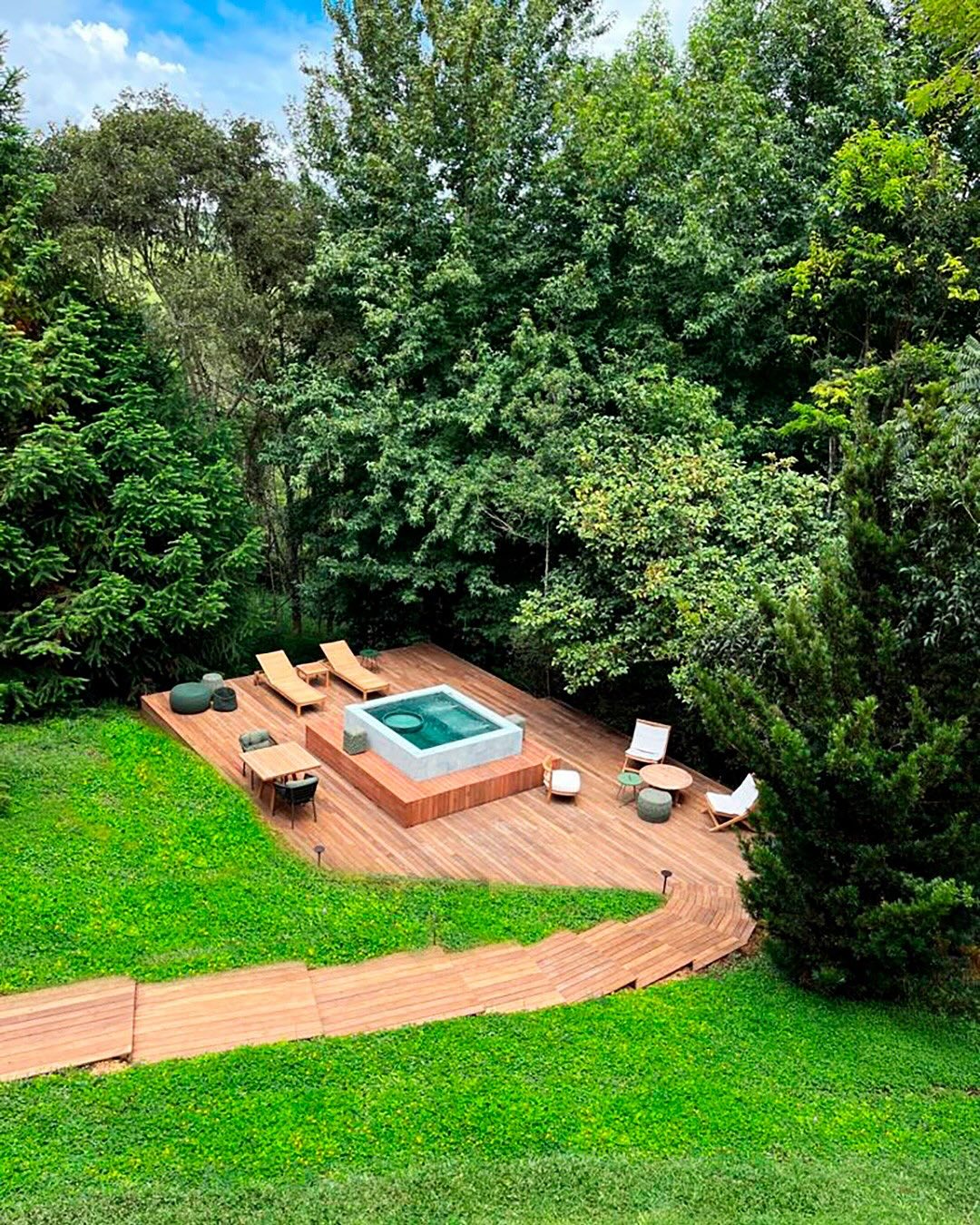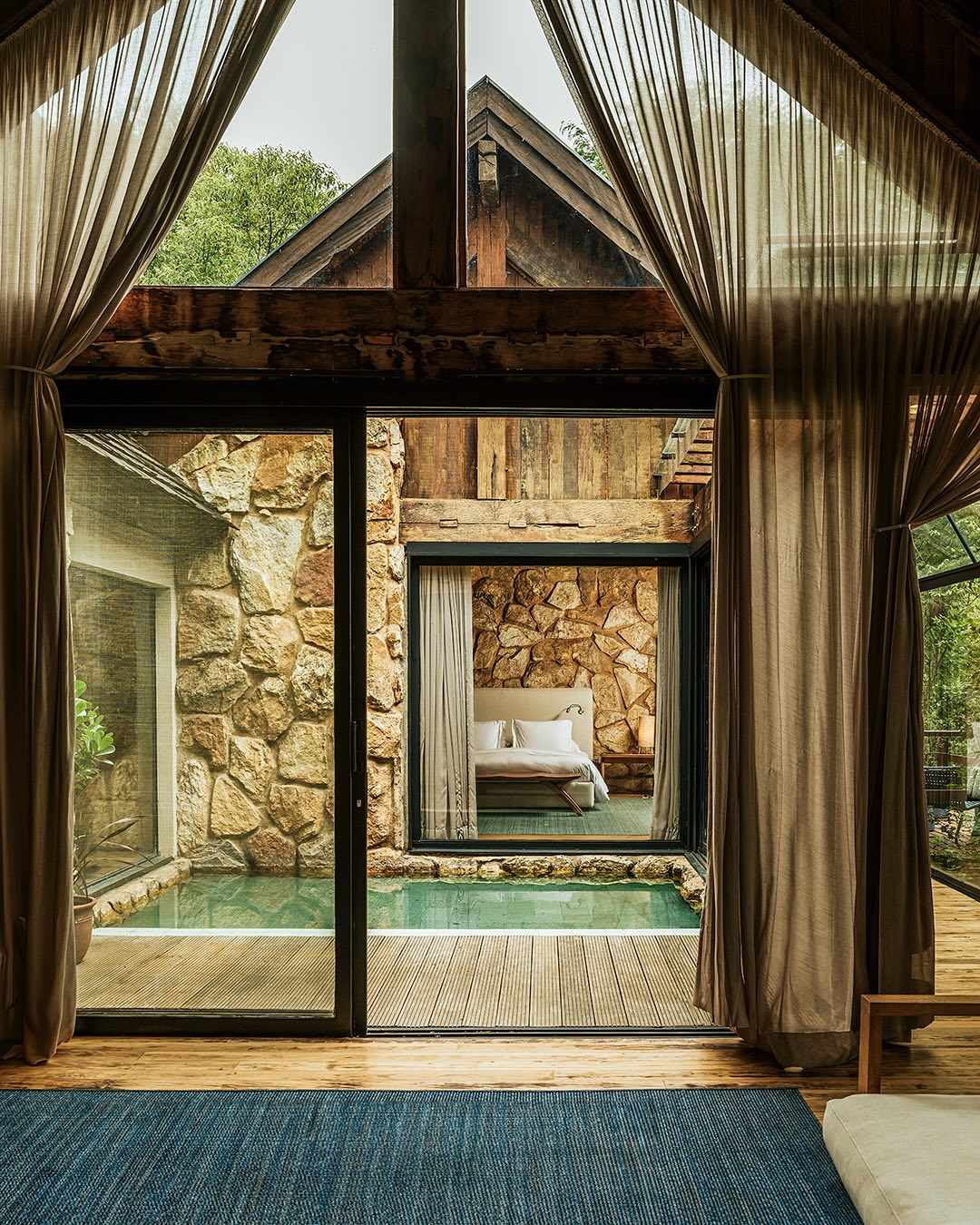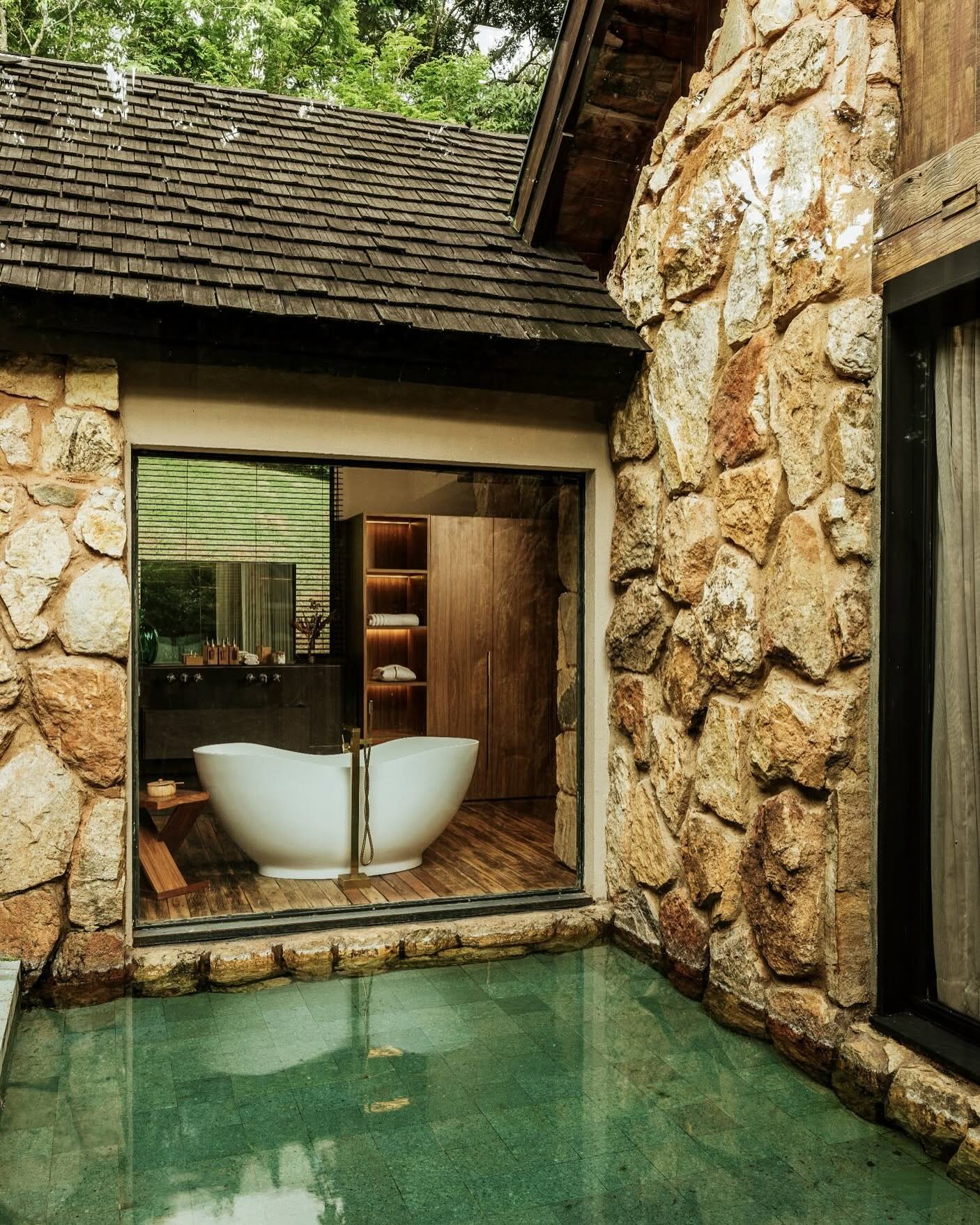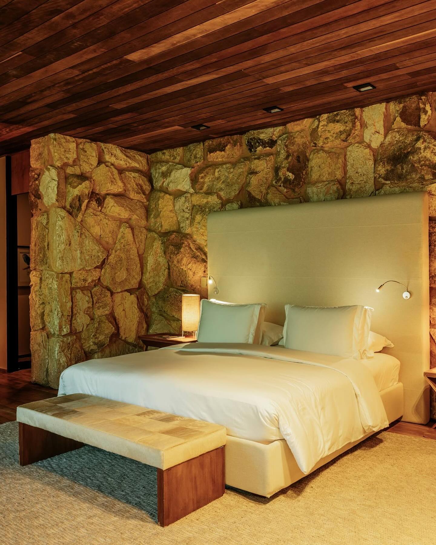 A arquitetura harmoniza design contemporâneo com a exuberância da natureza, emoldurada por lagos tranquilos e bosques densos. As acomodações foram cuidadosamente planejadas para uma integração total com o entorno natural. A gastronomia destaca a essência brasileira, celebrando sabores e ingredientes locais em cada prato.