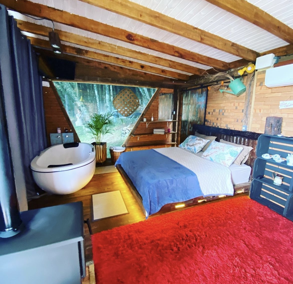 A cabana é o refúgio perfeito para quem deseja se desconectar da rotina e se reconectar com a natureza em um ambiente aconchegante e acolhedor.