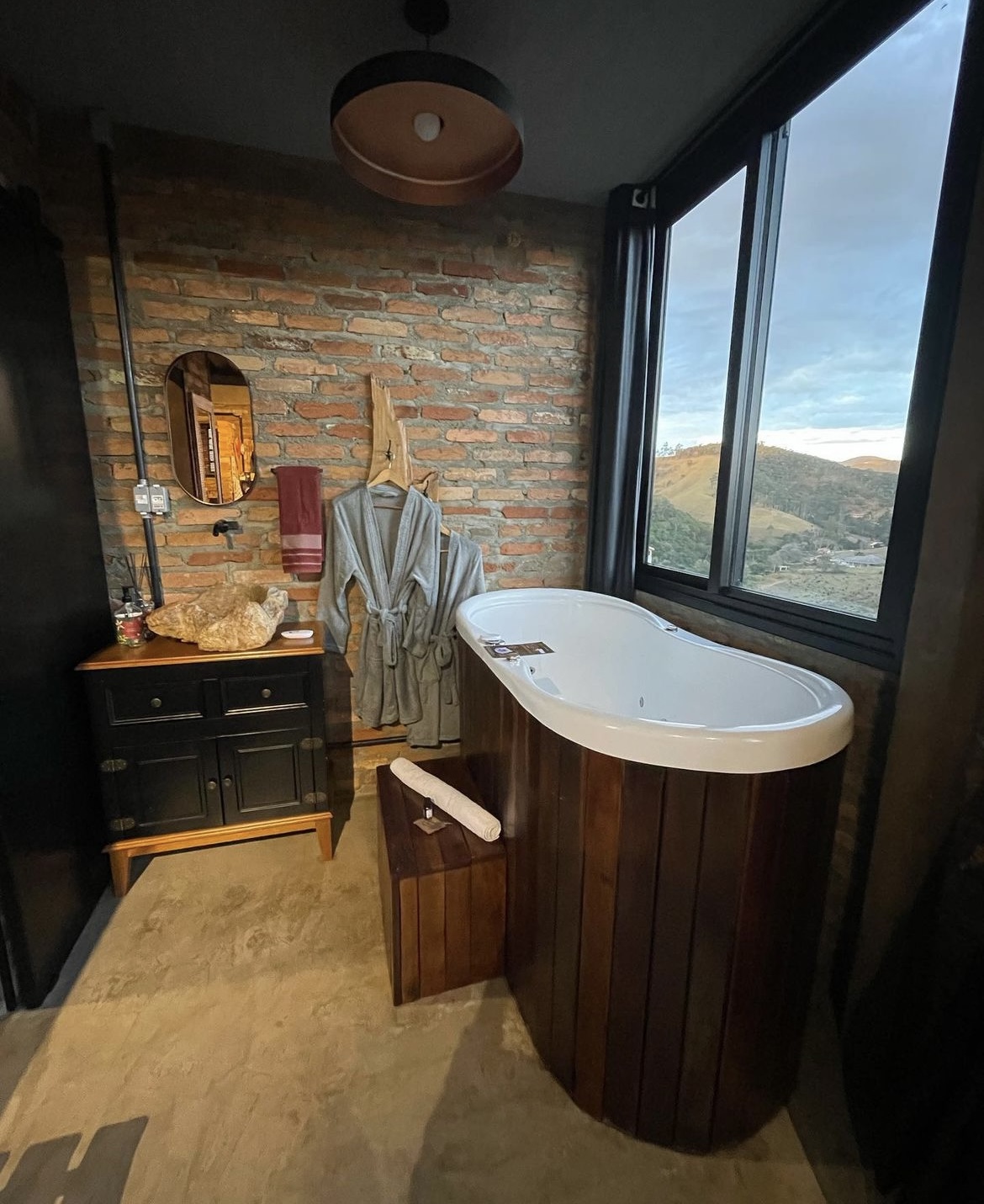 Descanse em um refúgio com vista para as montanhas. Ideal para quem deseja recarregar as energias, celebrar o amor com uma taça de vinho ou até mesmo trabalhar remotamente. O espaço possui vista panorâmica para as montanhas. A proposta é proporcionar a experiência de aproximação constante com a natureza que, por sinal, é linda em todas as suas fases, noturnas ou diurnas.