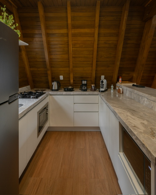 A Cabana Araucária oferece uma experiência exclusiva em meio à natureza, com estrutura de alto padrão e capacidade para até cinco pessoas. Ideal para casais, famílias e amigos que buscam conforto e uma vista deslumbrante das montanhas. Conta com dois quartos, um no primeiro pavimento com cama queen size e outro no mezanino com cama king size, ampla sala de estar, banheiro, lavabo e calefator para os dias frios. O deck possui banheira SPA de hidromassagem e cromoterapia. A cozinha está totalmente equipada, e a região oferece opções gastronômicas e serviços de entrega.