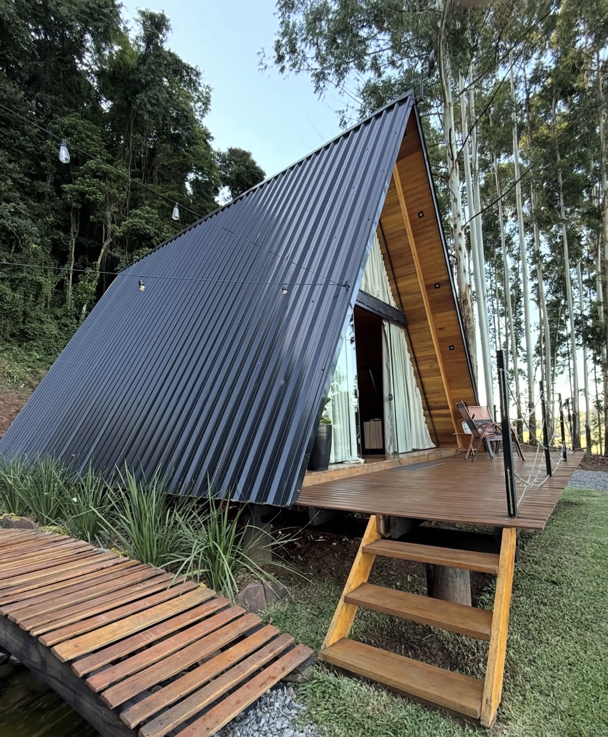A Cabana Della Collina é um refúgio no estilo A-frame que se destaca pela arquitetura marcante e pela vista privilegiada da cidade. Com estrutura triangular e amplas aberturas em vidro, a acomodação proporciona luminosidade natural e integração com a paisagem, criando um ambiente acolhedor e sofisticado para momentos de descanso.