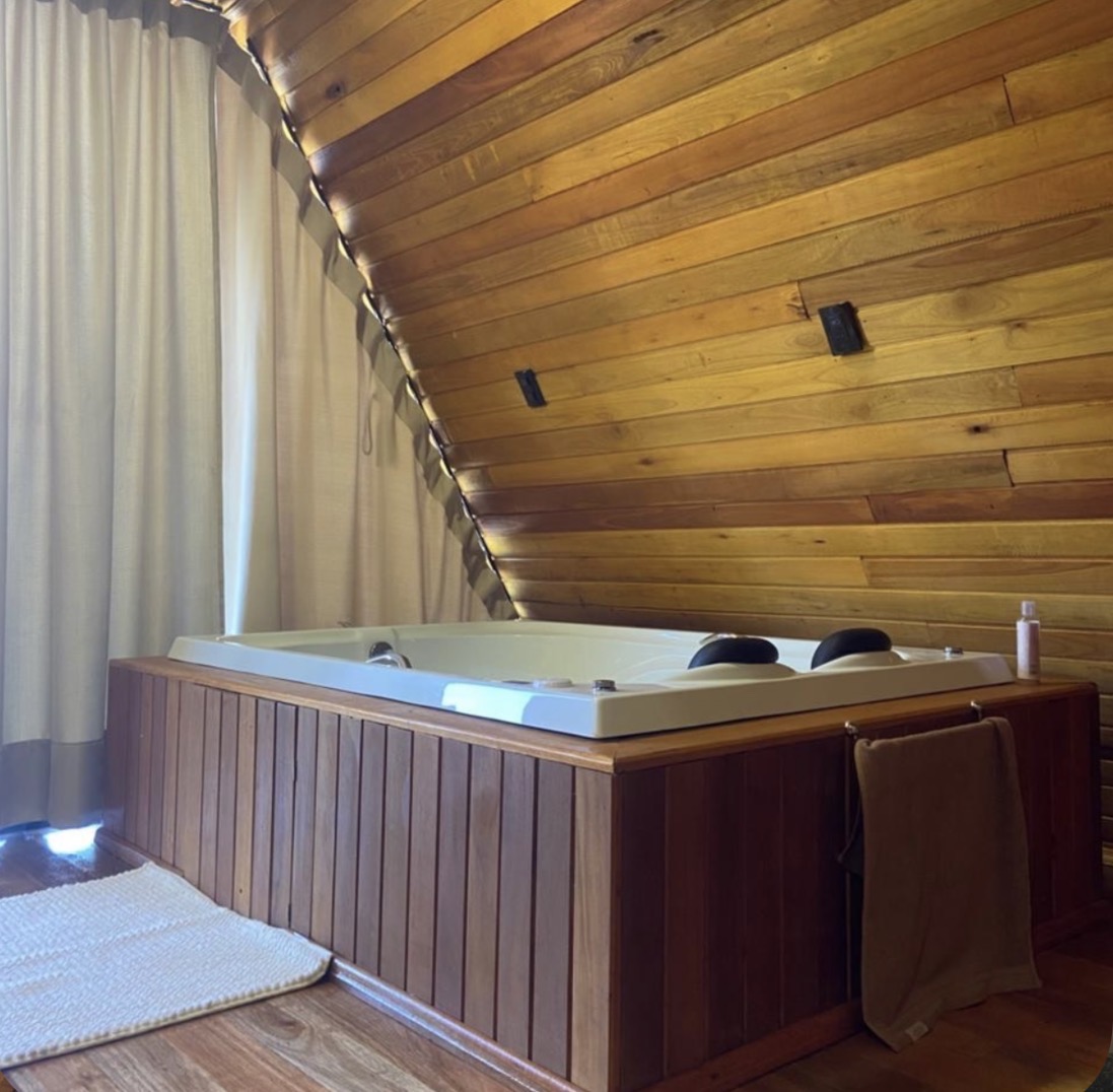 O interior conta com quarto confortável no mezanino, sala integrada, cozinha equipada e banheiro completo, oferecendo praticidade e conforto durante toda a estadia. Ideal para casais que buscam tranquilidade e uma experiência diferenciada em meio ao cenário natural de Anta Gorda, a cabana une charme, privacidade e atmosfera intimista em um único espaço.