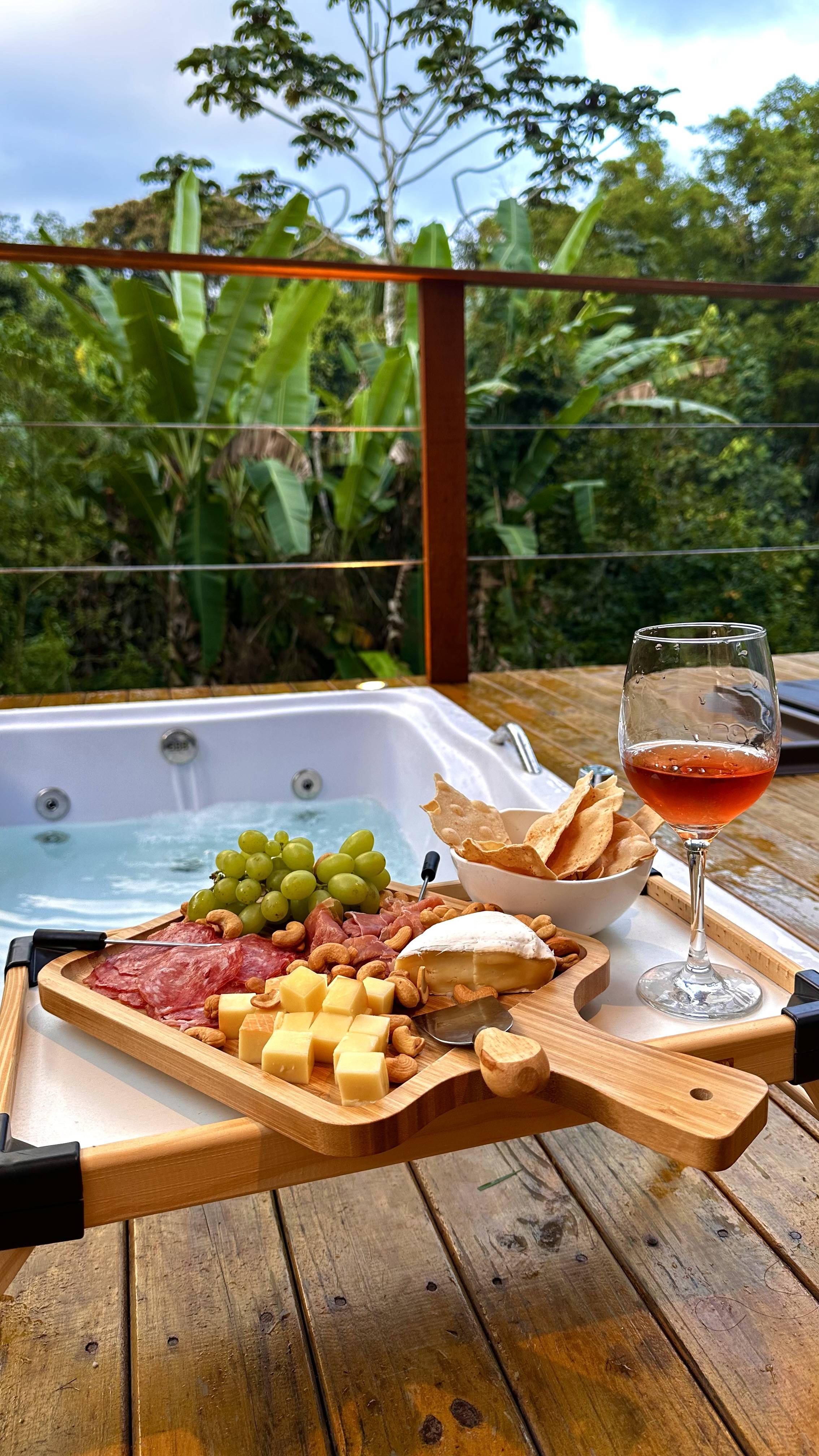 Este refúgio proporciona o equilíbrio perfeito entre a natureza e o conforto, sendo o lugar ideal para quem busca aconchego e tranquilidade. A cabana, rodeada por uma rica vegetação, oferece uma vista privilegiada para a mata, enquanto o som suave da cachoeira cria um ambiente sereno. É comum avistar famílias de saguis e tucanos nas árvores ao redor, adicionando um toque especial à experiência de imersão na natureza.