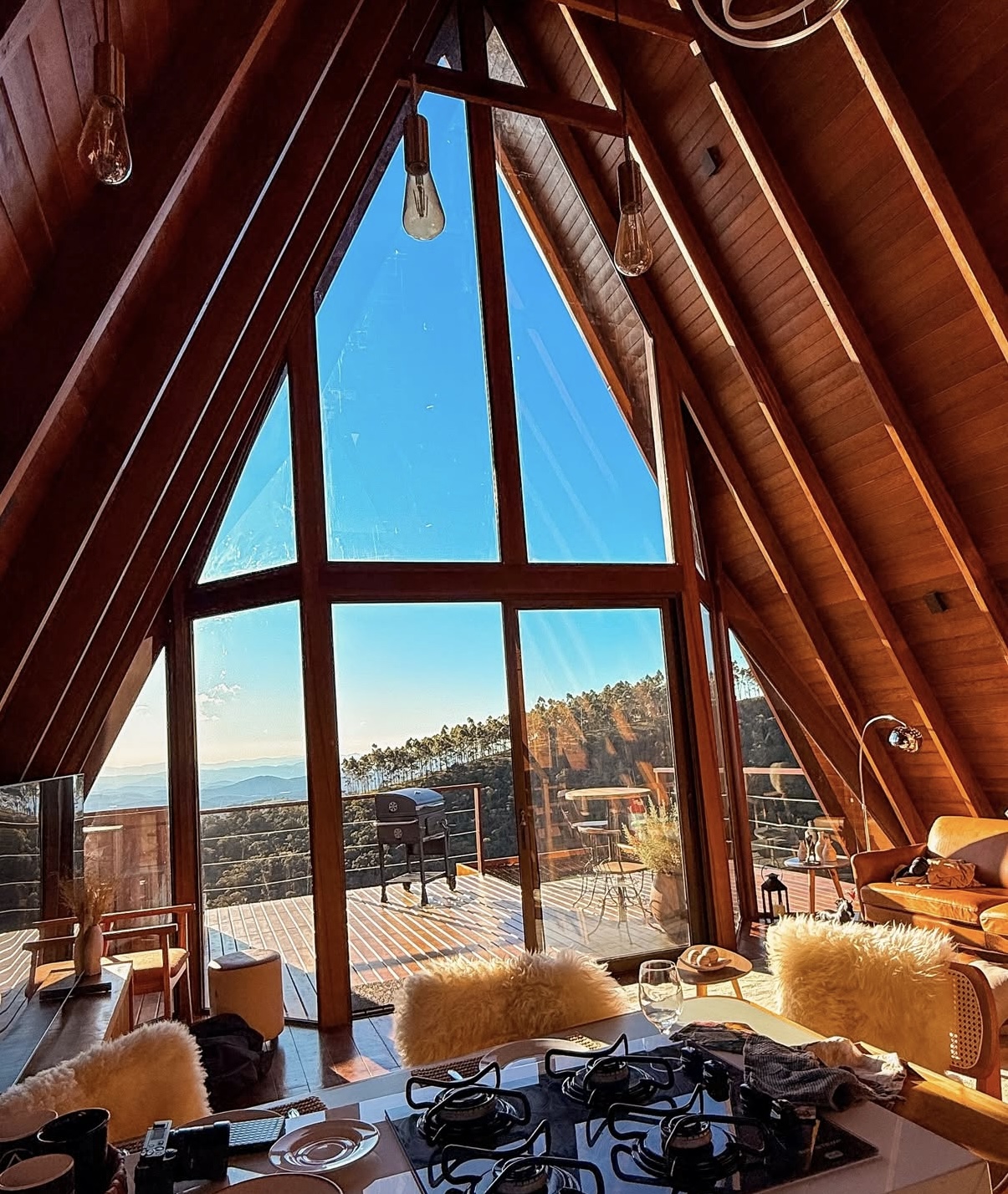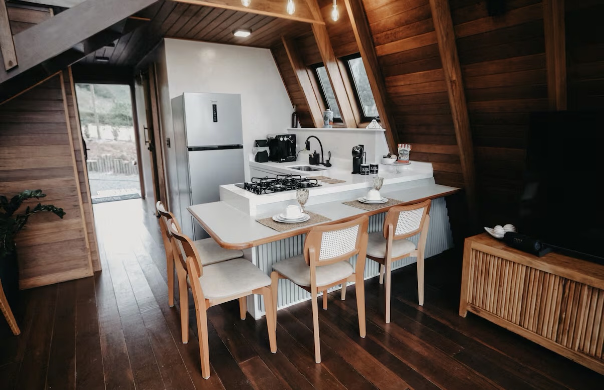 A Cabana Quatro Estações oferece uma experiência de hospedagem marcada pelo silêncio, pelo verde ao redor e por uma vista que valoriza a contemplação e o descanso. Inserida em um cenário de montanha, a cabana convida a desacelerar, com ambientes acolhedores, aroma da madeira e um ofurô aquecido que transforma o pôr do sol em um momento especial.