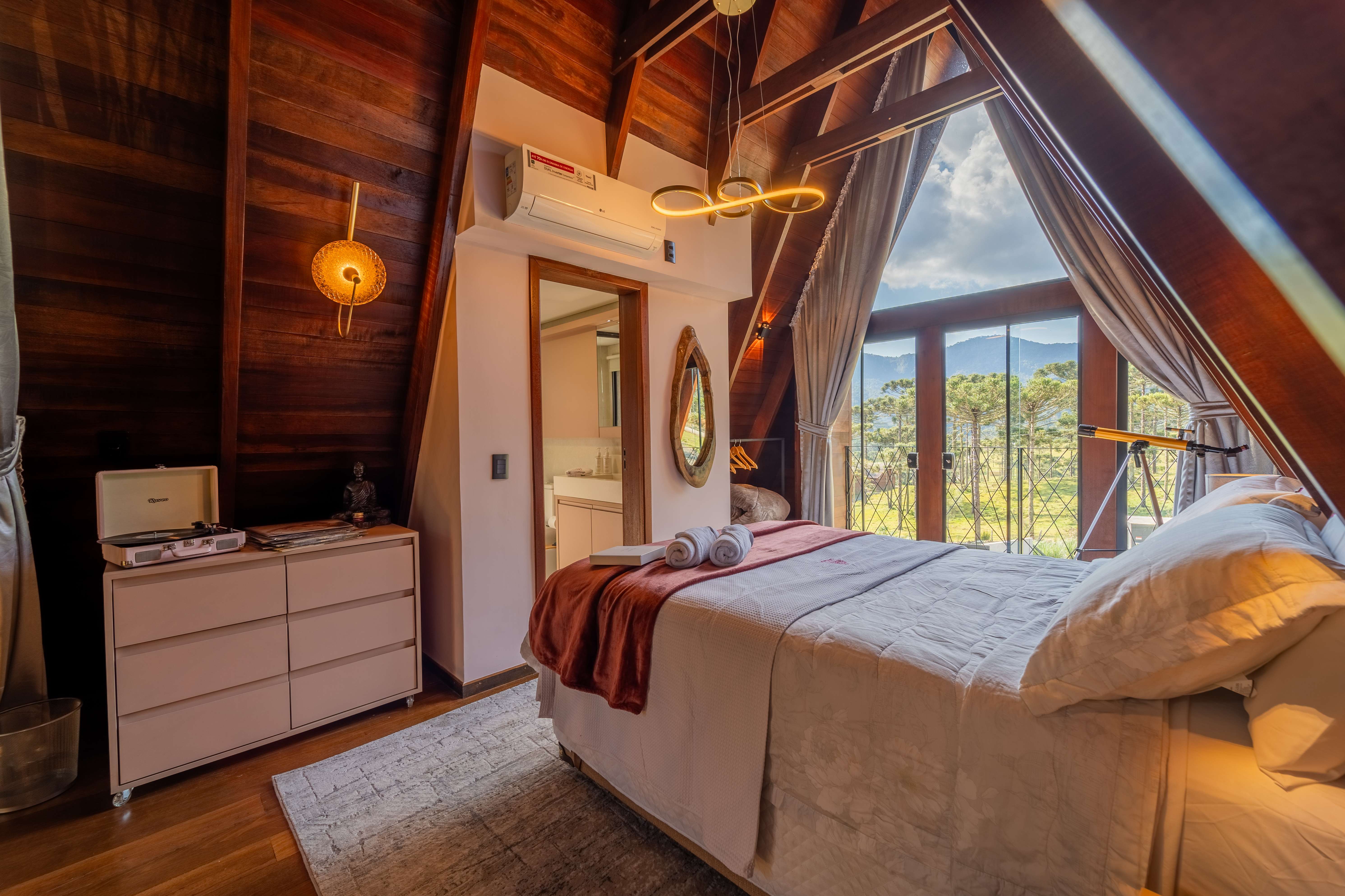 Ar condicionado Secador de cabelo TV a cabo / Smart TV Jacuzzi / Ofurô / Banheira Coberta Frigobar Lareira Máquina de Café Enxoval de Luxo (+ Roupão e Pantufa) Sauna Cozinha Estação de trabalho (mesa e cadeira) Piscina Aquecida ou climatizada Borda Infinita Coberta