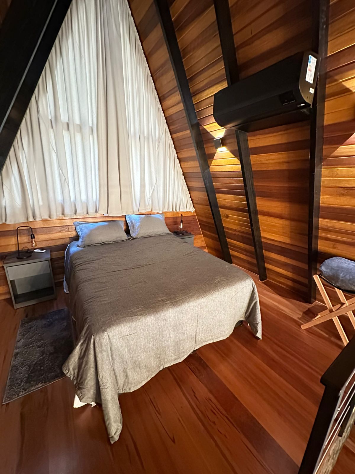 As Cabanas possuem cerca de 80m2 e contam com um quarto (Mezanino, acesso por escadas), com Cama Queen, Cozinha Completa (Forno, Microondas, Cooktop de duas bocas, Pia e Frigobar), além de uma Banheira de imersão incrível , sala completa com TV, mesa de jantar e wifi de alta velocidade, ar condicionado quente e frio na sala e no quarto.