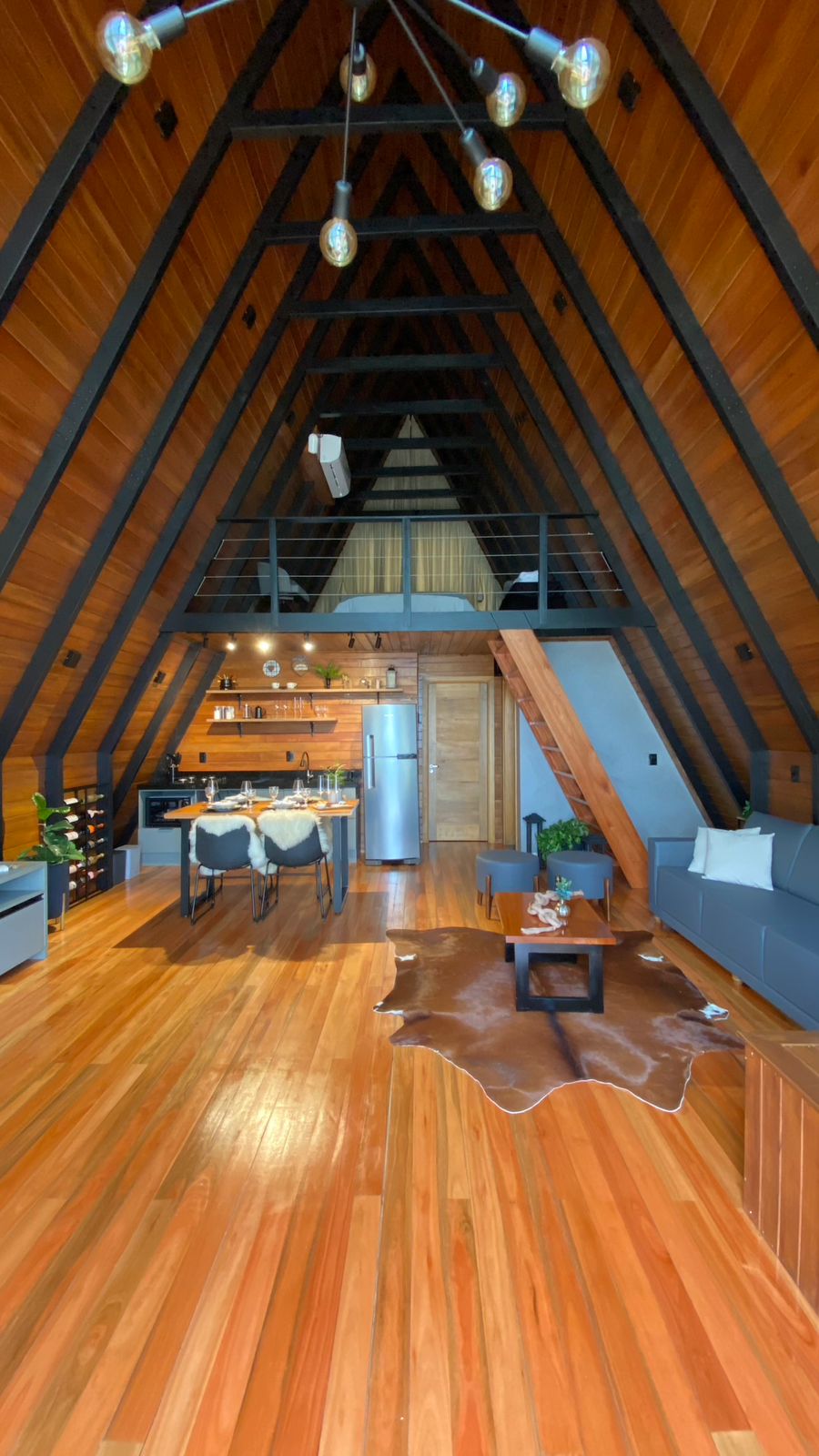 A Cabana Vale do Sol é uma hospedagem construída em estilo A-frame, possui 2 quartos com camas de casal, 2 climatizadores, roupa de cama e banho, chuveiro com aquecimento a gás, lareira, hidromassagem, cozinha completa e área gourmet externa.