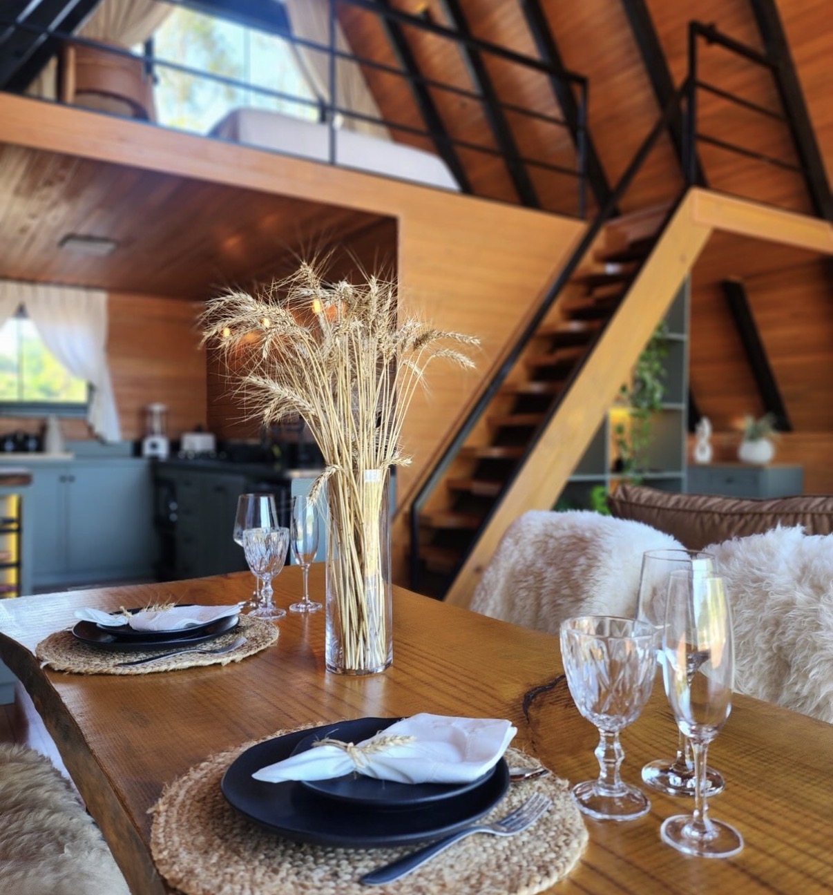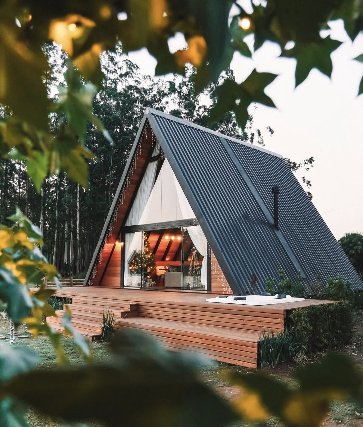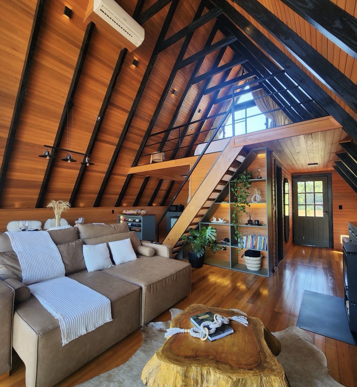 Cabana A-frame em ilha privativa, no centro de um lago de 7 hectares, ideal para quem busca tranquilidade, exclusividade e contato com a natureza. Vista para a água, deck para relaxar e privacidade total.