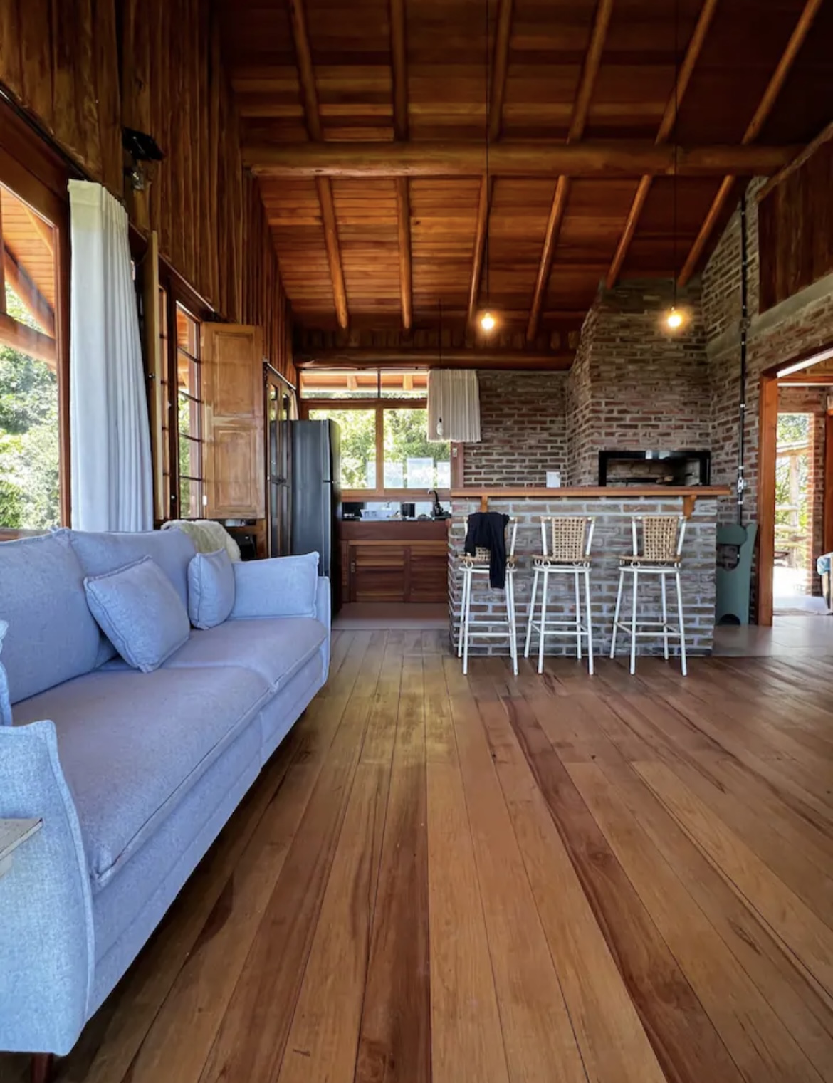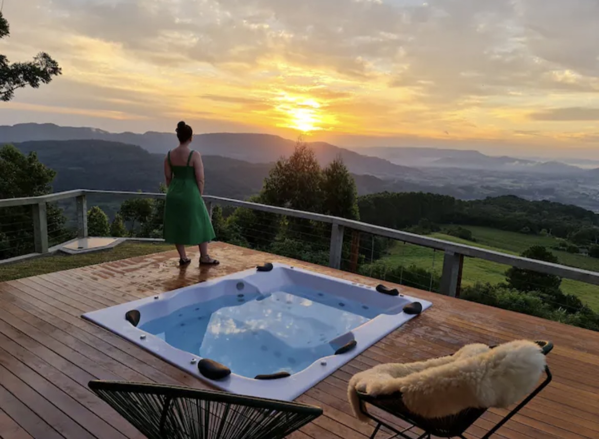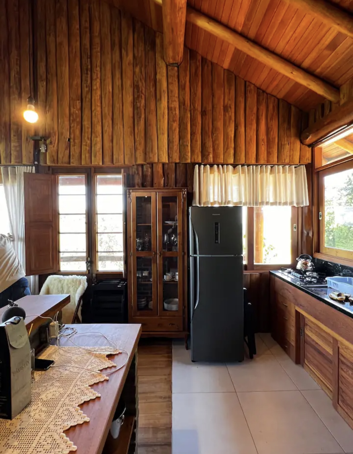Entre os destaques, estão a banheira de hidromassagem externa posicionada em frente à cabana, cozinha equipada com fogão a lenha e a gás, além de churrasqueira. Conta também com smart TV, chuveiro elétrico, área externa ampla e vista panorâmica para o Vale do Taquari e cidades vizinhas, proporcionando momentos únicos de descanso e contemplação.