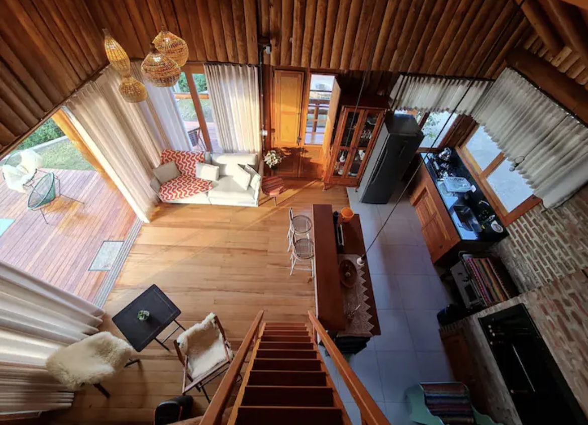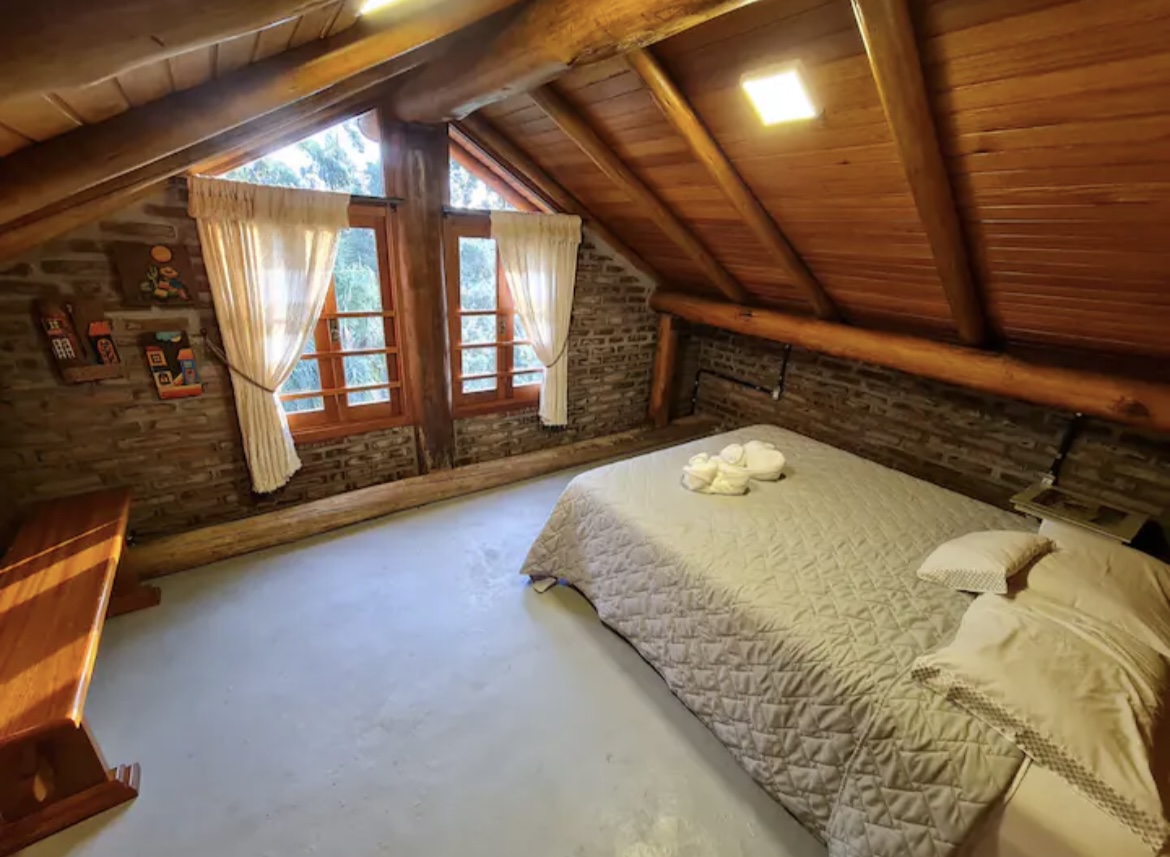 Cabana rústica no alto de um morro, cercada de privacidade e com capacidade para até quatro pessoas. O espaço dispõe de um quarto com cama de casal e varanda com vista, além de um mezanino aconchegante com cama adicional.