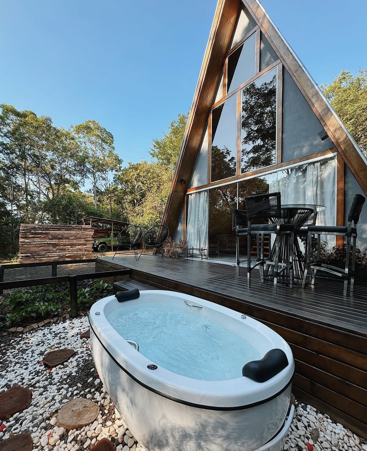 A Chácara dos Poderes oferece cabanas exclusivas para quem busca imersão na natureza, com total conforto e charme. Localizadas em um ambiente tranquilo, a proposta é proporcionar uma experiência de turismo de isolamento, garantindo privacidade e um refúgio perfeito para descansar e se reconectar com a natureza.