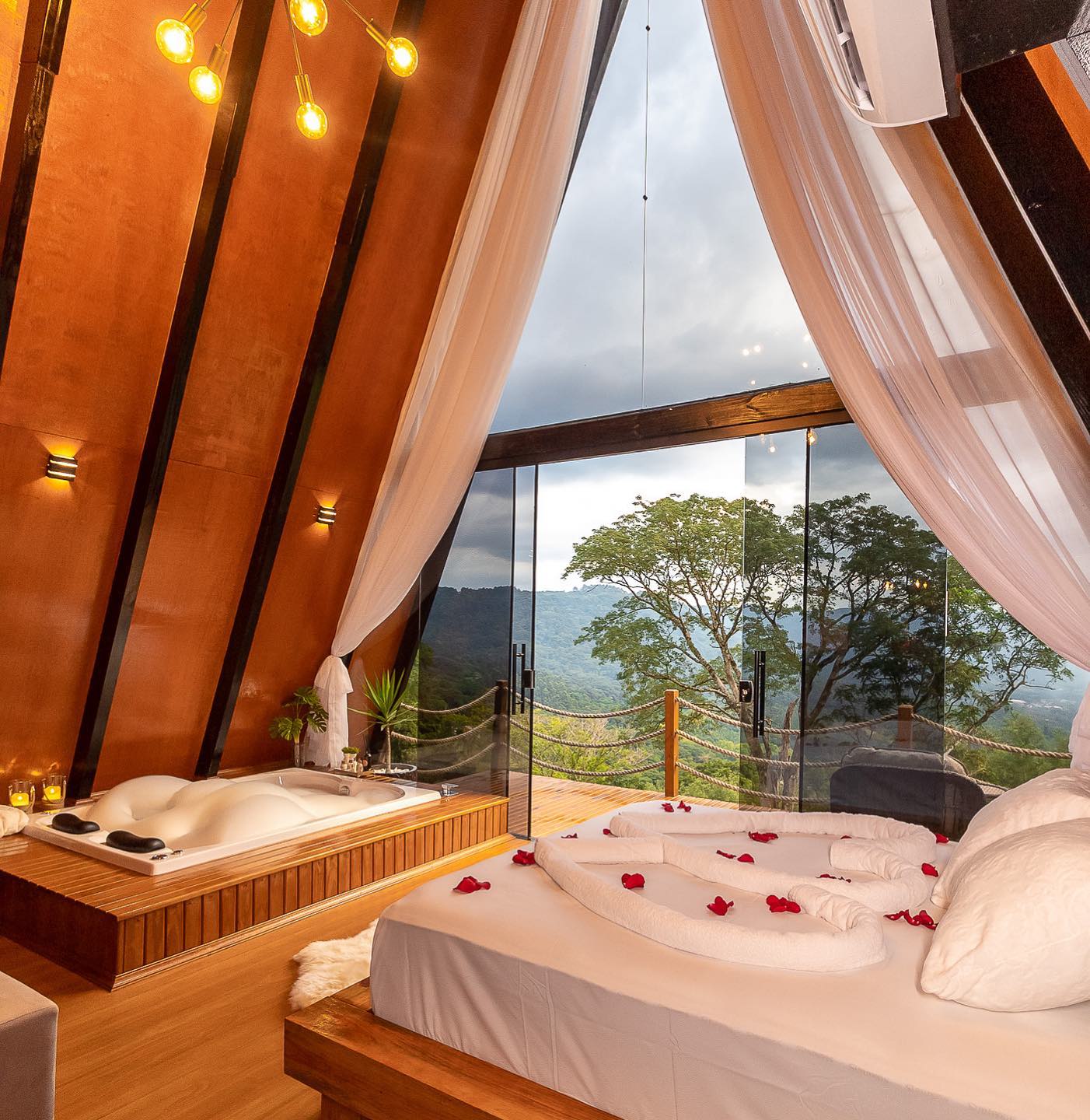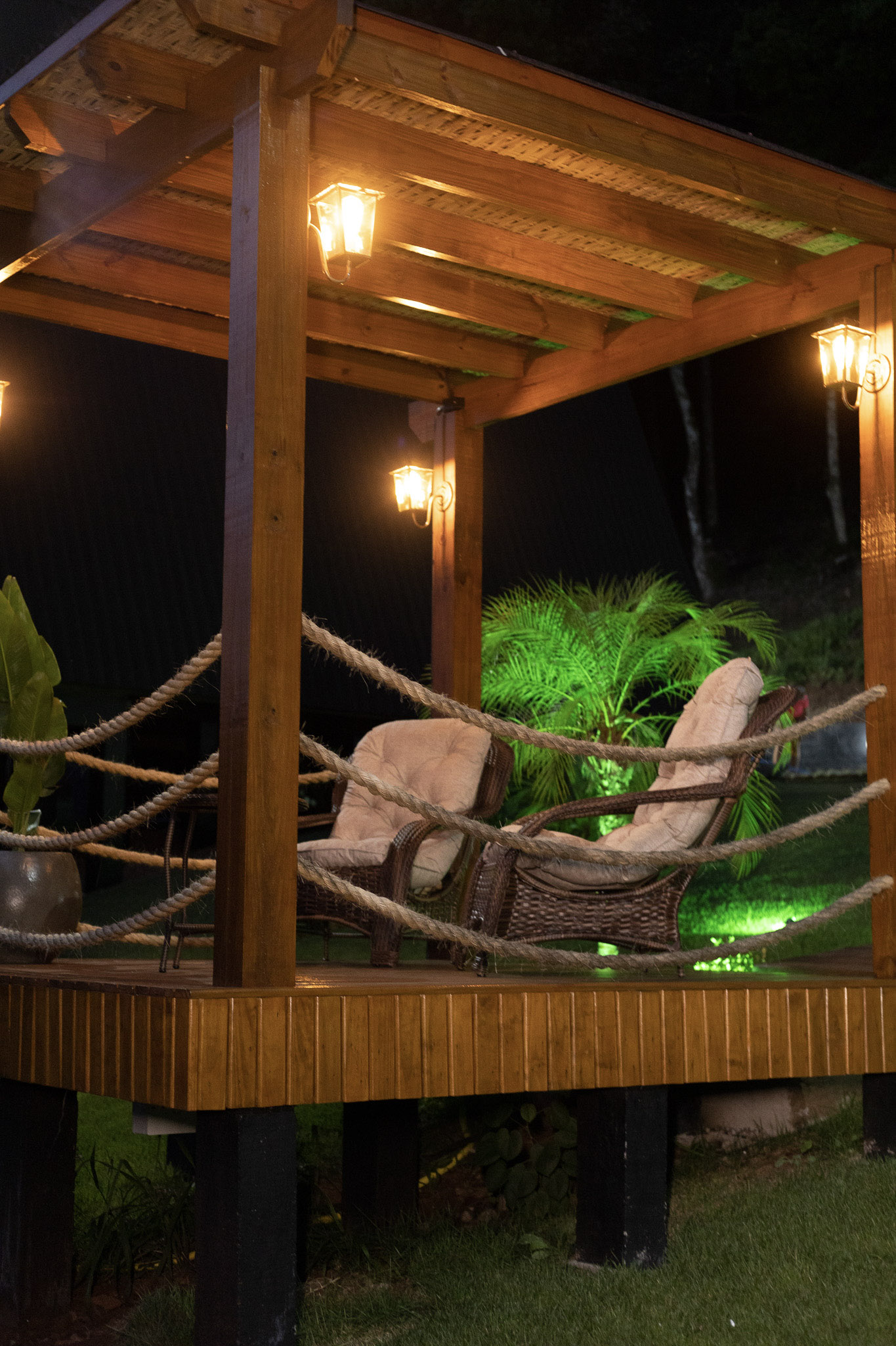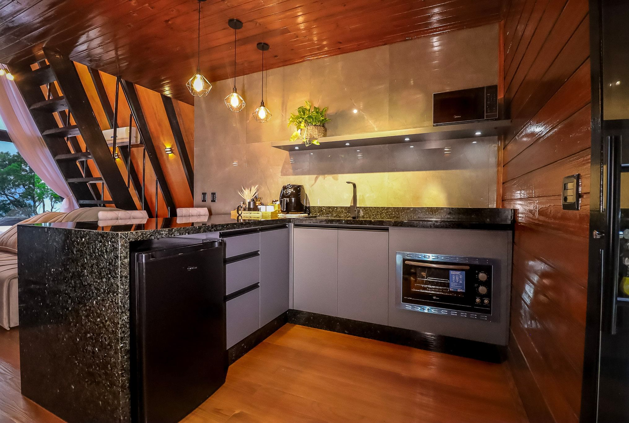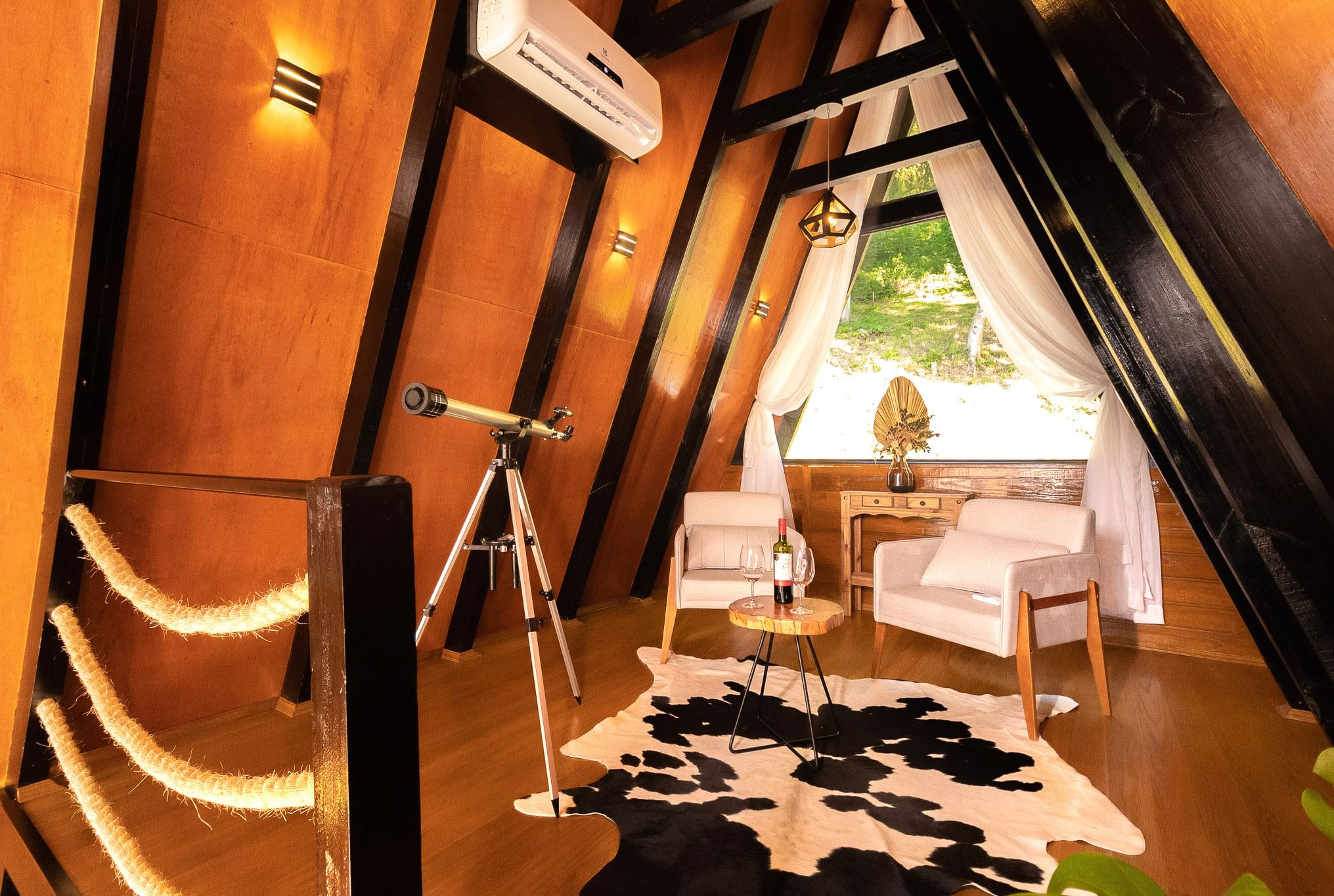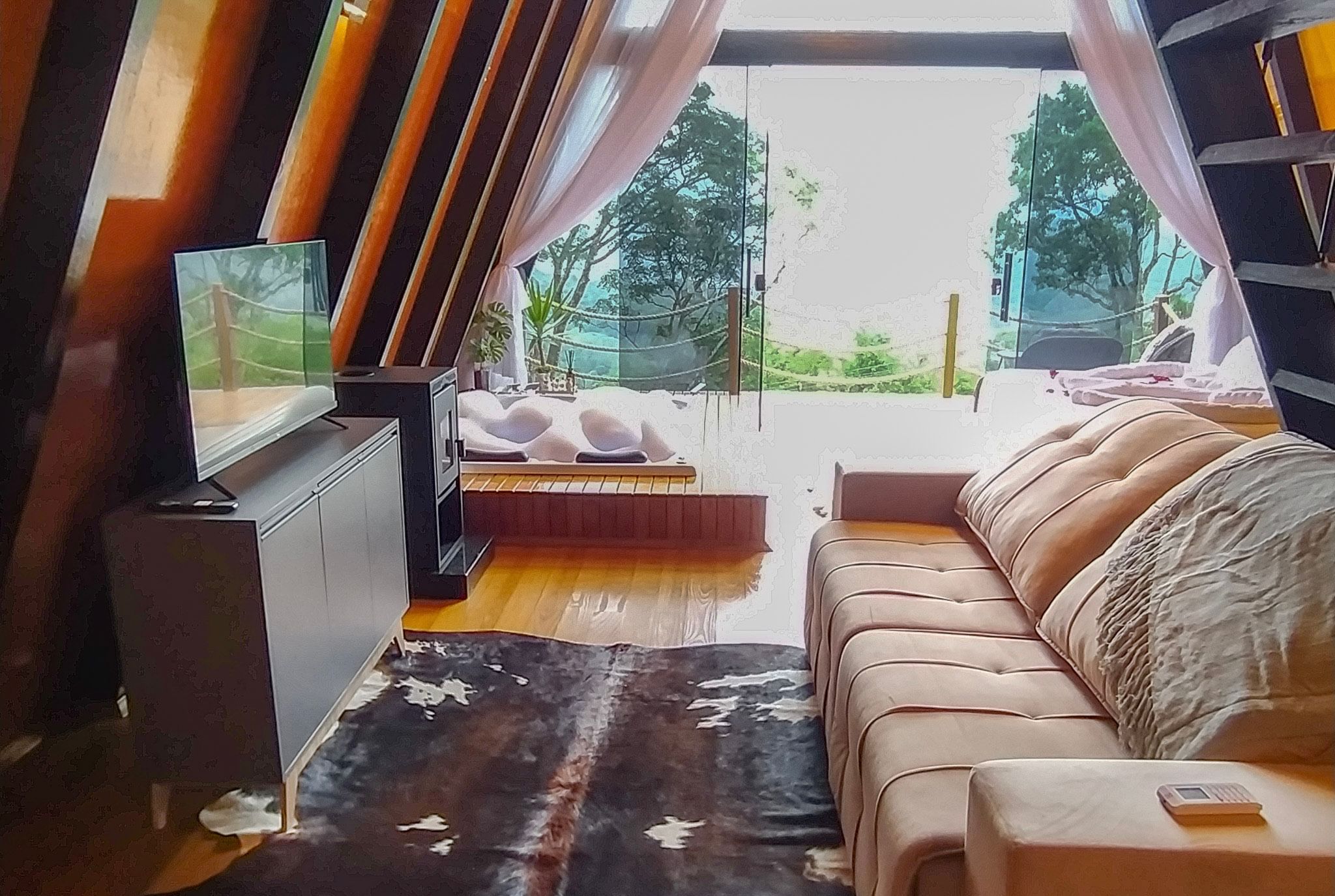 A cabana é um espaço único, onde se encontra um local de descanso, ideal para curtir momentos a dois. Na cabana Aroma, encontra-se conforto, segurança e tranquilidade, além disso, oferece lareira para os dias mais frios, banheira com hidromassagem e cromoterapia, uma cozinha completa com fogão, forno, micro-ondas, frigobar e todos os utensílios. Também há disponível secador de cabelo, TV, Netflix, toalhas, roupões, sabonetes, além de água, refrigerante, snacks à venda no frigobar. Tudo isso com uma vista linda e a tranquilidade que se merece.