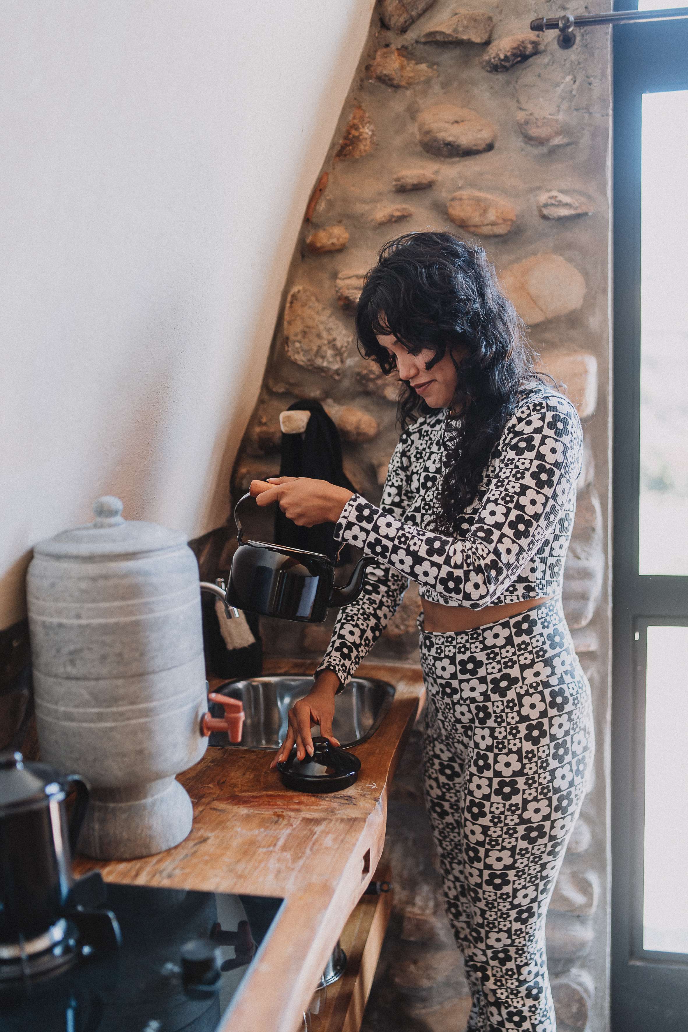 A experiência se completa com uma agrofloresta viva, onde os hóspedes podem colher hortaliças frescas e ervas medicinais para uso na cozinha, trazendo a terra diretamente para a mesa.