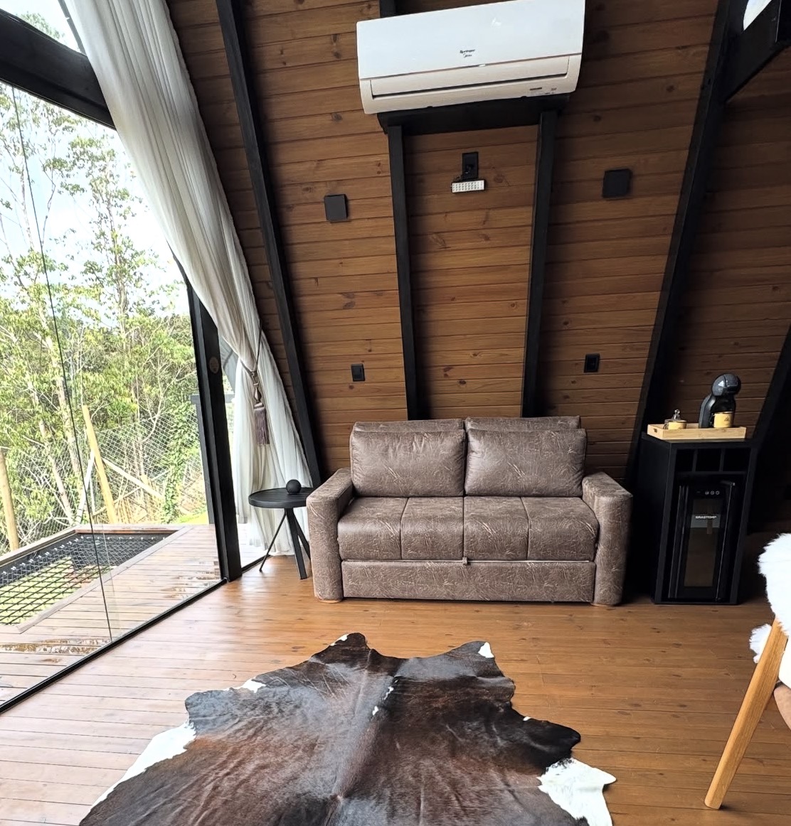 O espaço conta com duas cabanas modernas e aconchegantes, rodeadas por um belo jardim gramado, varais de luzes e uma Prisma Grill multifuncional, ideal para noites especiais ao ar livre. O condomínio dispõe ainda de lago, parquinho, calçamento e uma loja de conveniência com mercado autônomo, além de uma feirinha com produtos locais aos sábados. Um refúgio perfeito para quem busca conexão com a natureza sem abrir mão do conforto e da tranquilidade.