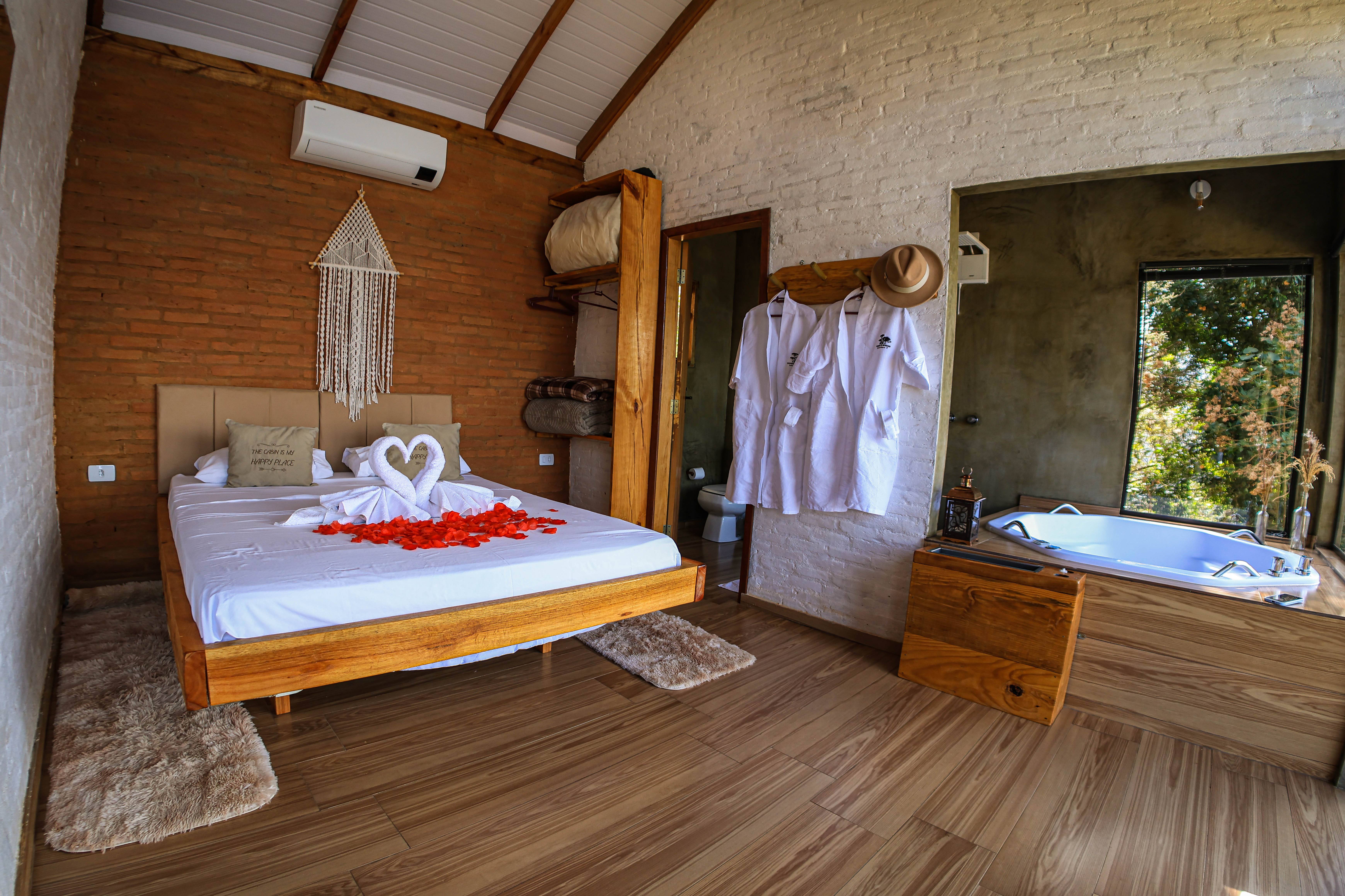 As cabanas sao únicas, oferecendo privacidade na Serra da Mantiqueira. O espaço foi cuidadosamente planejado, cheio de detalhes e é permitida a presença de animais.