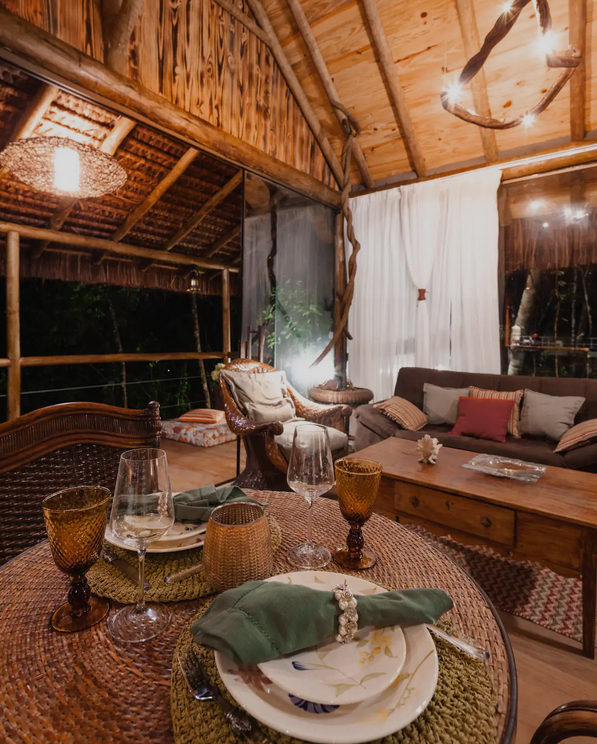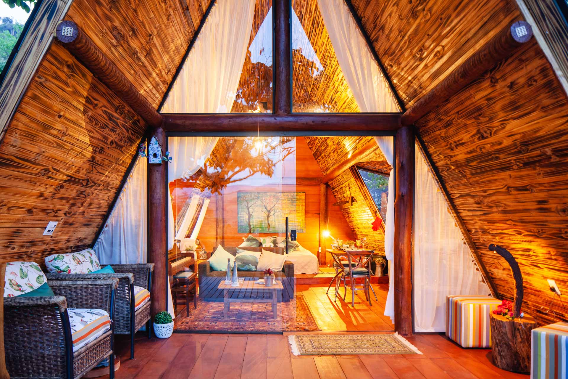As cabanas estão posicionadas em meio ou acima da mata, árvores e montanhas, conferindo total privacidade aos hóspedes, ainda que construída com paredes de vidro. Para aqueles que querem viver um momento a dois, meditar, reorganizar os pensamentos, o local é bastante indicado, uma excelente oportunidade para se desligar e esquecer as preocupações por um determinado momento.