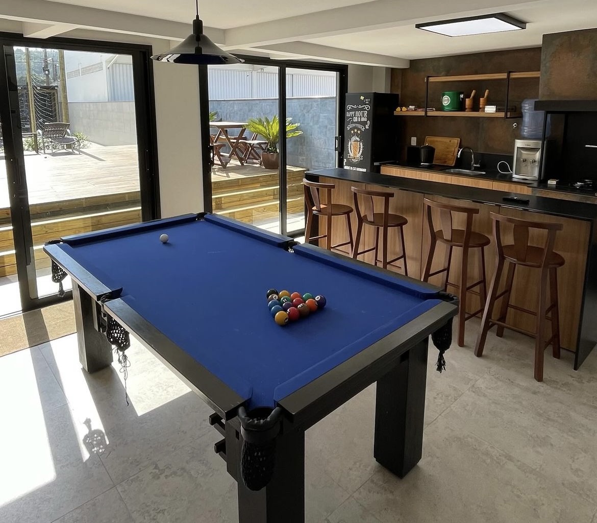Pé na areia, a Casa Caminho da Praia hospeda confortavelmente até 16 pessoas! São 6 quartos, quadra de areia, piscina, jacuzzi e garagem para 8 carros.
