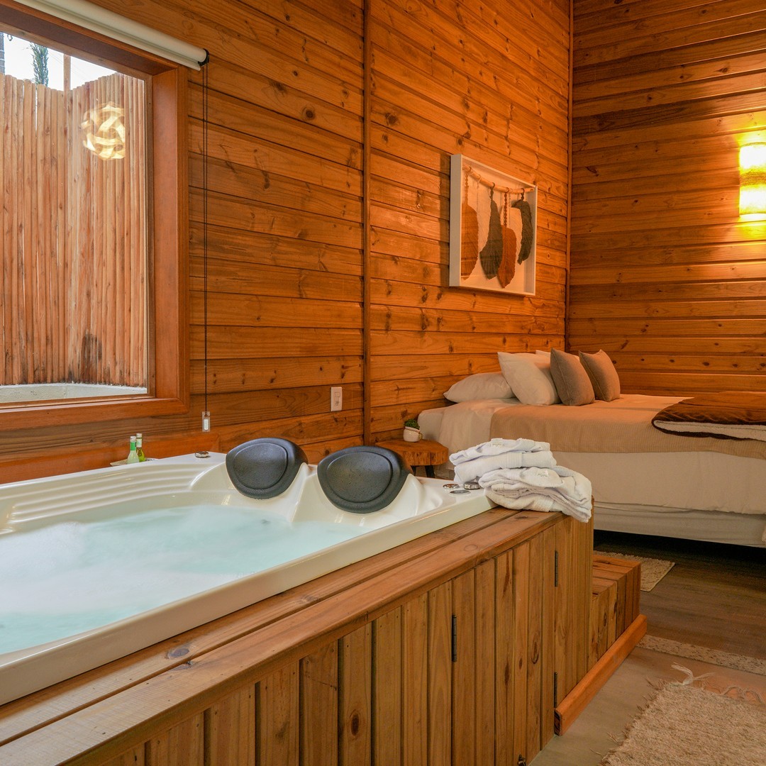 Ar condicionado Secador de cabelo TV a cabo / Smart TV Jacuzzi / Ofurô / Banheira Coberta Frigobar Lareira Máquina de Café Enxoval de Luxo (+ Roupão e Pantufa) Sauna Cozinha Estação de trabalho (mesa e cadeira) Piscina Aquecida ou climatizada Borda Infinita Coberta