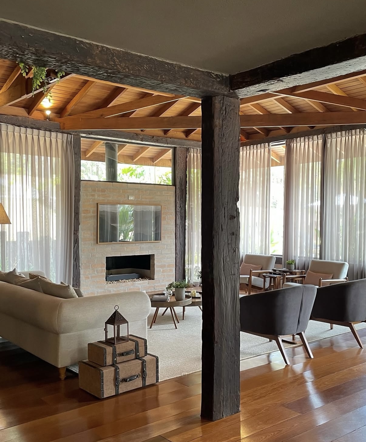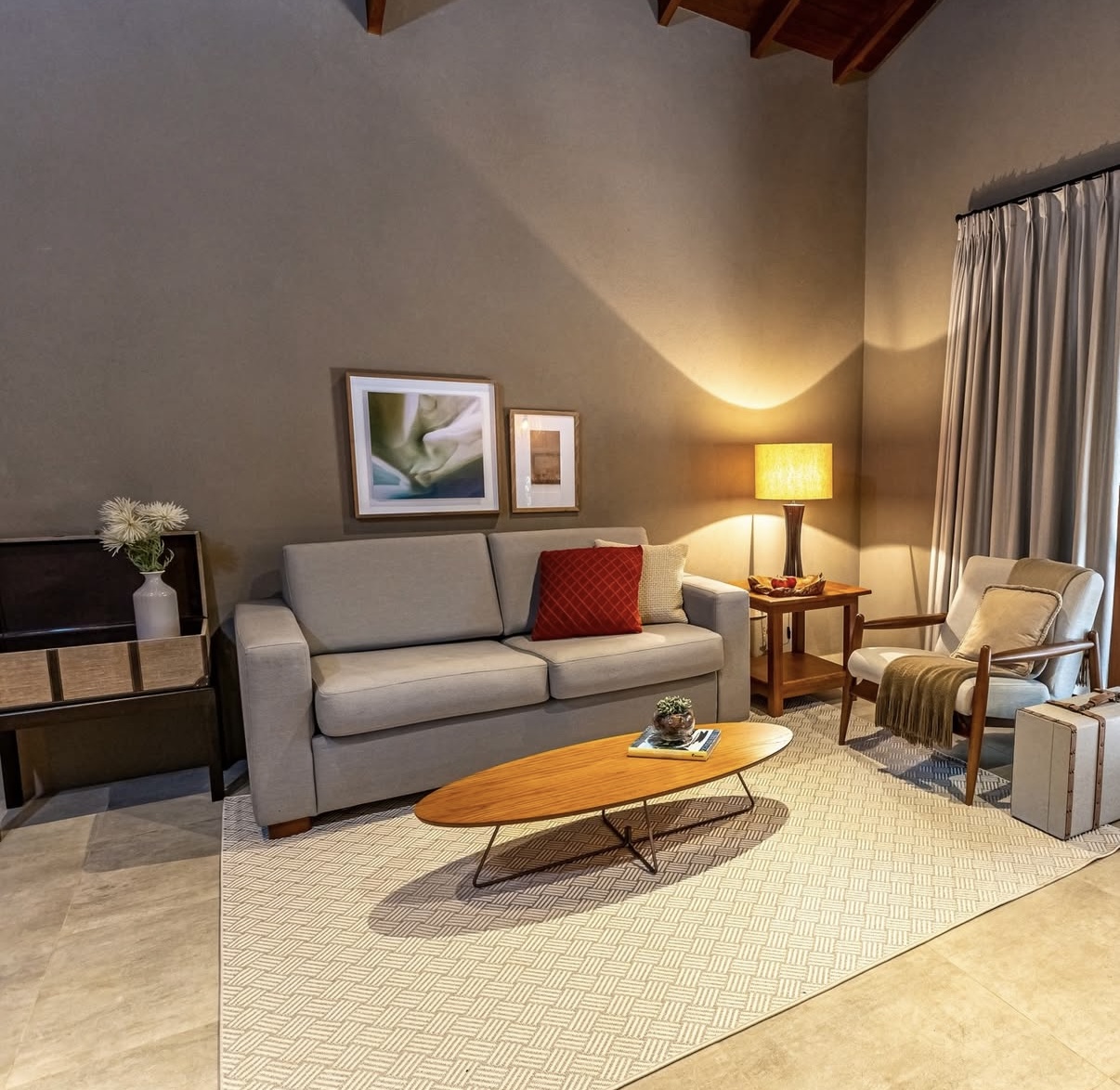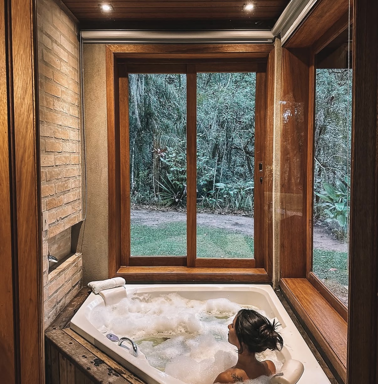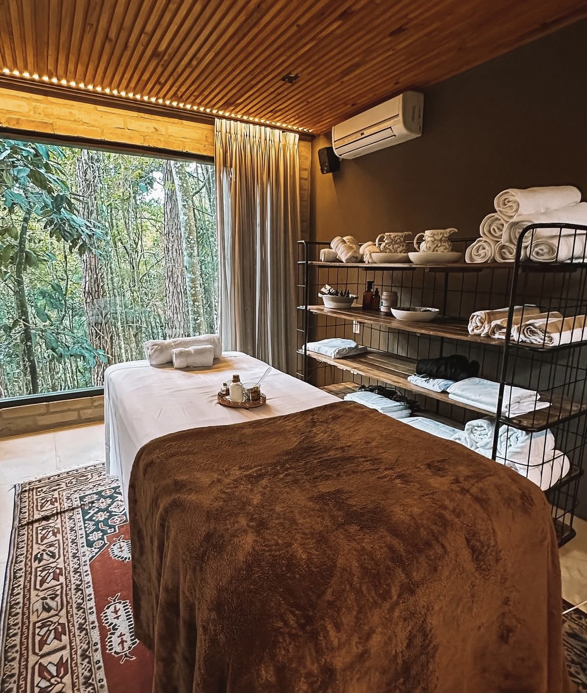 São oito chalés entre 80 m² e 110 m², projetados no conceito open-space e equipados com cama king-size, sofá-cama de casal, lareira, banheira de hidromassagem, sala de banho, varanda, frigobar e TV de 43'. Cada unidade acomoda até três pessoas com máximo conforto e privacidade. O ambiente proporciona uma experiência de hospedagem diferenciada, unindo elegância, charme e total integração com a natureza.