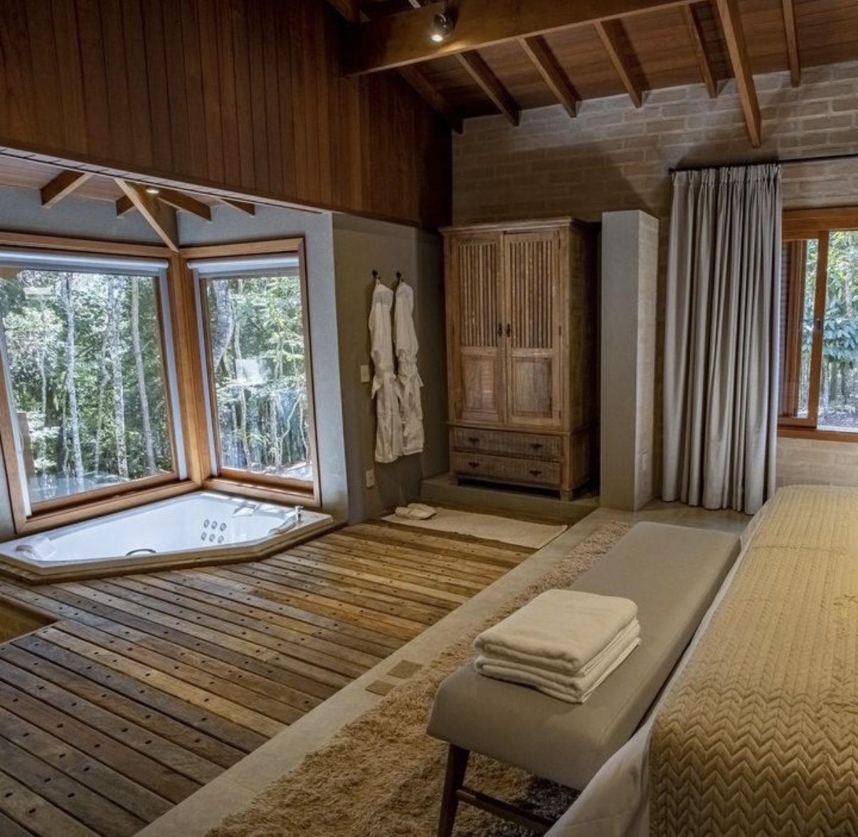 Ar condicionado Secador de cabelo TV a cabo / Smart TV Jacuzzi / Ofurô / Banheira Coberta Frigobar Lareira Máquina de Café Enxoval de Luxo (+ Roupão e Pantufa) Sauna Cozinha Estação de trabalho (mesa e cadeira) Piscina Aquecida ou climatizada Borda Infinita Coberta