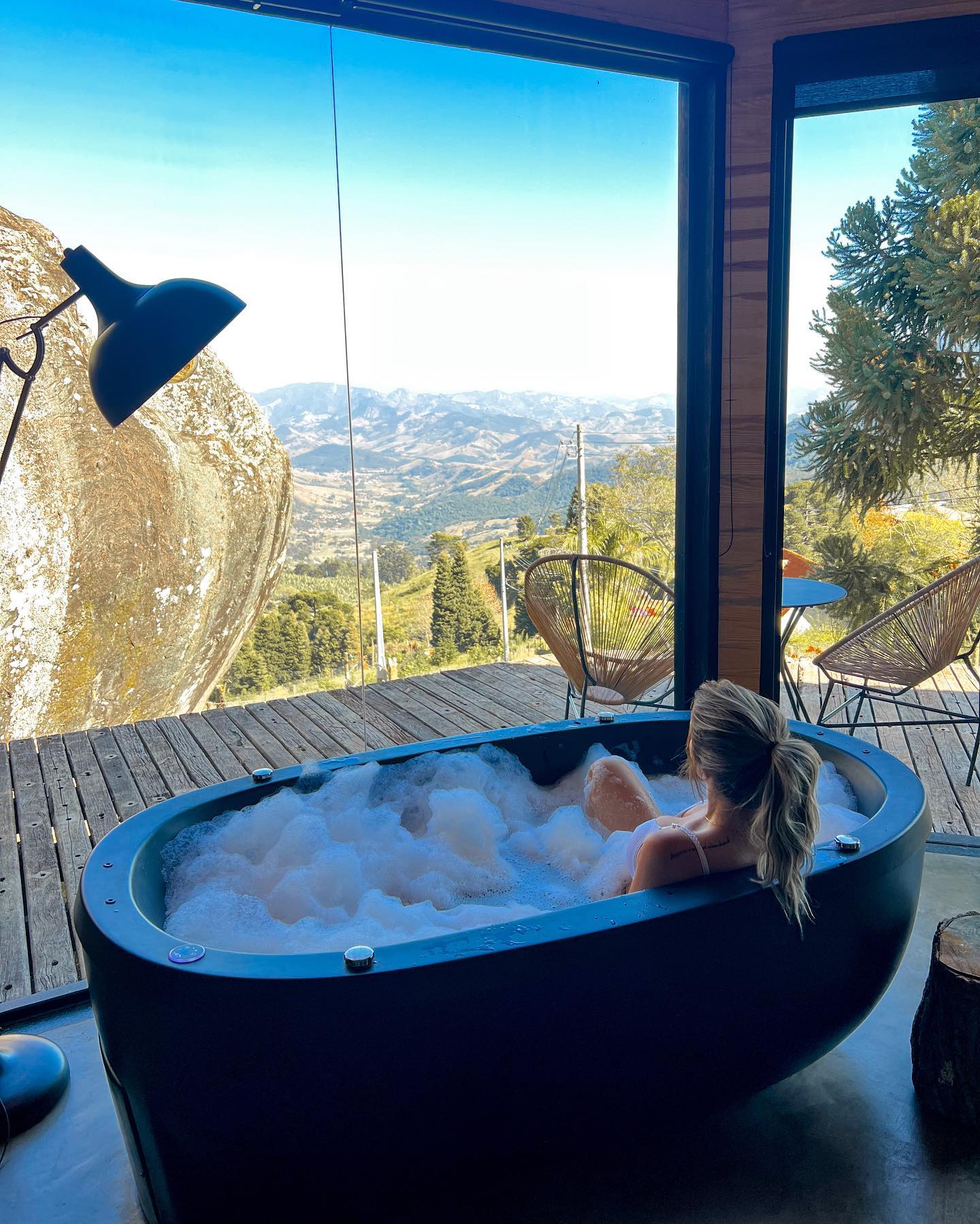 O Cara de Cão Chalés oferece acomodações exclusivas, privativas e independentes, localizadas ao pé da Pedra do Baú, próximas ao início das trilhas. Situado a 11 km do centro de São Bento do Sapucaí, no bairro rural do Paiol Grande, em meio às montanhas, o local conta com 6 chalés/cabanas e 1 Trailer Home, todos em terrenos separados, garantindo total privacidade. Algumas opções incluem piscina privativa ou banheira. Todos os chalés são equipados com cozinha, proporcionando aos hóspedes a liberdade de desfrutar da estadia com tranquilidade, cercados pela natureza, ao som dos pássaros e com vista para a Pedra do Baú.