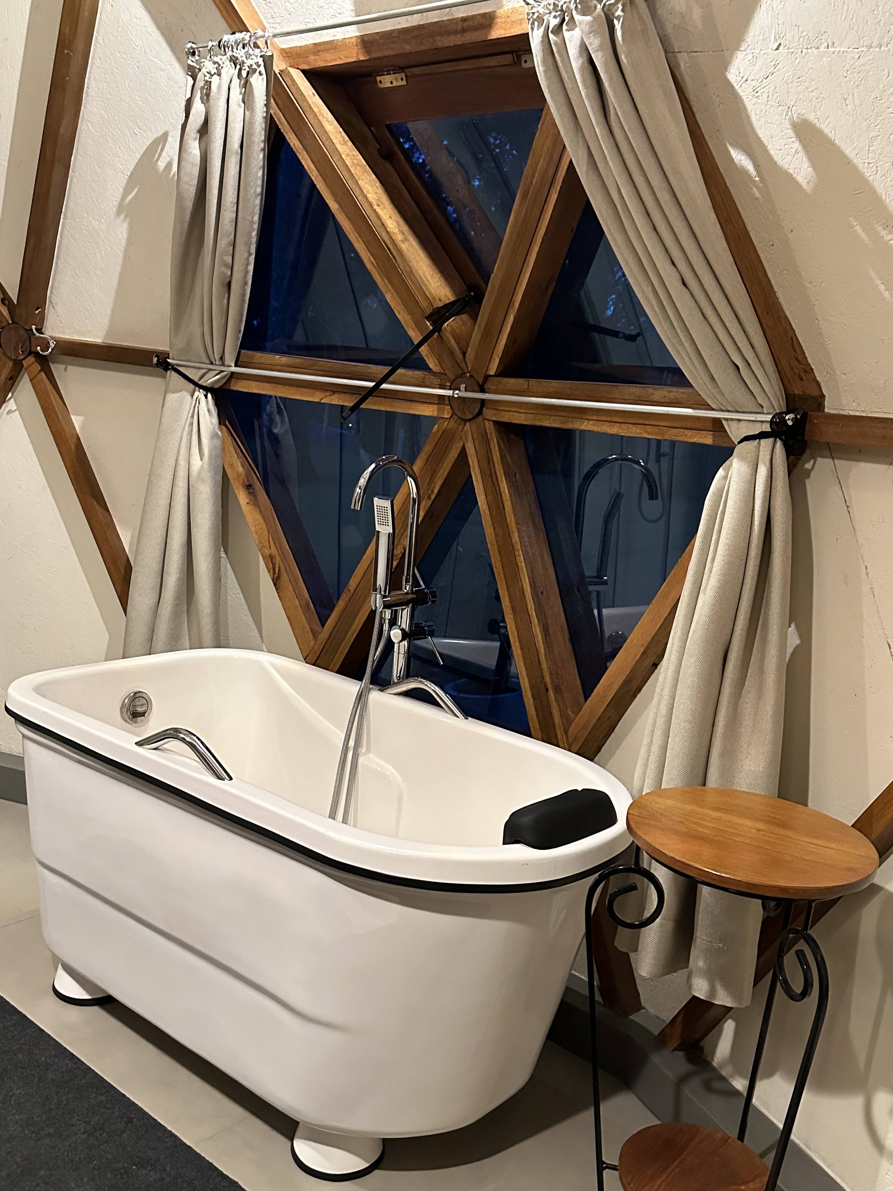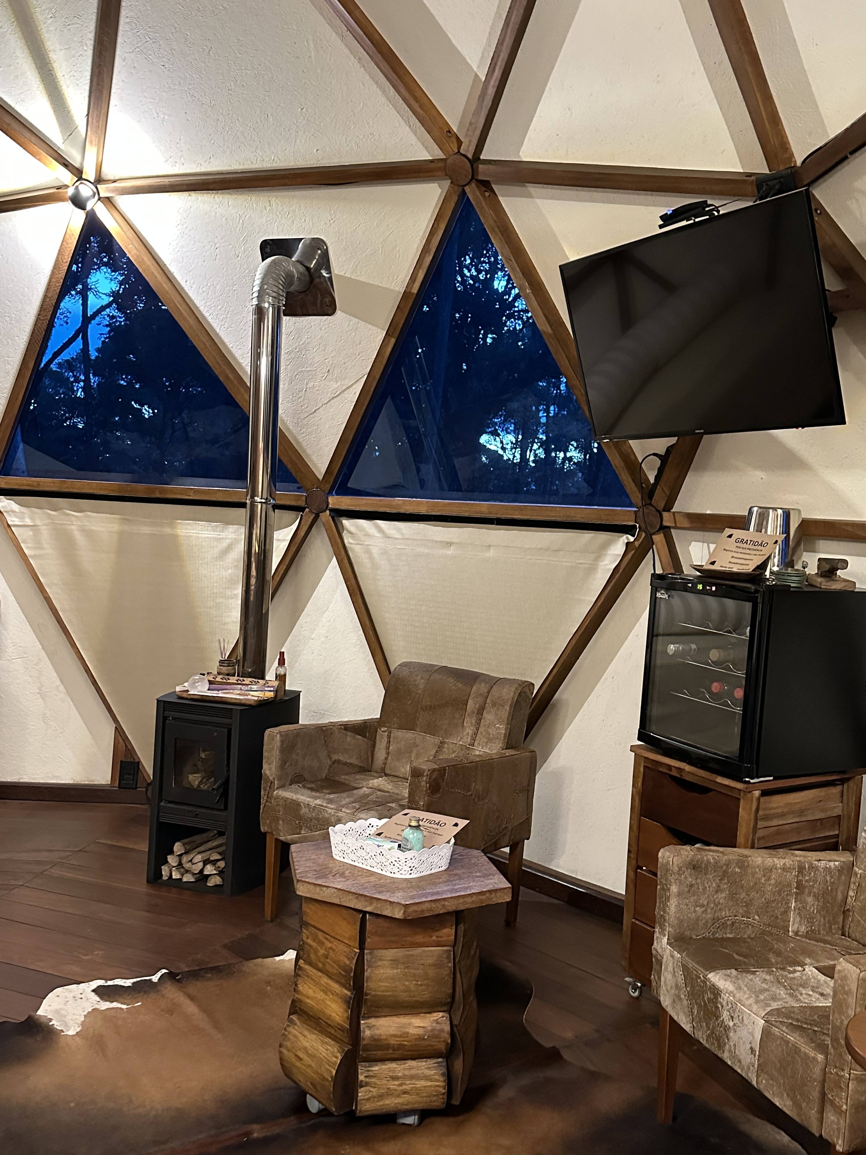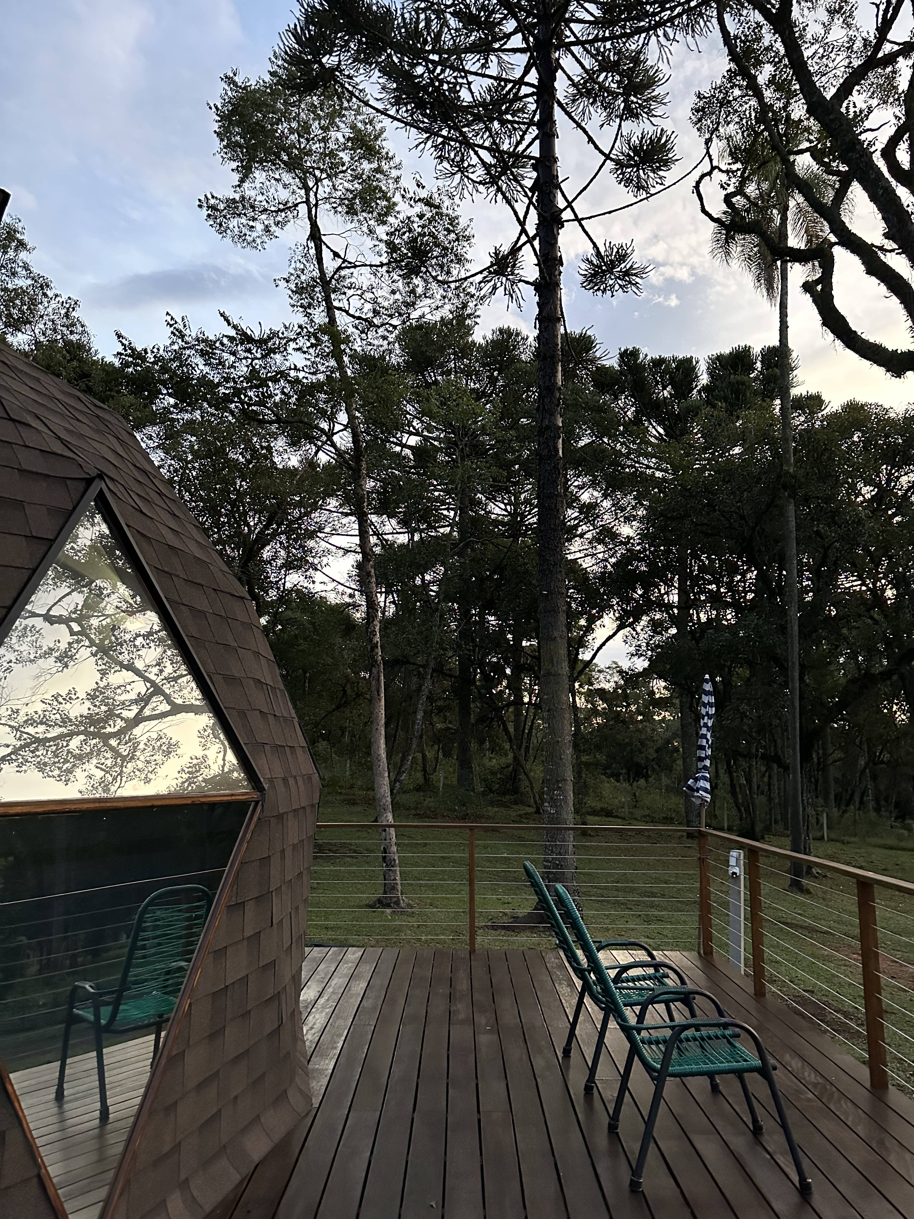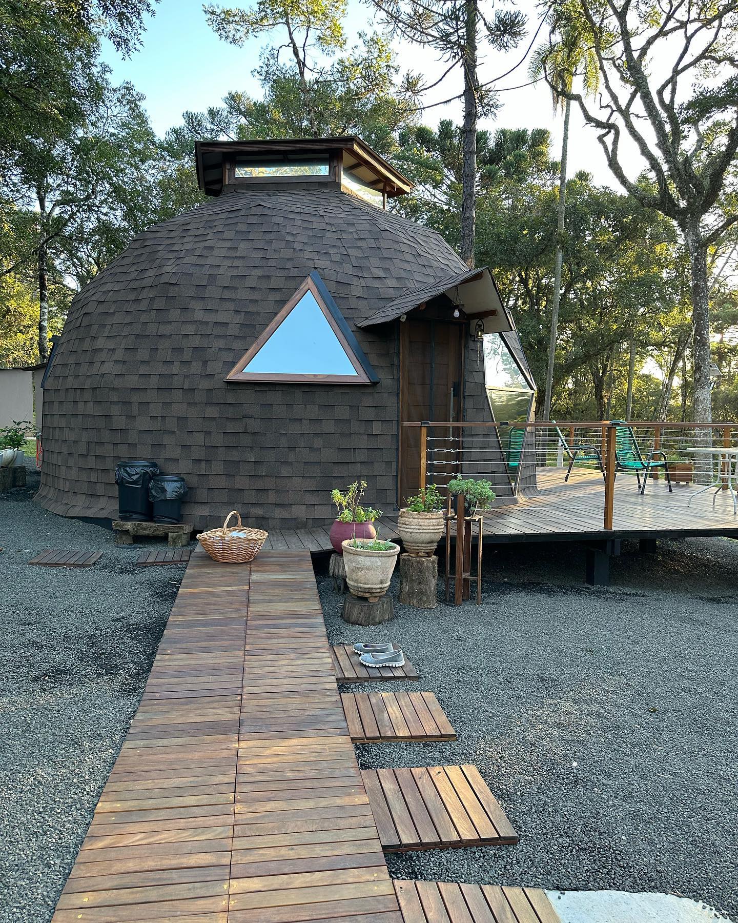 Um local afastado, perto da cidade e na rota das cachoeiras. A primeira casa geodésica de luxo no Paraná e a primeira meia cúpula com banheira SPA do Brasil. Acesso a um alqueire de área com vários recantos e fogo de chão, uma horta mandala para desfrutar com ervas e verduras. No período de abril a junho, é possível colher pinhão, aproveitar a lareira e saborear essa especiaria maravilhosa da região.