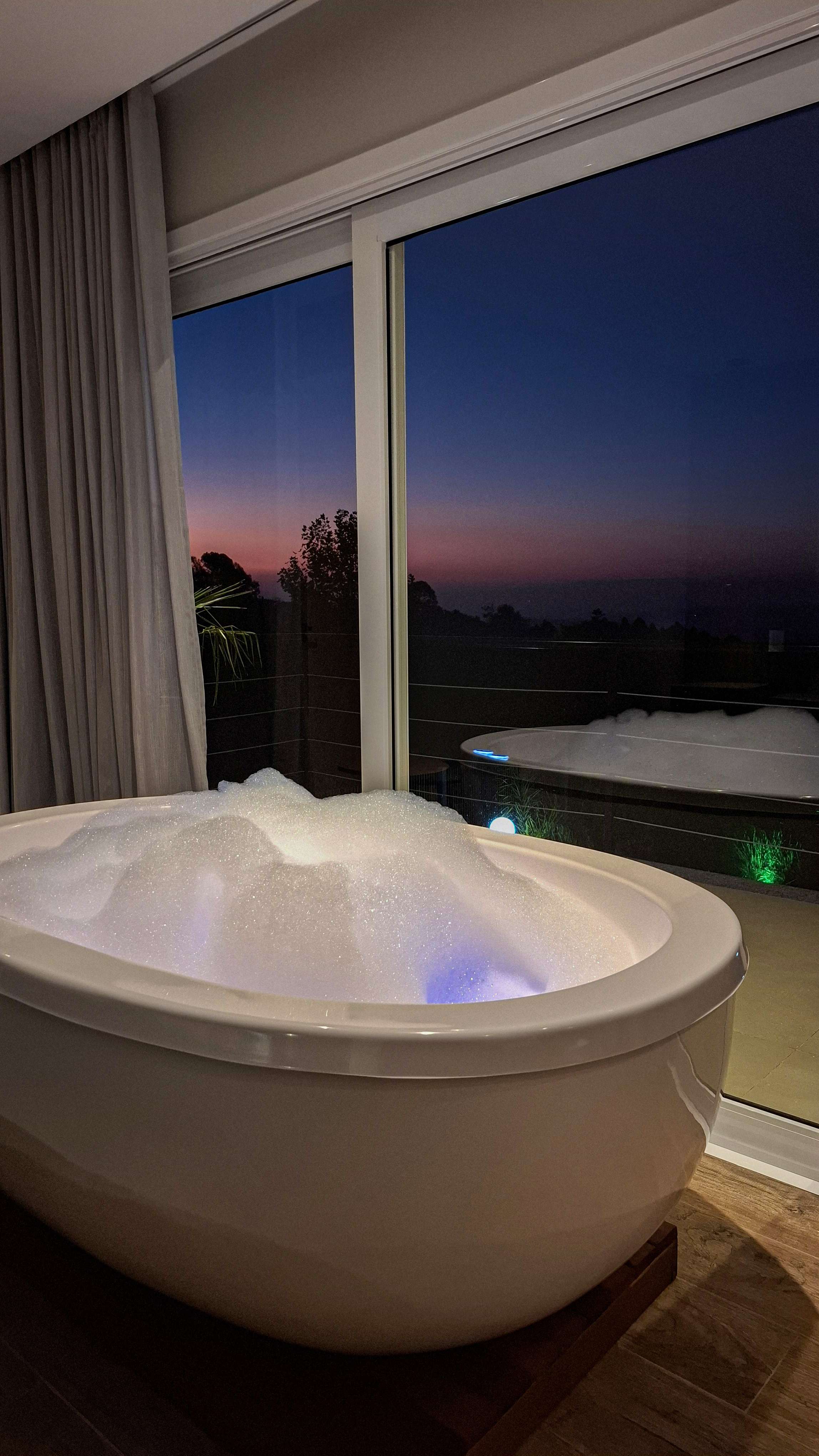 • Suíte principal com cama queen, ofurô/banheiro da hidromassagem e vista com sacada. Espaço office. Cama auxiliar solteiro para crianças. Ar condicionado. Cortinas blackout.