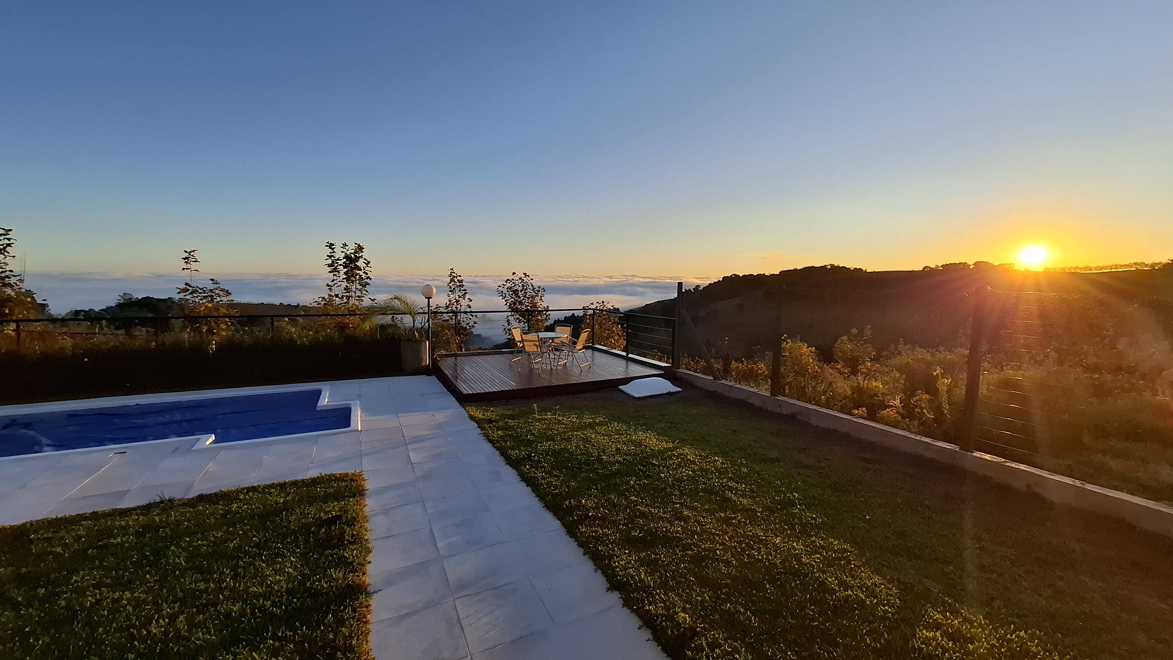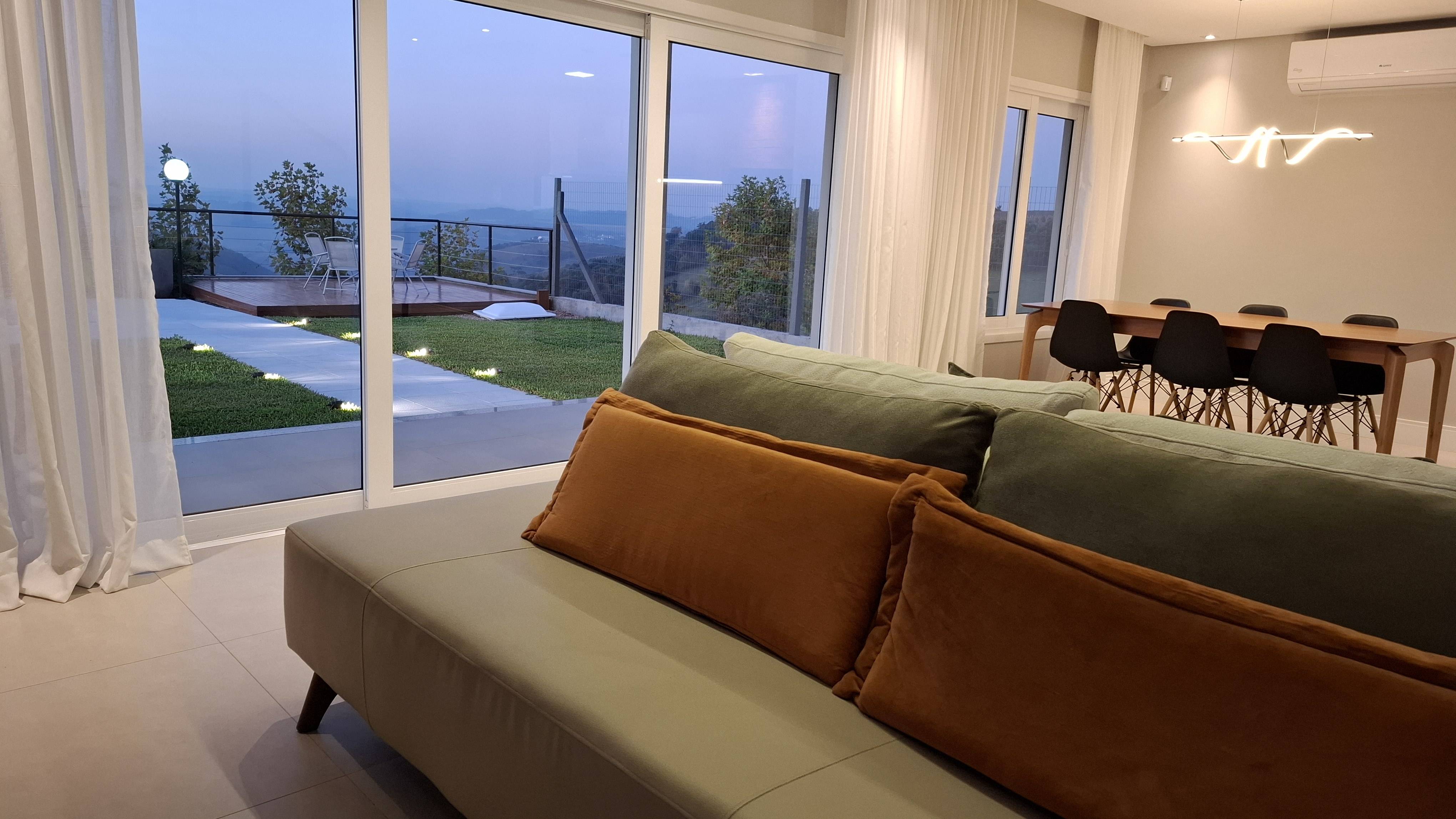 Casa nova, espaçosa e aconchegante no Vale dos Vinhedos, com vista espetacular para vinhedos, vales e montanhas. Toda casa climatizada. Duas suítes (uma com ofurô hidromassagem) cama queen, com ampla vista para os vales e sacada. Churrasqueira. Cozinha completa. Lareira. Sofá ilha e Smart TV de 65”. Living integrado ao jardim. Jardim iluminado, piscina aquecida (Novembro a Março) e deck que permite contemplar a vista. Não aceitamos pet.