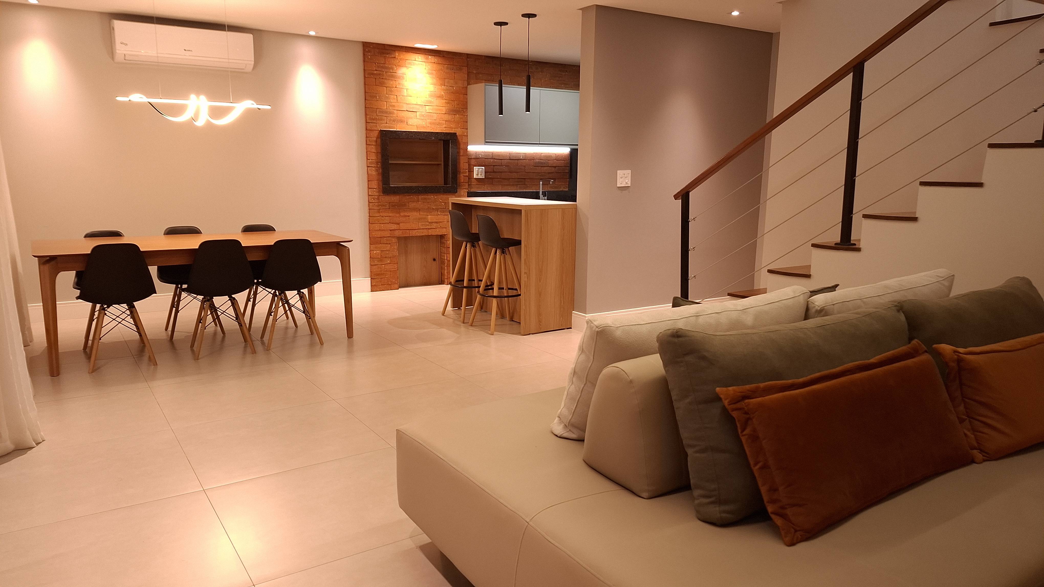 • Espaço Amplo e Confortável: A sala de estar e jantar integradas proporcionam um ambiente espaçoso para relaxar e desfrutar de momentos especiais. Ar condicionado e lareira.