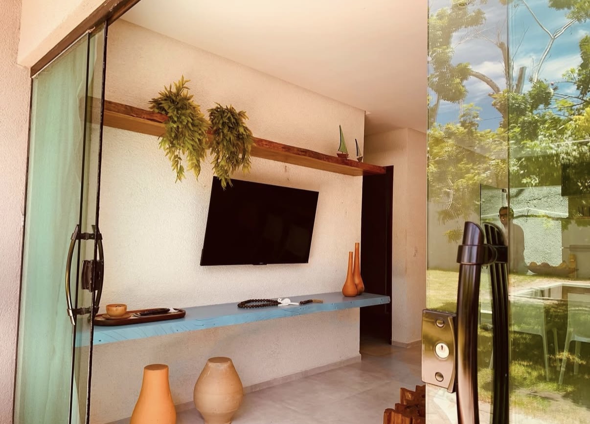 Somos uma casa com 3 quartos tendo capacidade máxima de 10 pessoas. Fornecemos cozinha completa, banheiros, quartos, sala de estar, além de piscina, churrasqueira e uma excelente área de lazer.