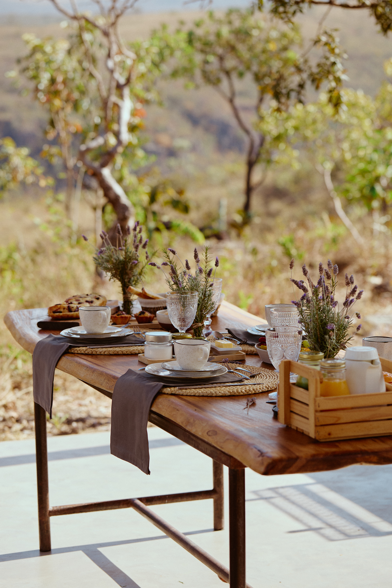 Na zona rural de Alto Paraíso, a Casa Poema oferece uma experiência completa de privacidade, silêncio e estilo no coração da Chapada dos Veadeiros. Dentro de um terreno de 5,5 hectares de Cerrado preservado, a Casa Poema possui um quarto, banheiro, sala e cozinha, com arquitetura em perfeita harmonia com a natureza ao redor. Enxoval de hotelaria luxo, cozinha totalmente equipada, smartv na sala e ar condicionado no quarto. Ao lado fica o Anexo Haicai, com outras 2 suítes e pátio externo individual com rede. No total, admite-se confortavelmente grupos de máximo 6 pessoas de cada vez. Independente do tamanho do grupo, os hóspedes contam com total exclusividade e privacidade para usufruir da área externa com piscina aquecida (belíssimo projeto do arquiteto Alan Chu), área de fogueira, área gourmet coberta com churrasqueira e toda a vista da imensidão do Cerrado. O café da manhã com itens frescos é produzido diariamente na propriedade e está incluído na diária. Oferece menu de almoço e jantar.