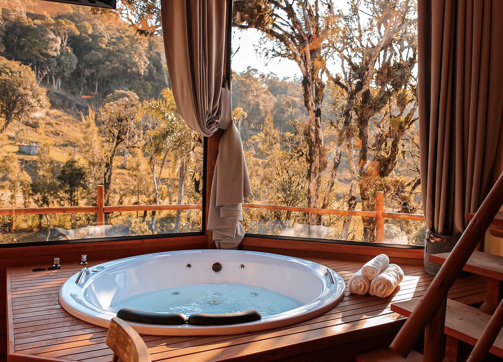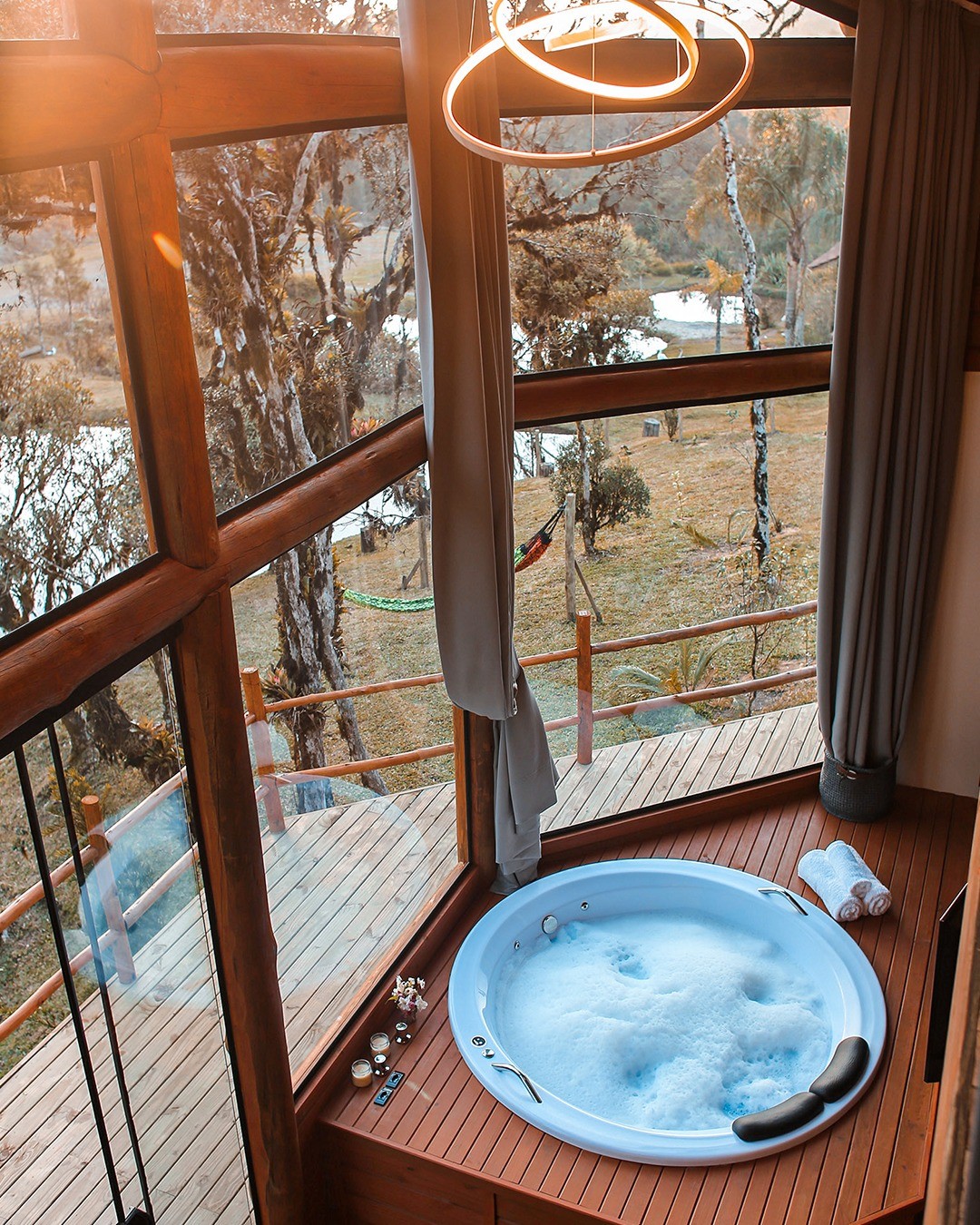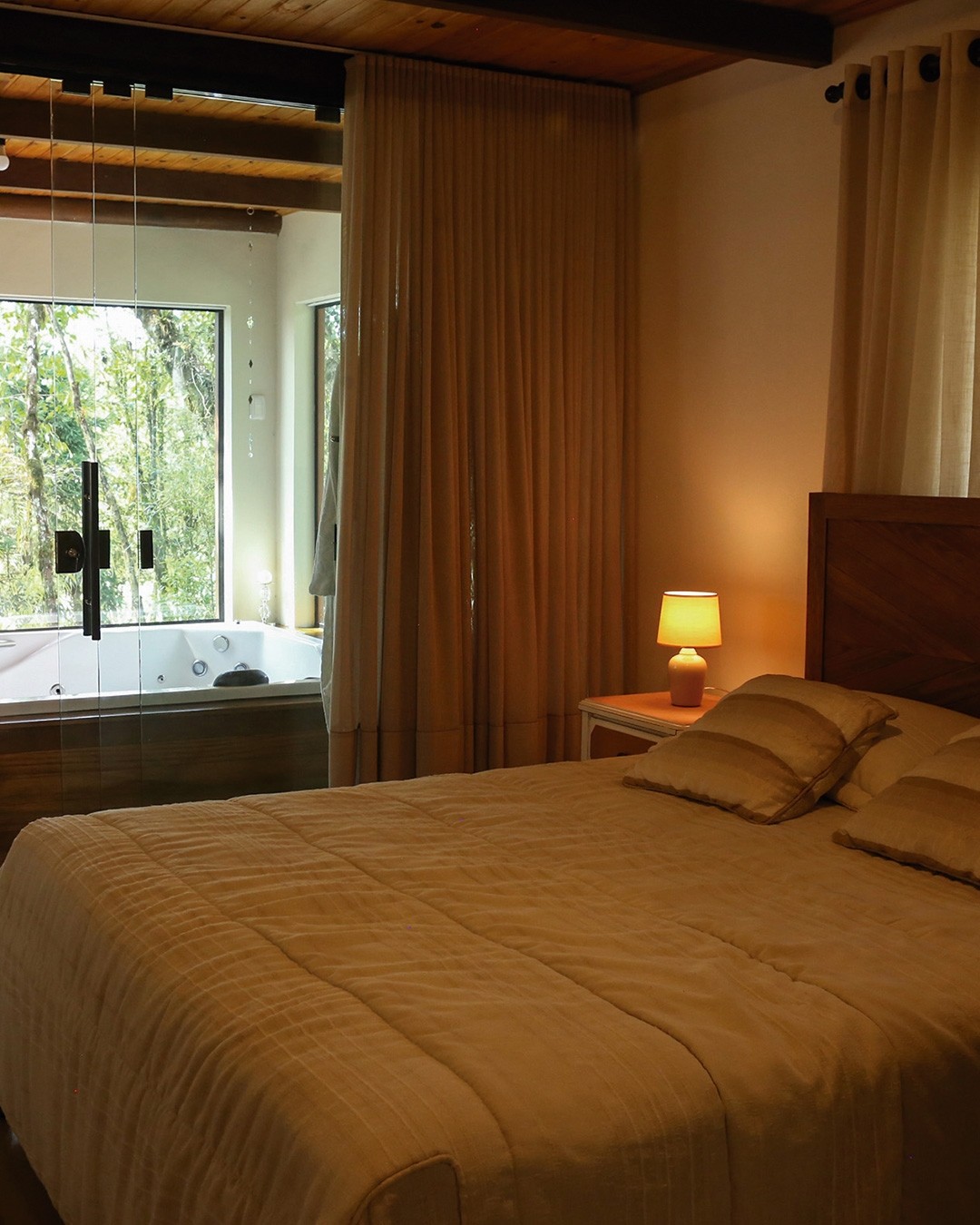 A Casa da Mata oferece três opções de hospedagem: casa, cabana e chalé, todas harmoniosamente integradas à natureza, proporcionando tranquilidade e conforto para momentos inesquecíveis. Cada uma das acomodações é equipada com banheira de hidromassagem, permitindo uma experiência de relaxamento em meio ao ambiente natural e sereno.