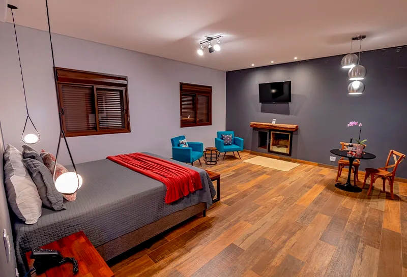 Ar condicionado Secador de cabelo TV a cabo / Smart TV Jacuzzi / Ofurô / Banheira Coberta Frigobar Lareira Máquina de Café Enxoval de Luxo (+ Roupão e Pantufa) Sauna Cozinha Estação de trabalho (mesa e cadeira) Piscina Aquecida ou climatizada Borda Infinita Coberta