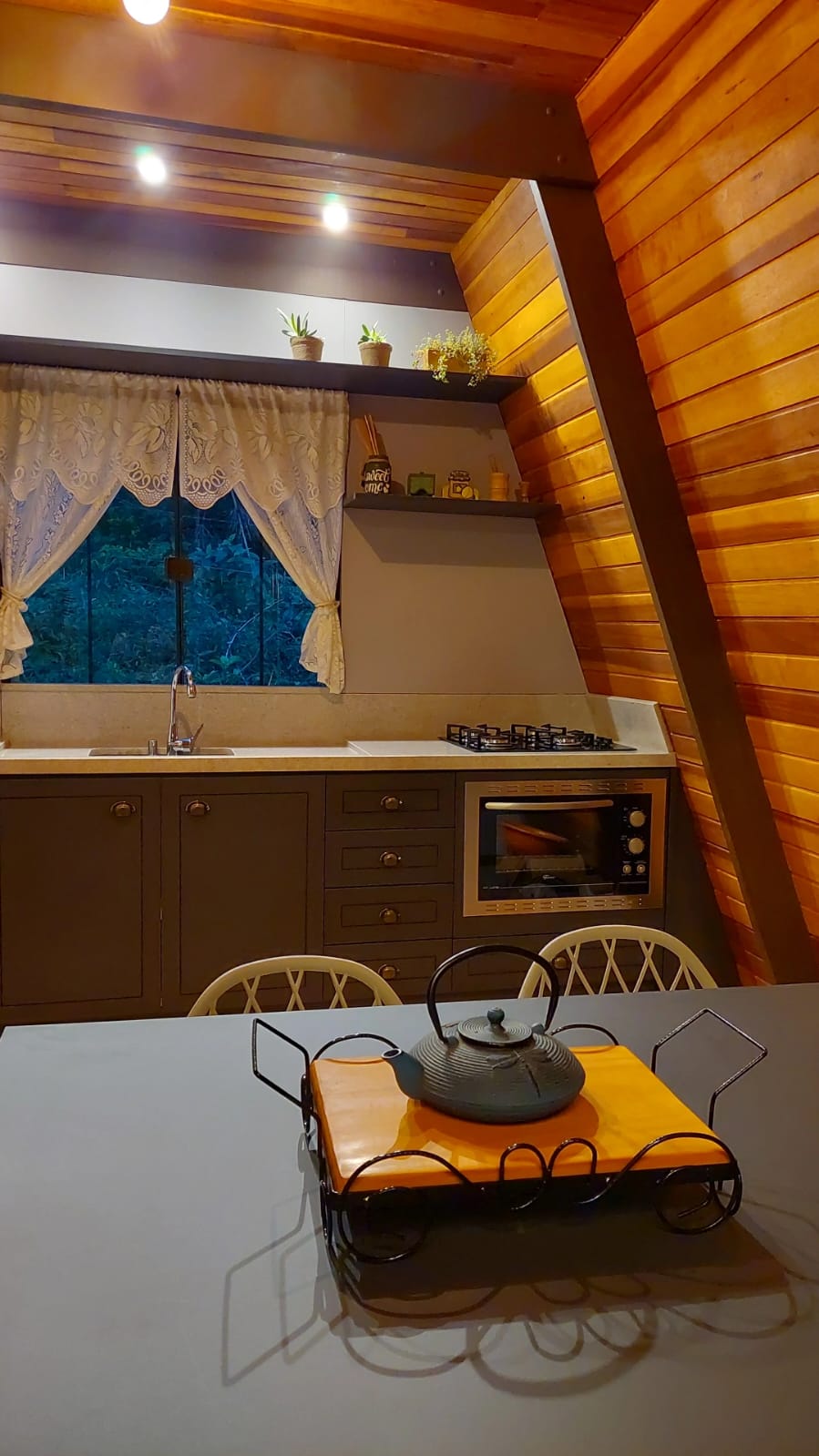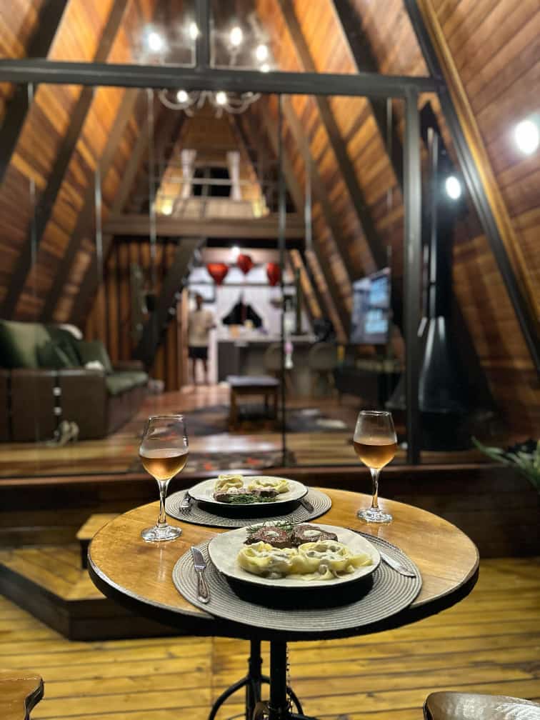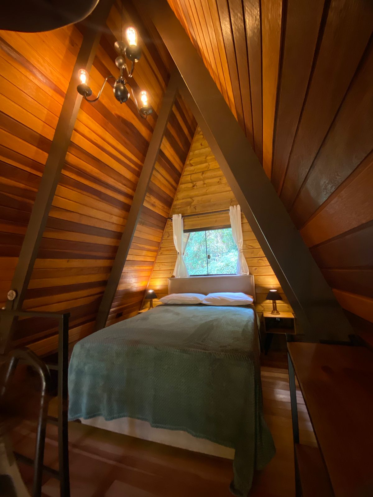 Chalé confortável em meio à natureza, com ambiente privativo, super confortável e aconchegante, perfeito para aproveitar uma noite romântica ou até mesmo um final de semana em família. O ambiente conta com lareira, televisão smart, cozinha completa, banheiro com chuveiro a gás, espaço externo, ideal para tomar café da manhã com uma vista maravilhosa, contém churrasqueira, roupas de cama e banho. Sinônimo de paraíso. O Chalé conta com um cardápio completo, sobre encomenda antecipada, que contém cesta de café da manhã, tábua de frios, quiches, bolos e muito mais. Um paraíso no meio da natureza.