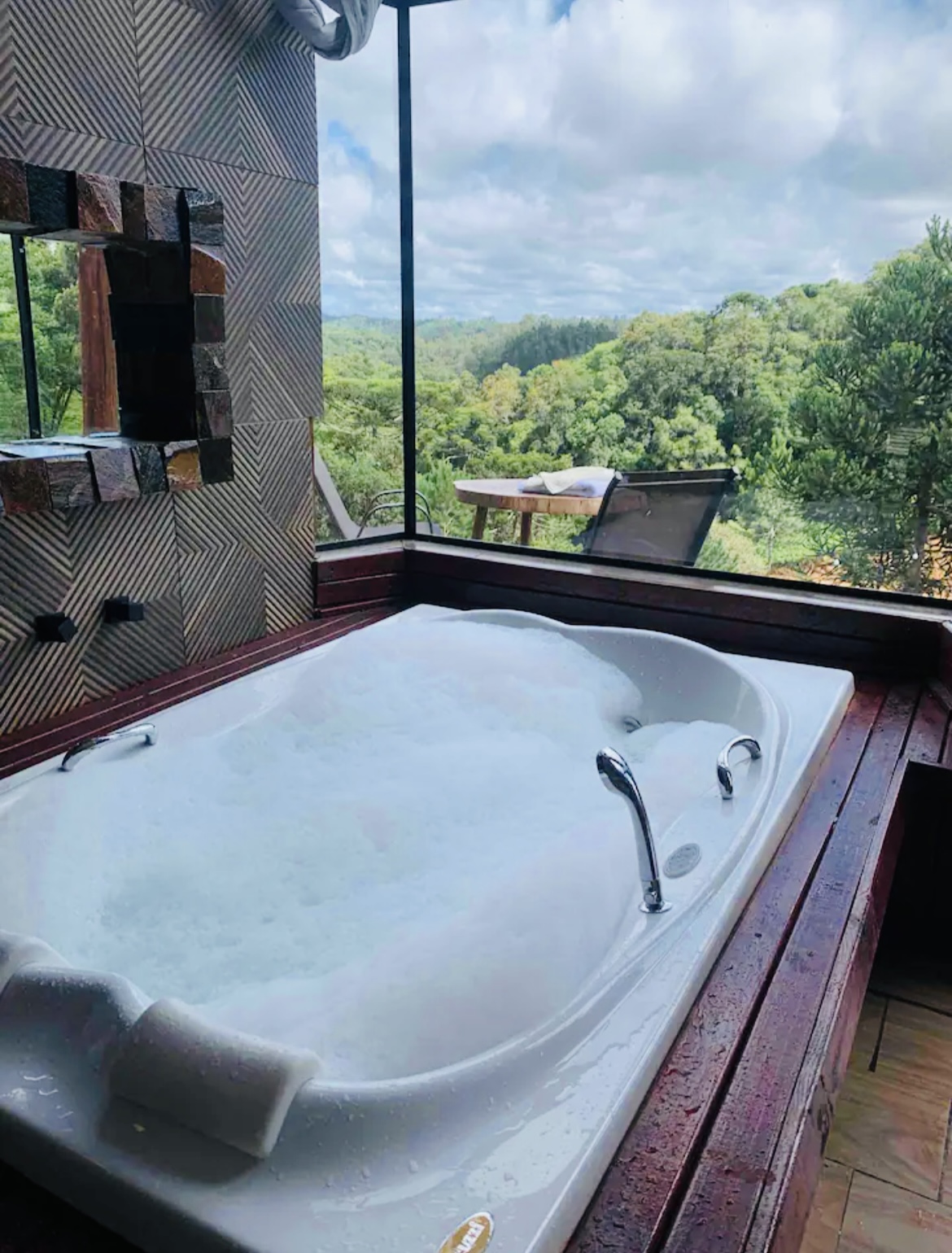 Uma estadia em um chalé exclusivo, projetado para oferecer conforto e romance em cada detalhe. Um espaço que combina tranquilidade e sofisticação, ideal para momentos especiais ao lado de quem é importante.A hospedagem inclui enxoval completo com roupões, banheira de hidromassagem para relaxamento total, cama Queen Size, aquecimento de água a gás para banhos sempre agradáveis e lareira a lenha para um ambiente aconchegante. O chalé dispõe ainda de frigobar, micro-ondas, cafeteira Dolce Gusto e uma varanda com deck de madeira para contemplar a paisagem. A eletricidade é 110v, e a lenha para a lareira está disponível. O estacionamento ao lado do chalé garante maior conveniência.Os hóspedes também podem aproveitar áreas externas, como lagos e piscina, que funciona durante o verão. Uma churrasqueira de uso compartilhado pode ser reservada antecipadamente, ideal para momentos ao ar livre.Cada detalhe foi cuidadosamente planejado para proporcionar uma experiência inesquecível em meio à natureza.