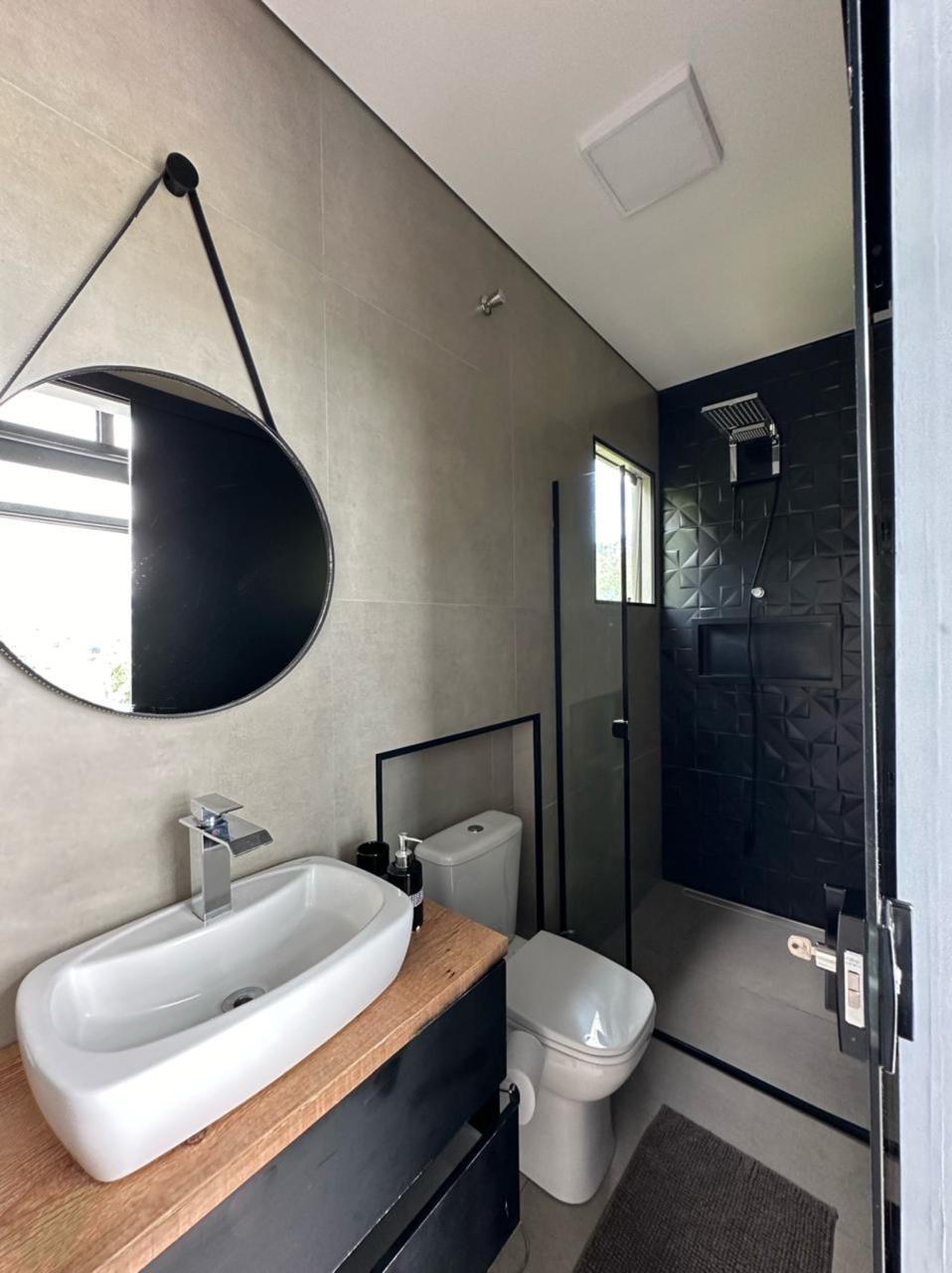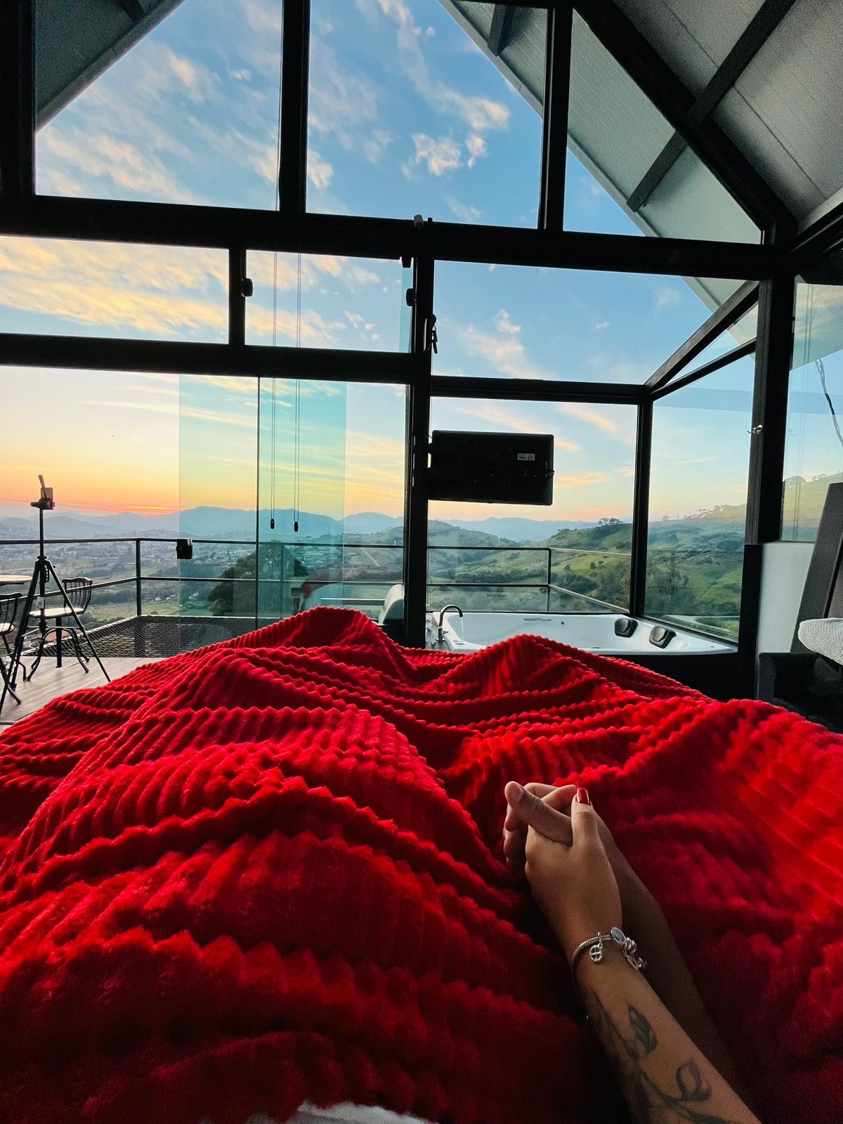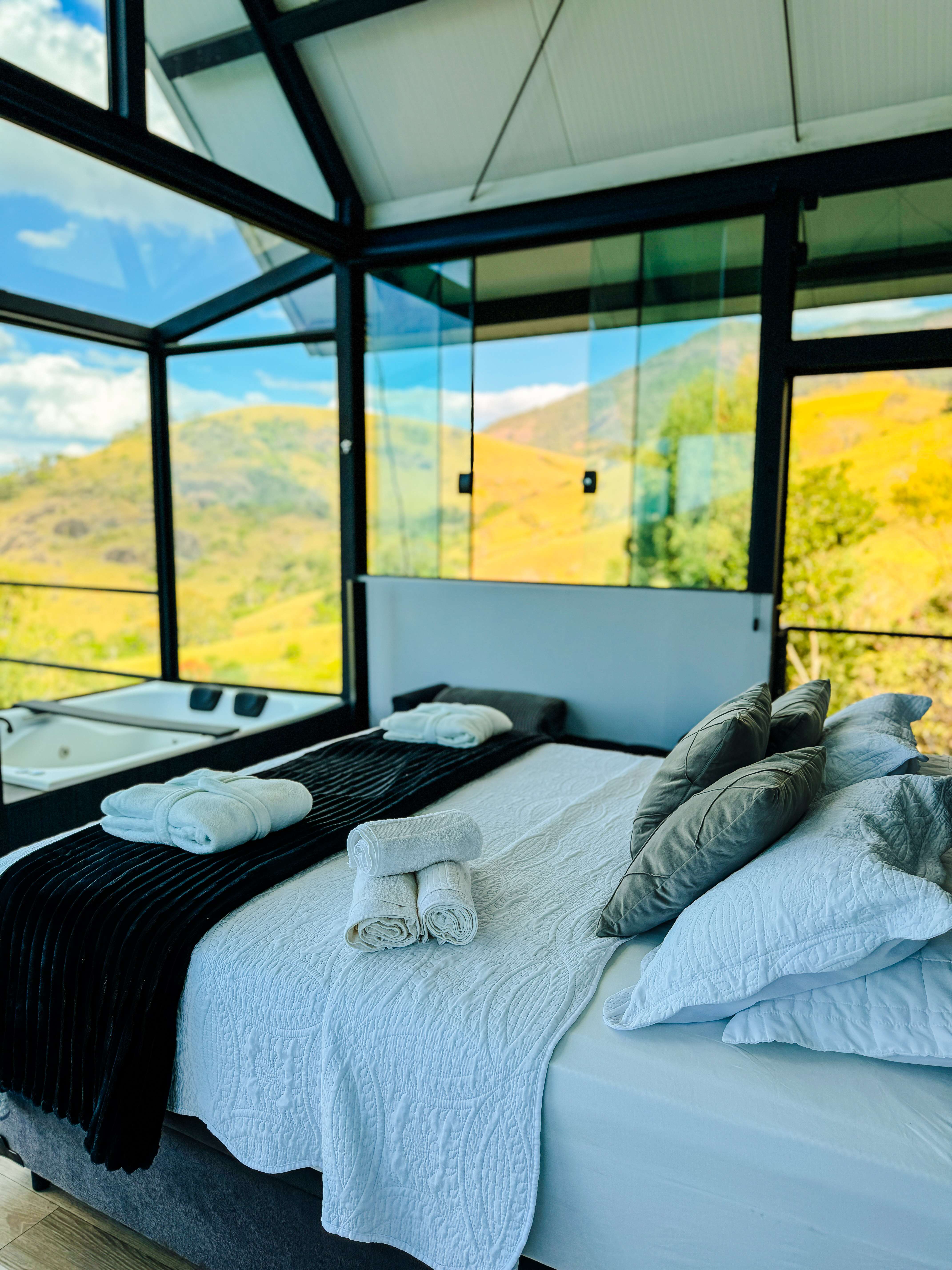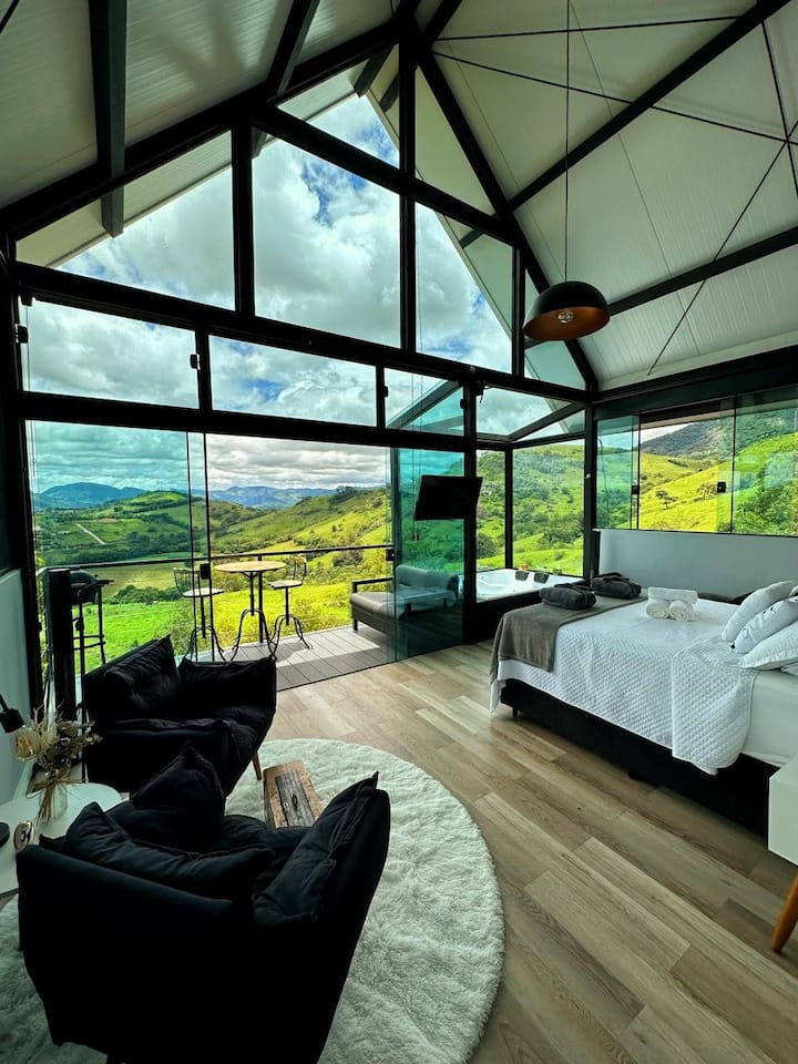 O Chalé Pedra Negra está localizado na serra da Mantiqueira em Paraisópolis, Minas Gerais.