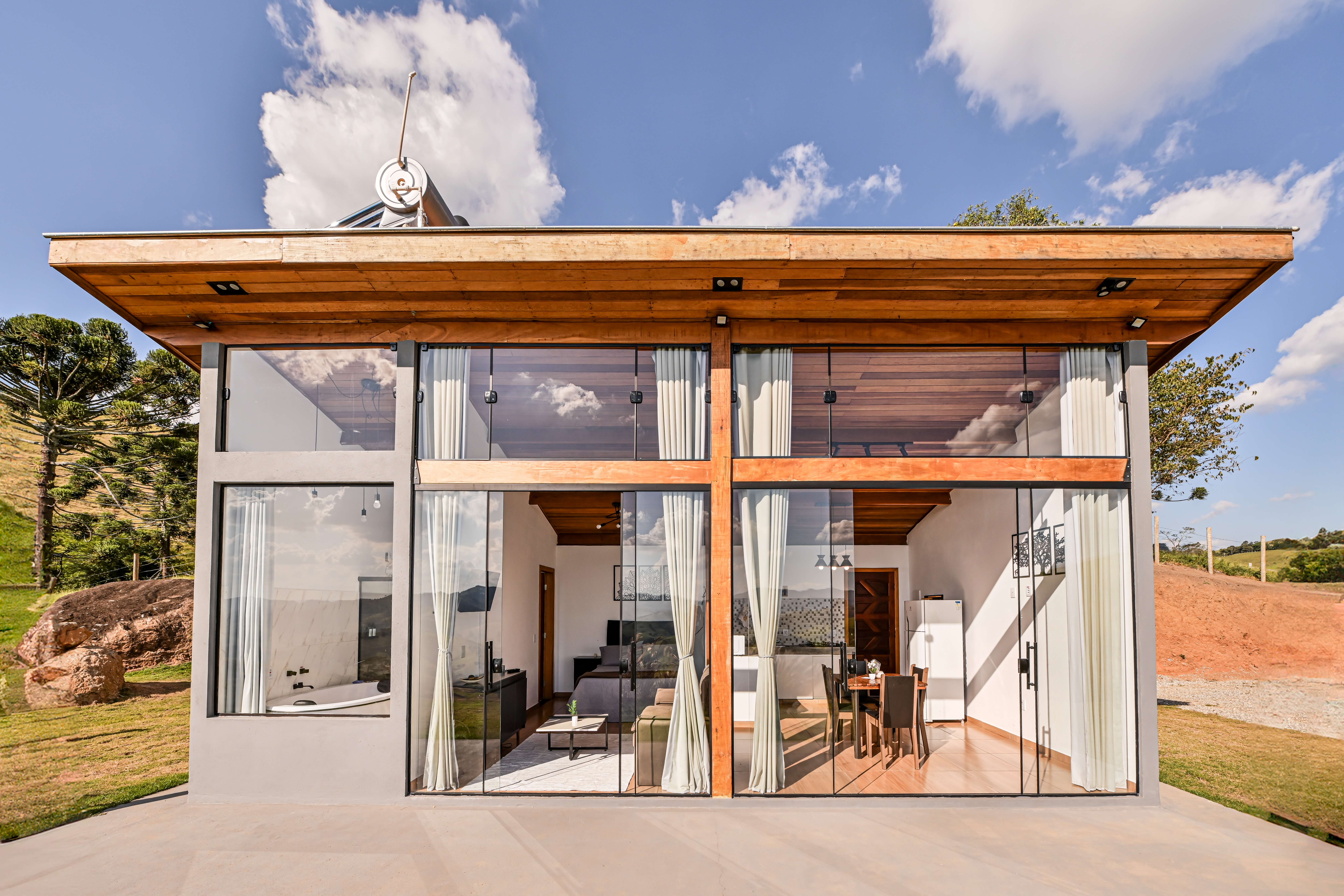 O chalé foi planejado em um local estratégico, oferecendo privacidade e uma vista exuberante. Com aconchego, conforto e tranquilidade, é o lugar perfeito para se conectar de forma orgânica com a natureza. Proporciona uma experiência única nas montanhas, em um ambiente surpreendente e sustentável, ideal para quem busca um refúgio em meio ao verde e à serenidade.