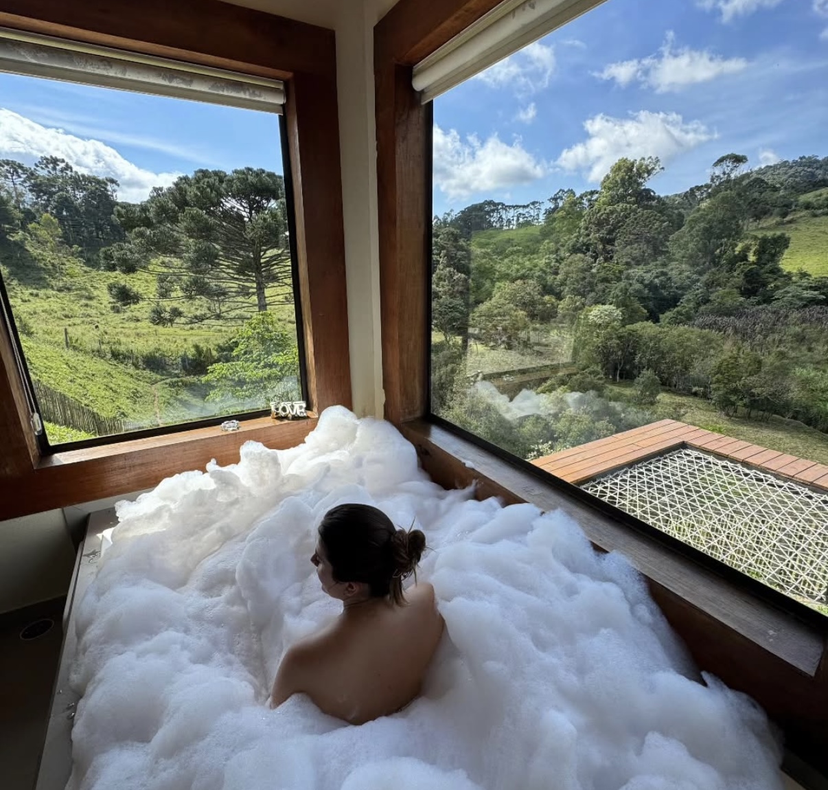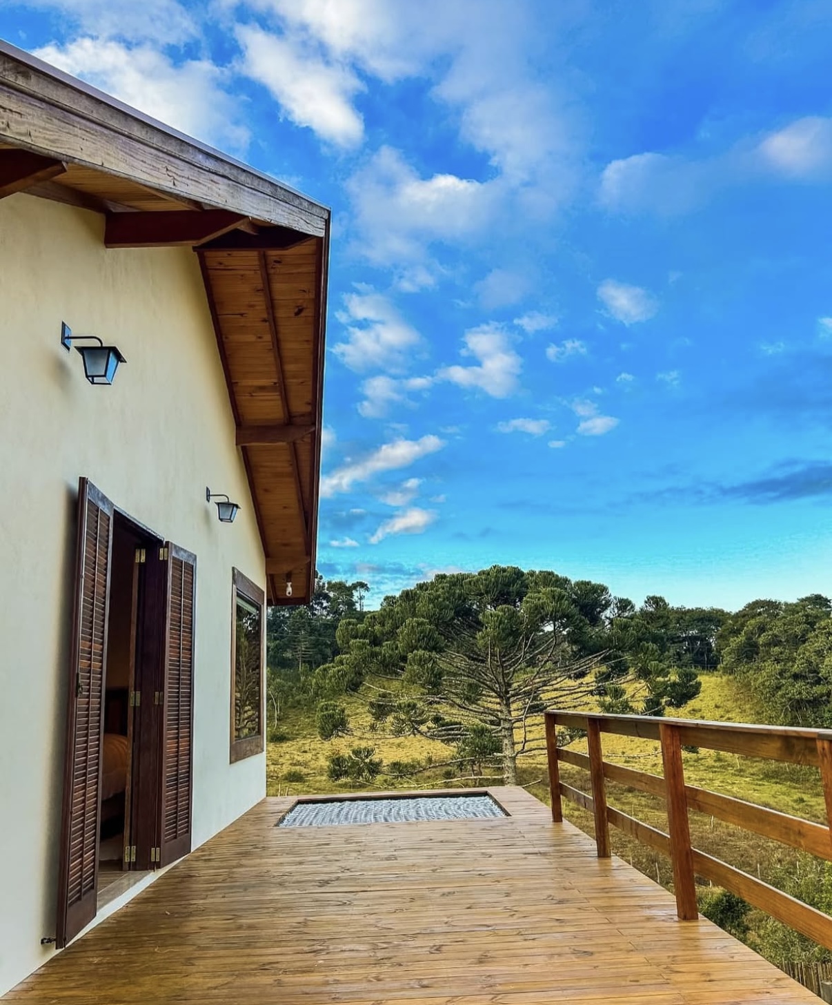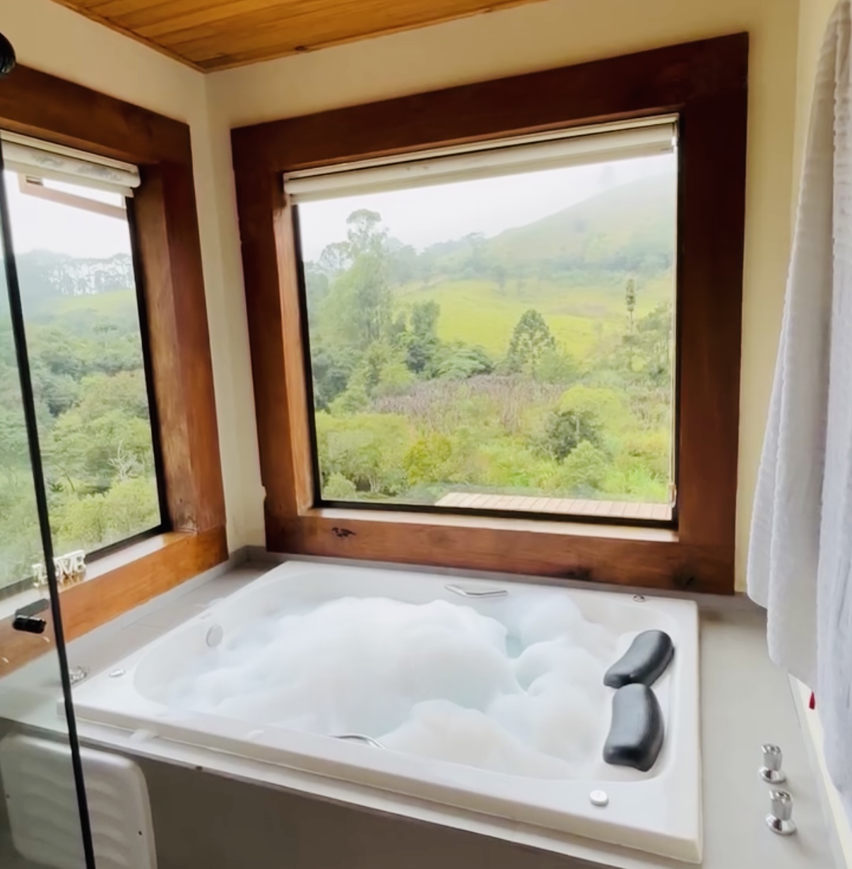 Chalé com Banheira de hidromassagem Piso aquecido Ar condicionado, Q/FCama king Roupa de cama e banho completo Cozinha equipada Secador de cabelo O espaço é todo cercado e preparado pra receber pets