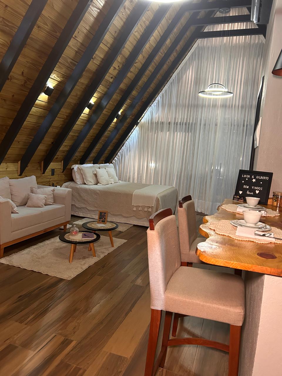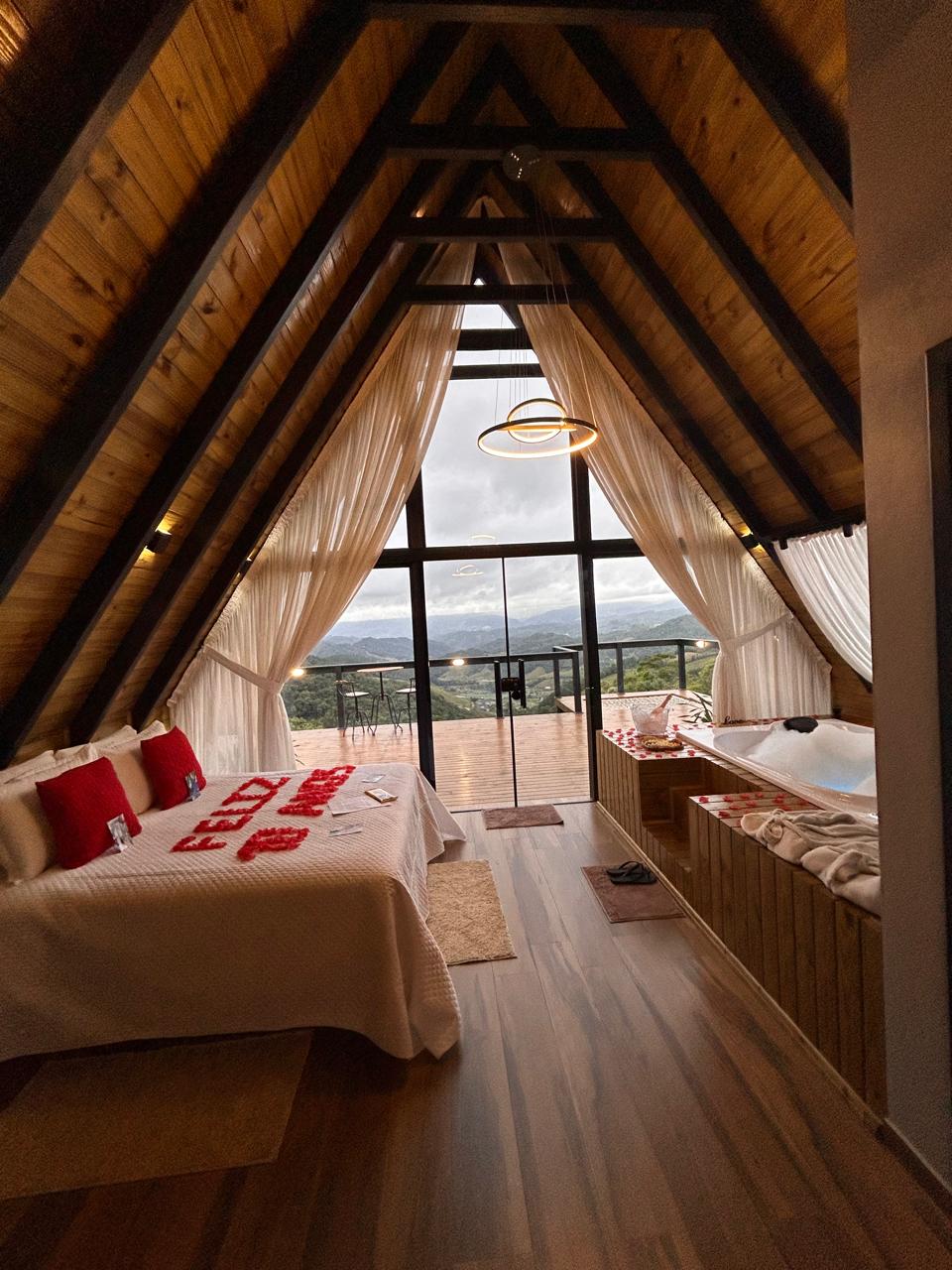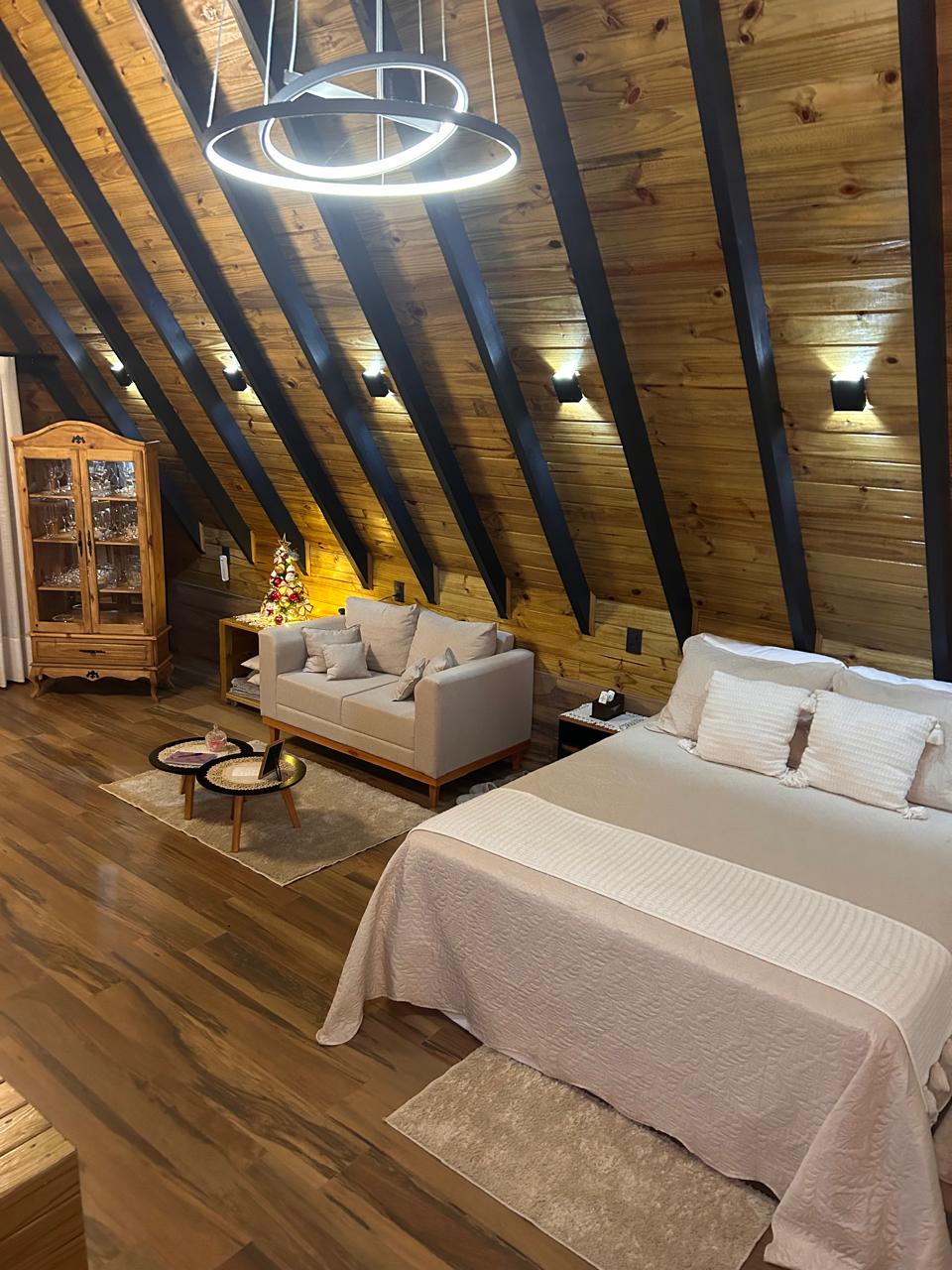 Temos uma cama Queen, deixamos a cama arrumada com cobertor e travesseiros, fornecemos roupa de cama também.