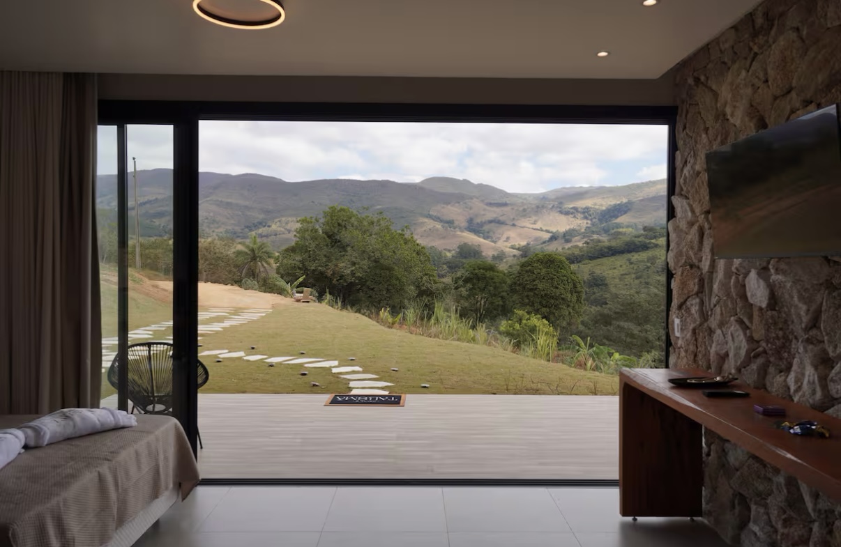 Inserido em um espaço acolhedor, o chalé é ideal para casais que buscam momentos de tranquilidade e conexão. Dentro da fazenda Talismã, o hóspede ainda pode conhecer a produção artesanal de queijos e doces locais, tornando a estadia ainda mais especial e autêntica.