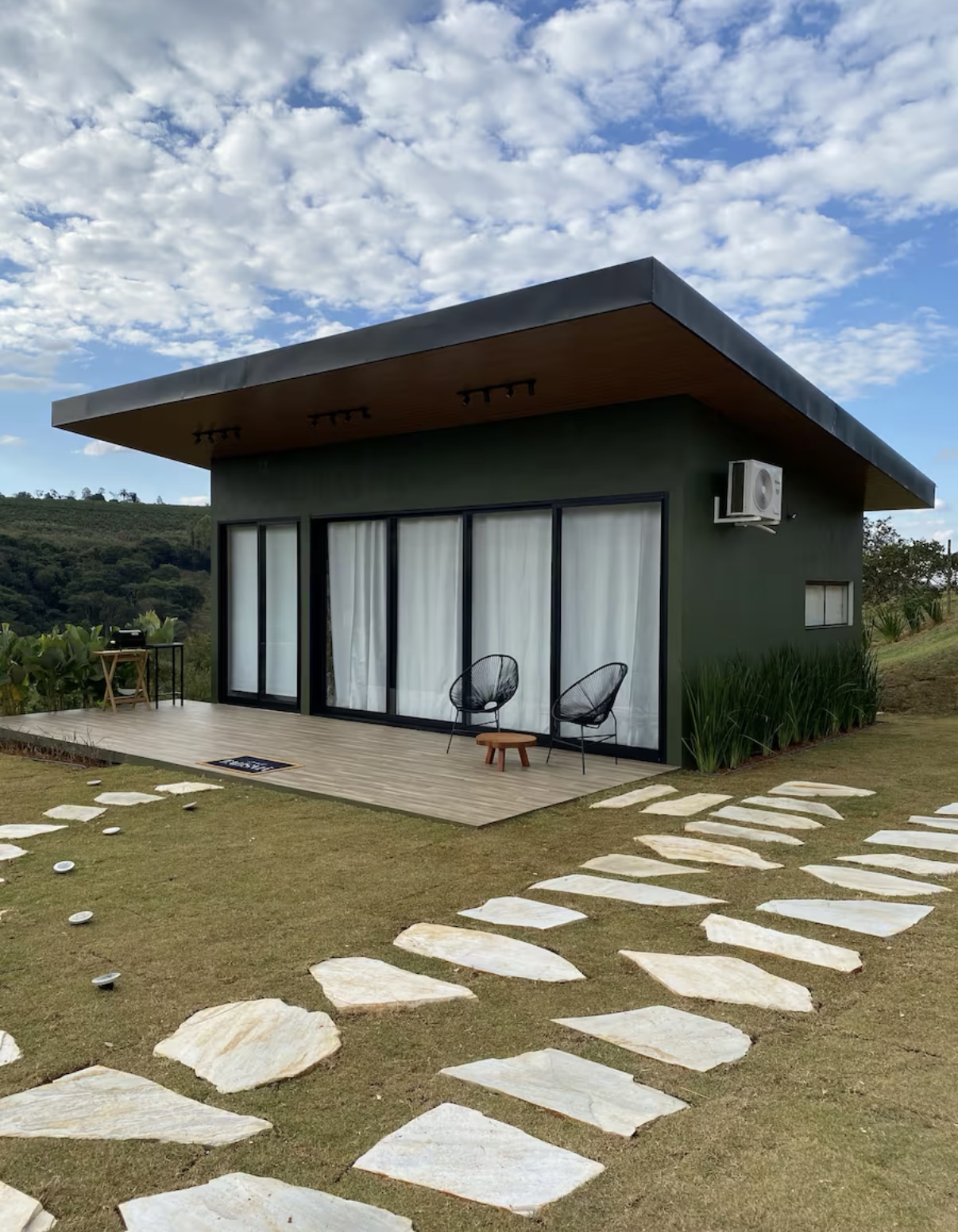 O Chalé Talismã proporciona uma experiência de aconchego e bem-estar em meio à natureza, com destaque para a vista deslumbrante que emoldura o cenário como um quadro. O ambiente integrado reúne cama de casal, cozinha equipada, smart TV, hidromassagem, área de churrasco e espaço com fogueira, criando o equilíbrio perfeito entre conforto e charme rústico.