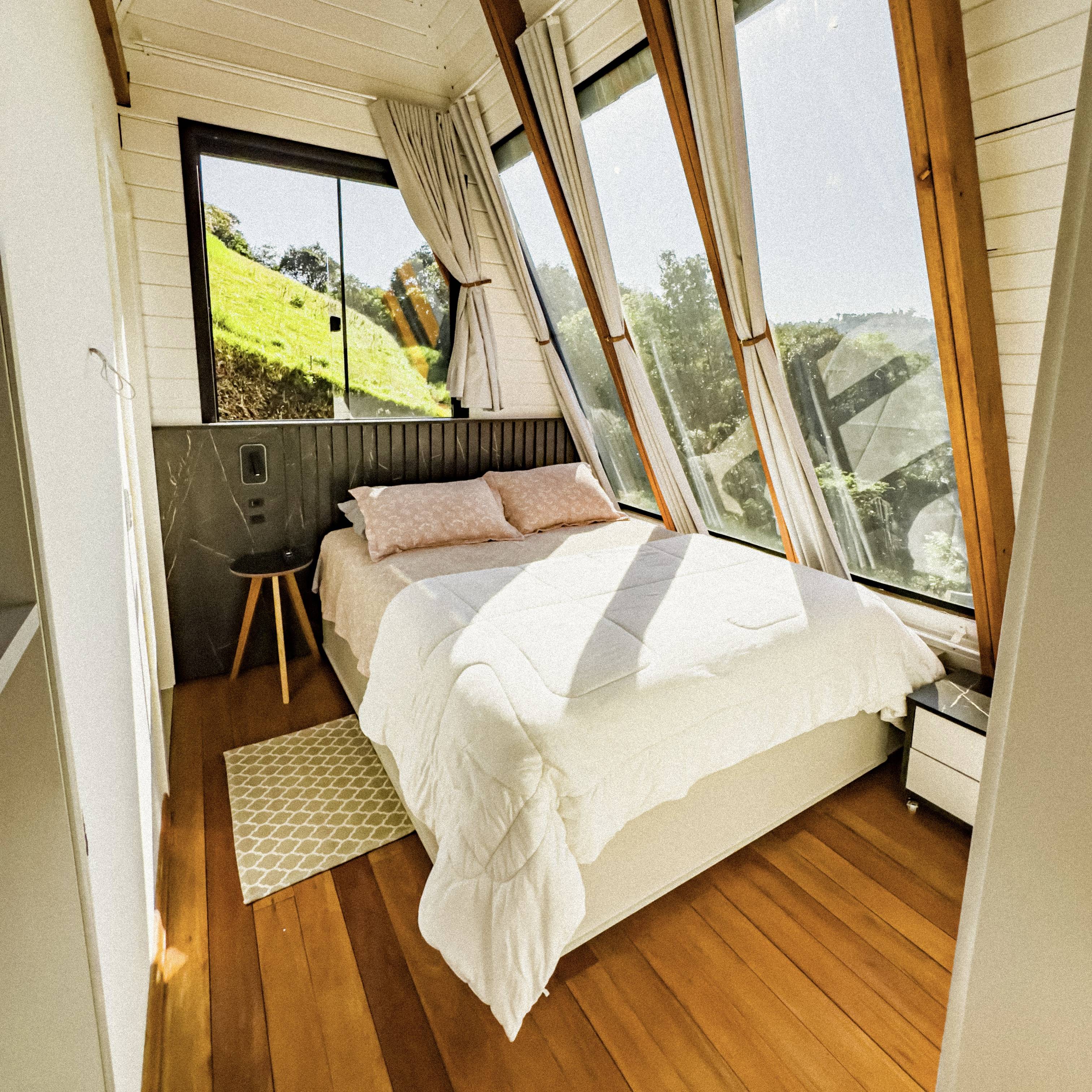O Chalé da Árvore, localizado em Palmitos, Santa Catarina, oferece um refúgio acolhedor com vista espetacular para o Rio Uruguai. Cercado pela natureza e em um ambiente tranquilo, o chalé garante privacidade e segurança. Com dois quartos equipados com camas queen, dois banheiros espaçosos, uma cozinha completa e uma sala de estar com grandes janelas de vidro, é possível desfrutar de uma vista deslumbrante do rio. A área externa conta com uma charmosa lareira, espaço gourmet com churrasqueira, forno de pizza e fogão a lenha, além de hidromassagem ao ar livre para momentos de relaxamento. A internet via satélite Starlink garante conectividade, permitindo que o conforto se combine com a tranquilidade do lugar.